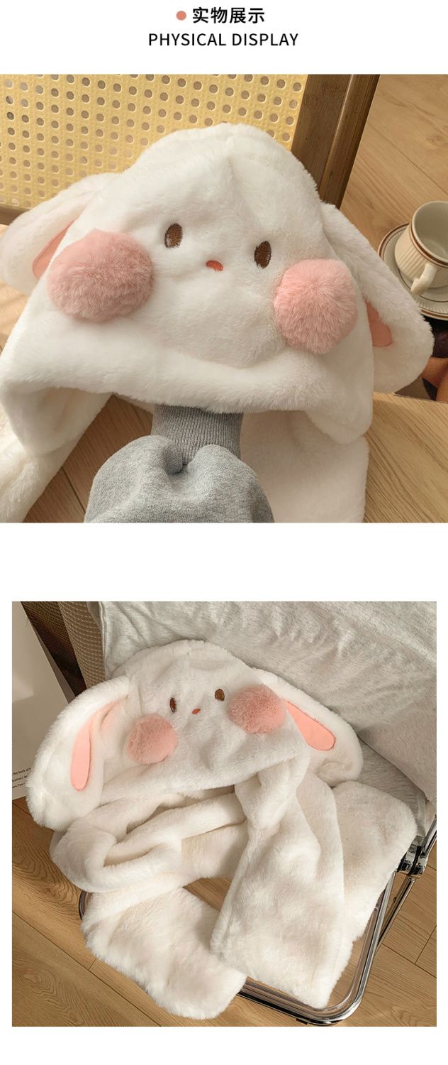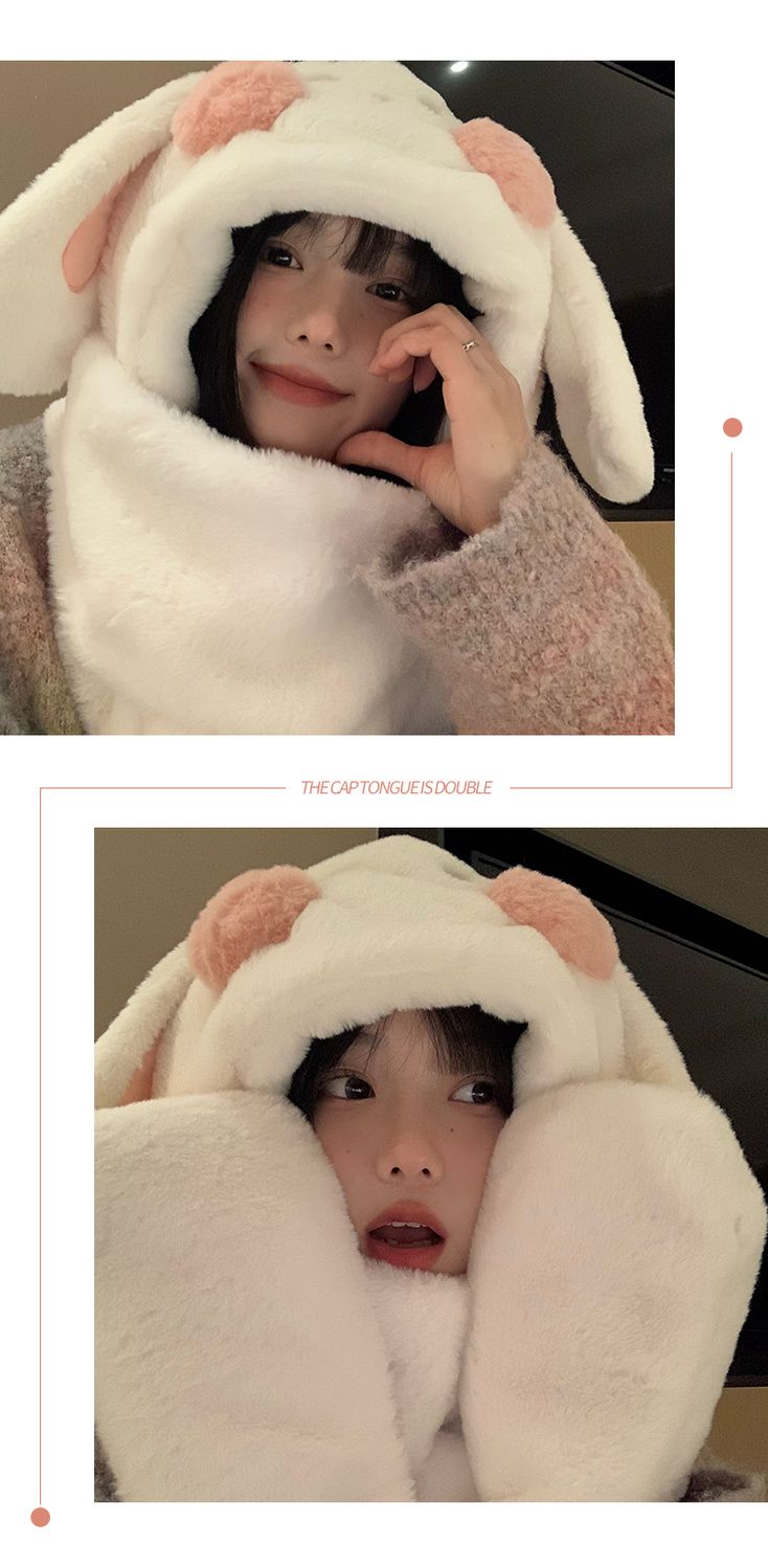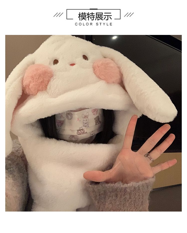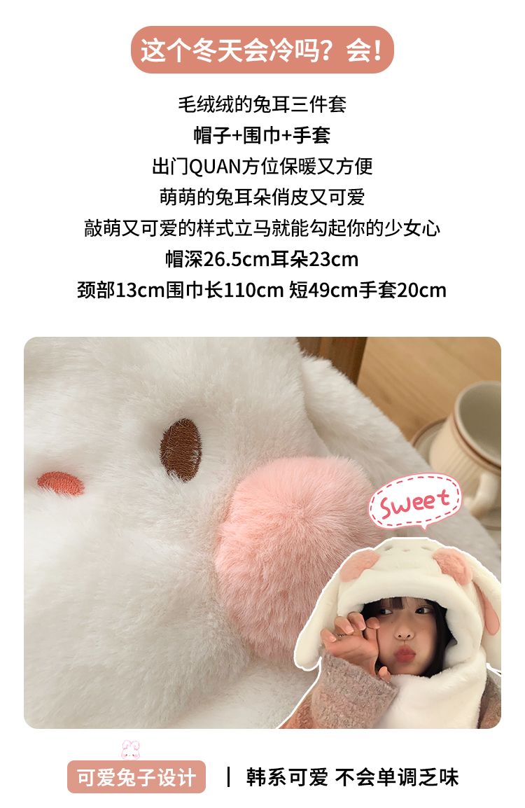 毛绒兔子耳朵围巾手套帽子冬天毛茸茸可爱小土豆加厚围脖保暖帽子