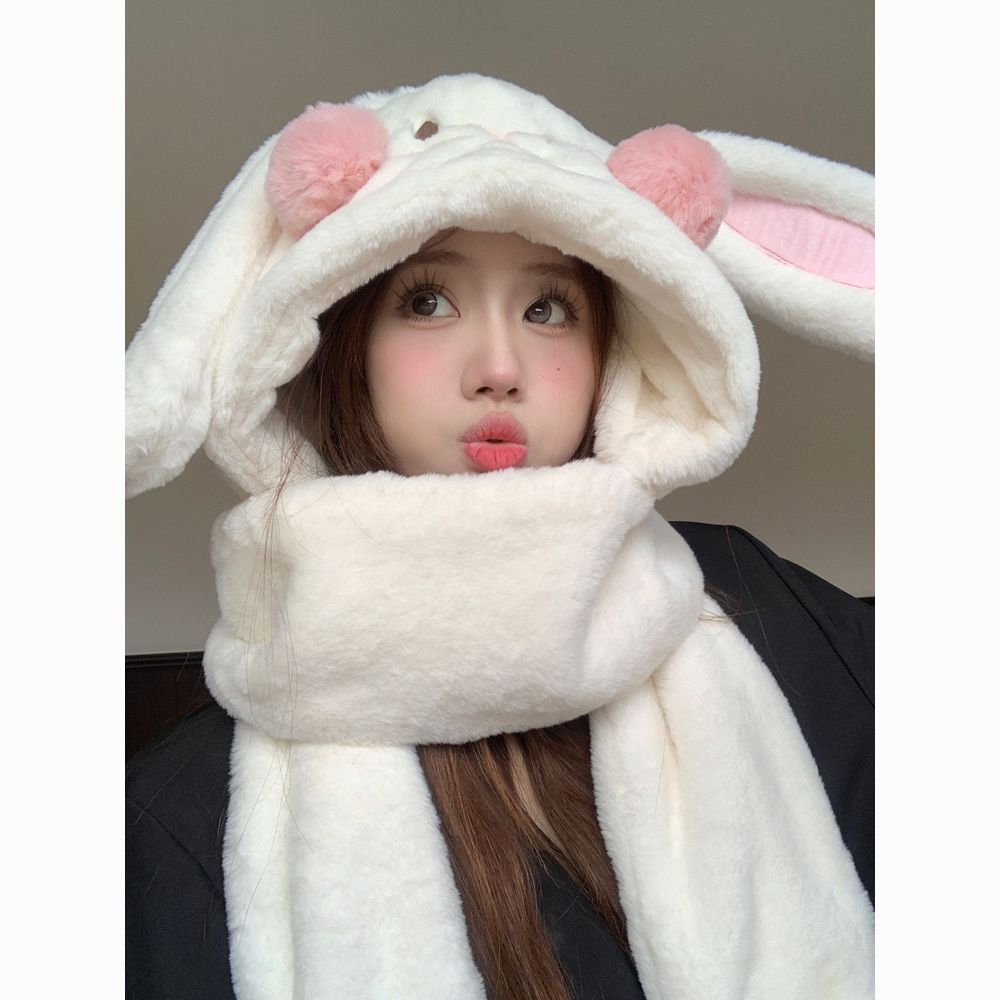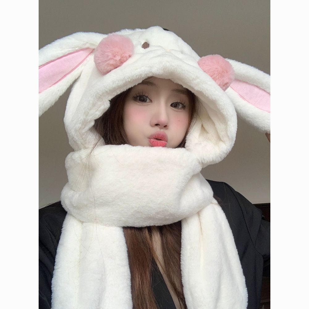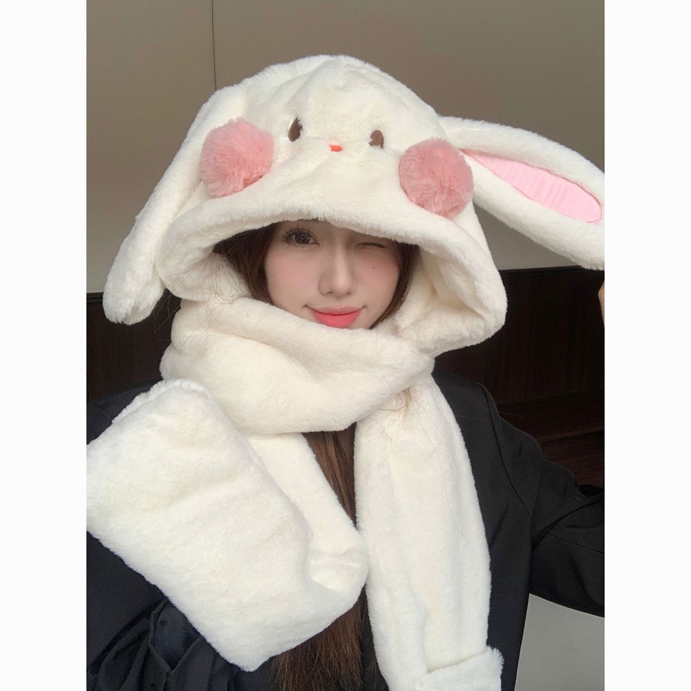 毛绒兔子耳朵围巾手套帽子冬天毛茸茸可爱小土豆加厚围脖保暖帽子