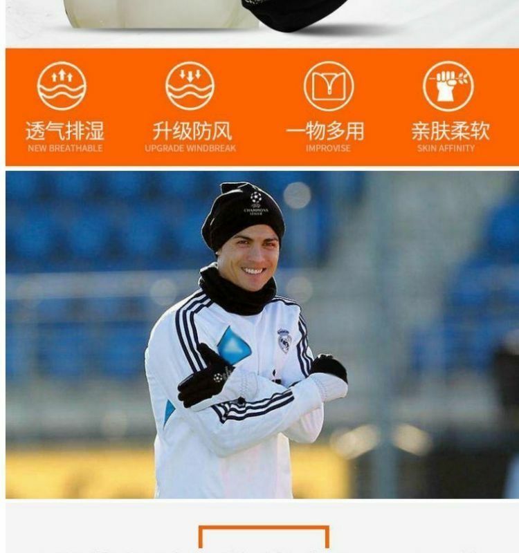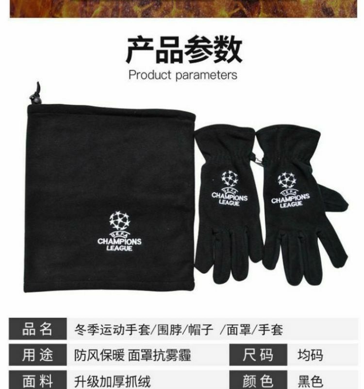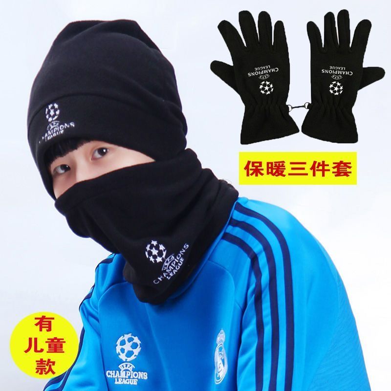 足球运动骑行围脖帽子三件套冬季户外男女球迷训练帽保暖加厚手套