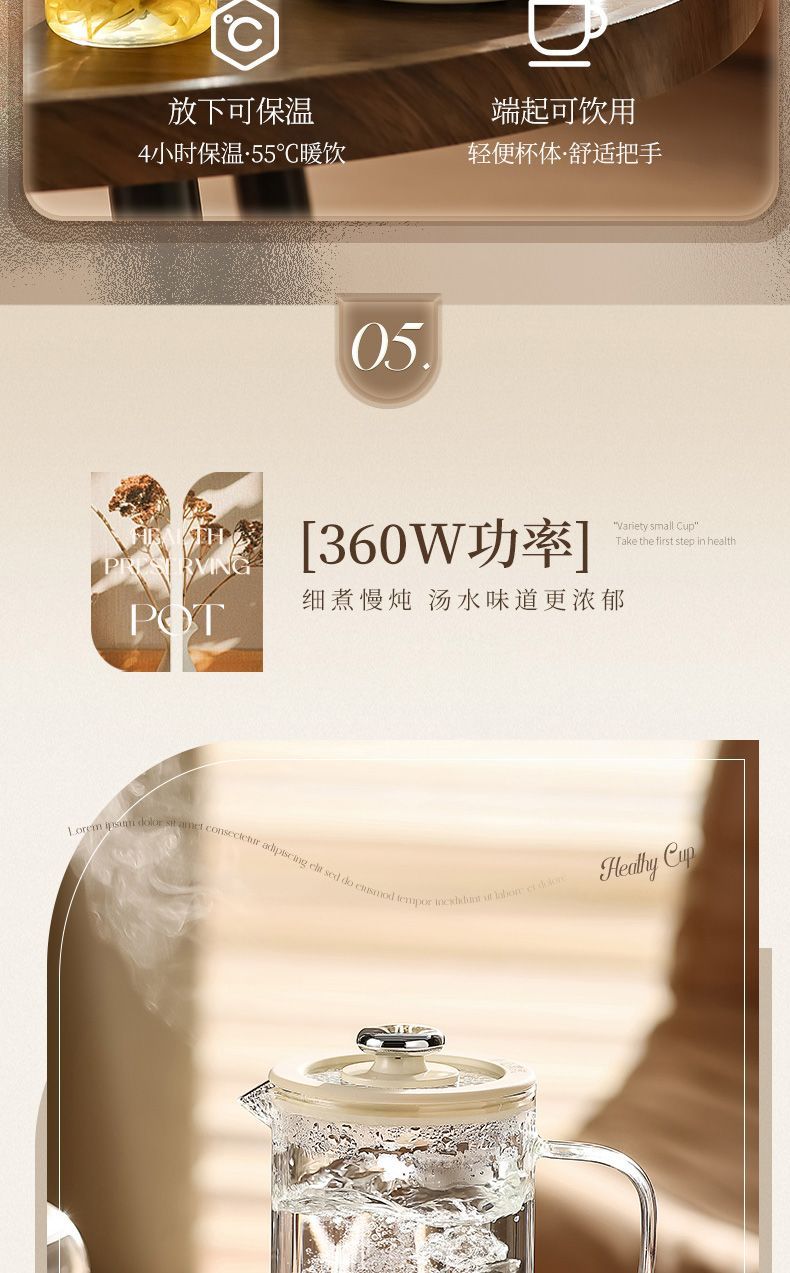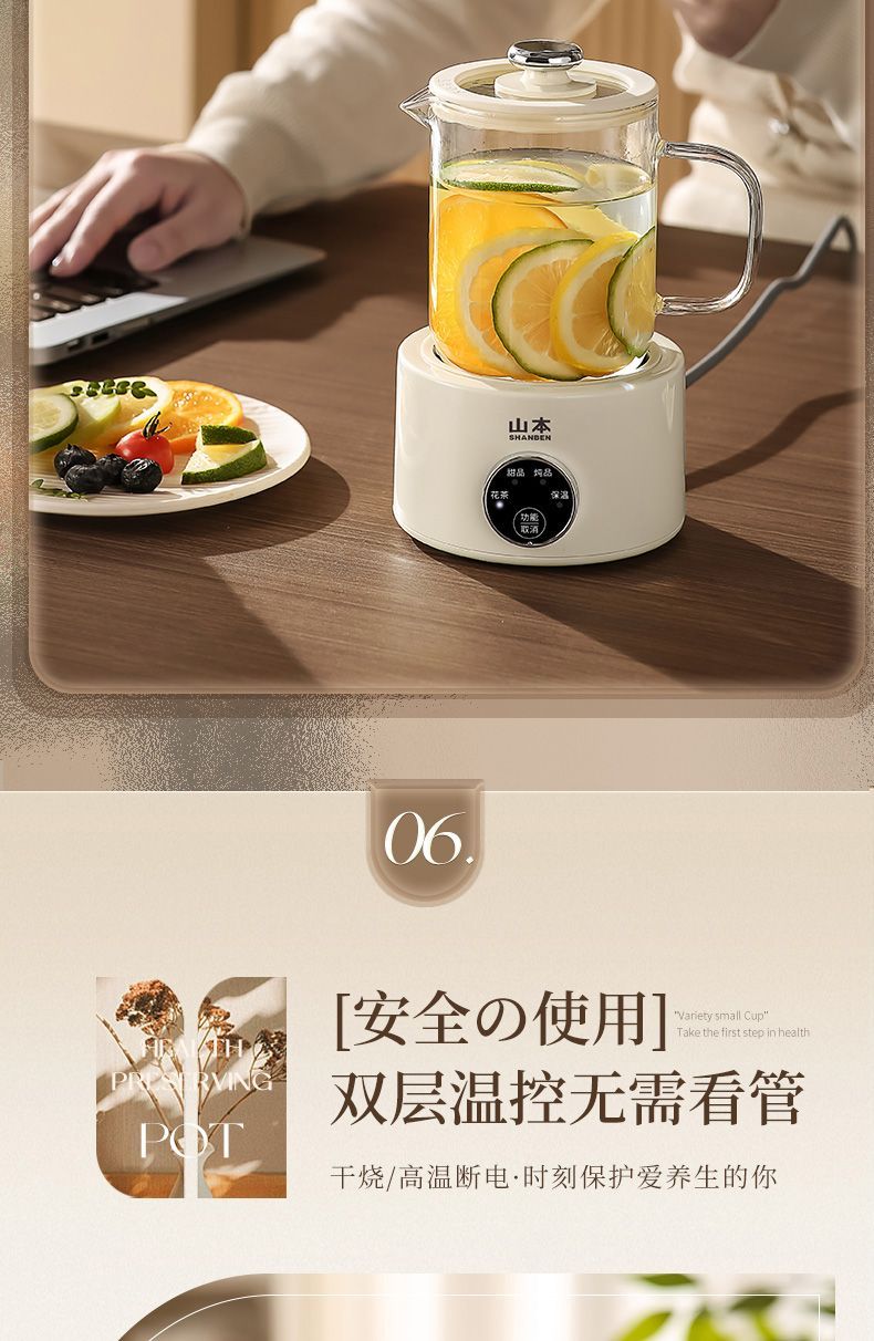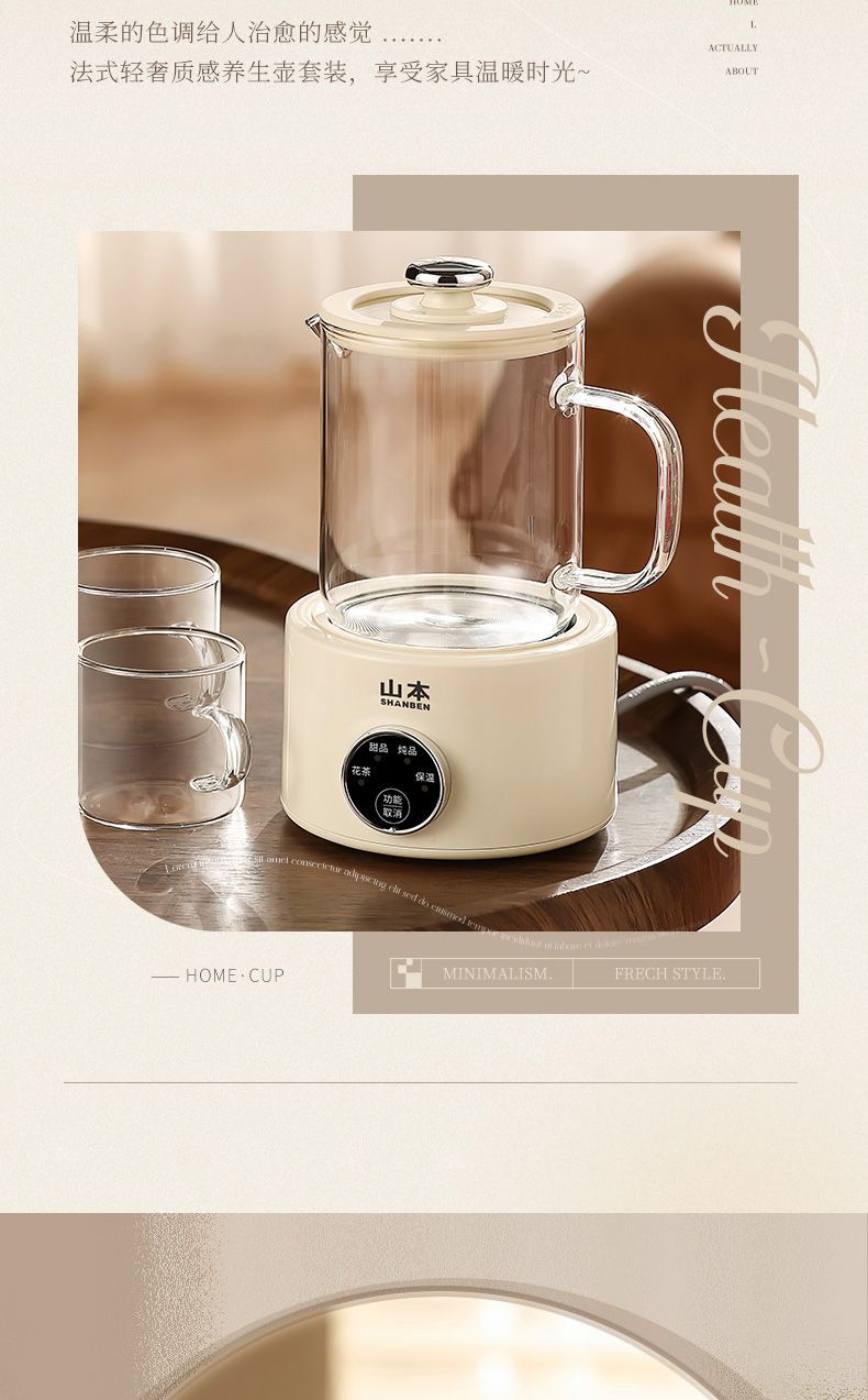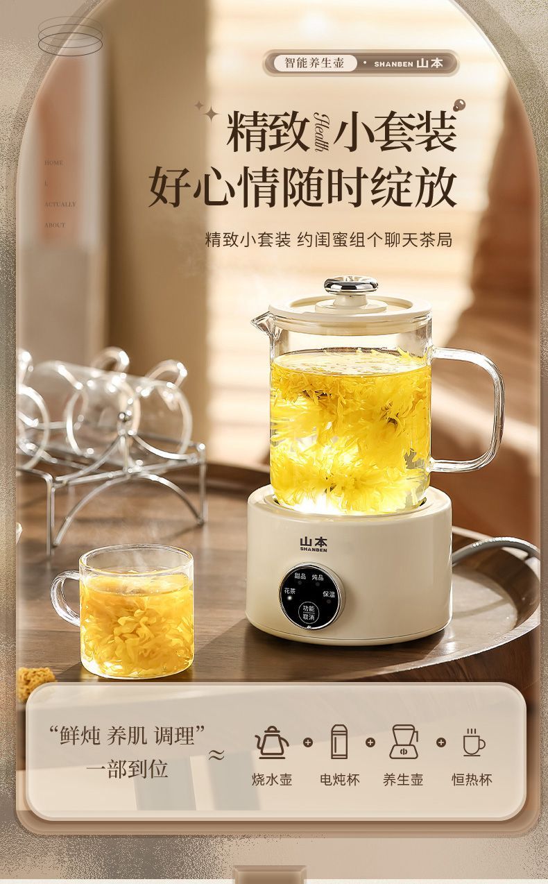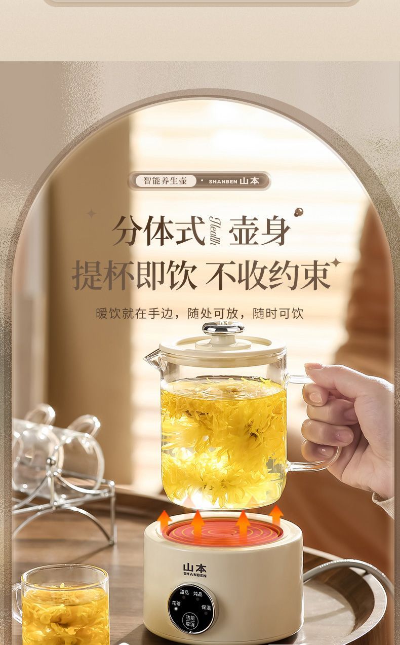山本养生壶家用多功能保温煮茶器小型电热煮茶壶玻璃办公室烧水壶