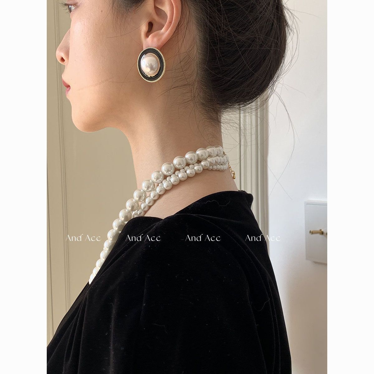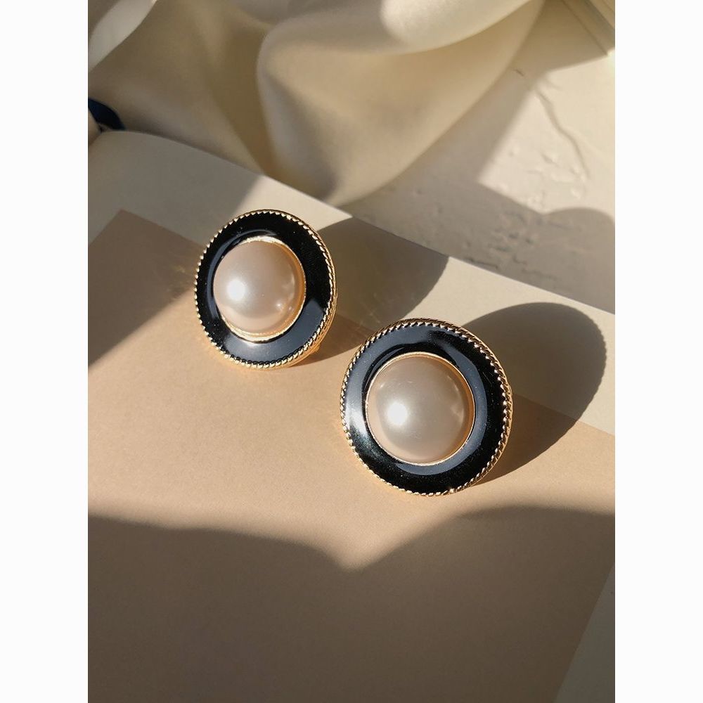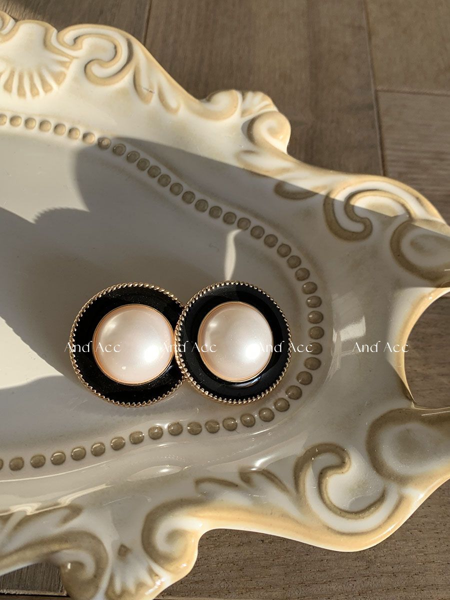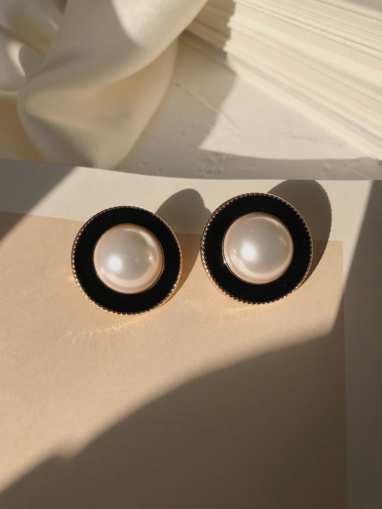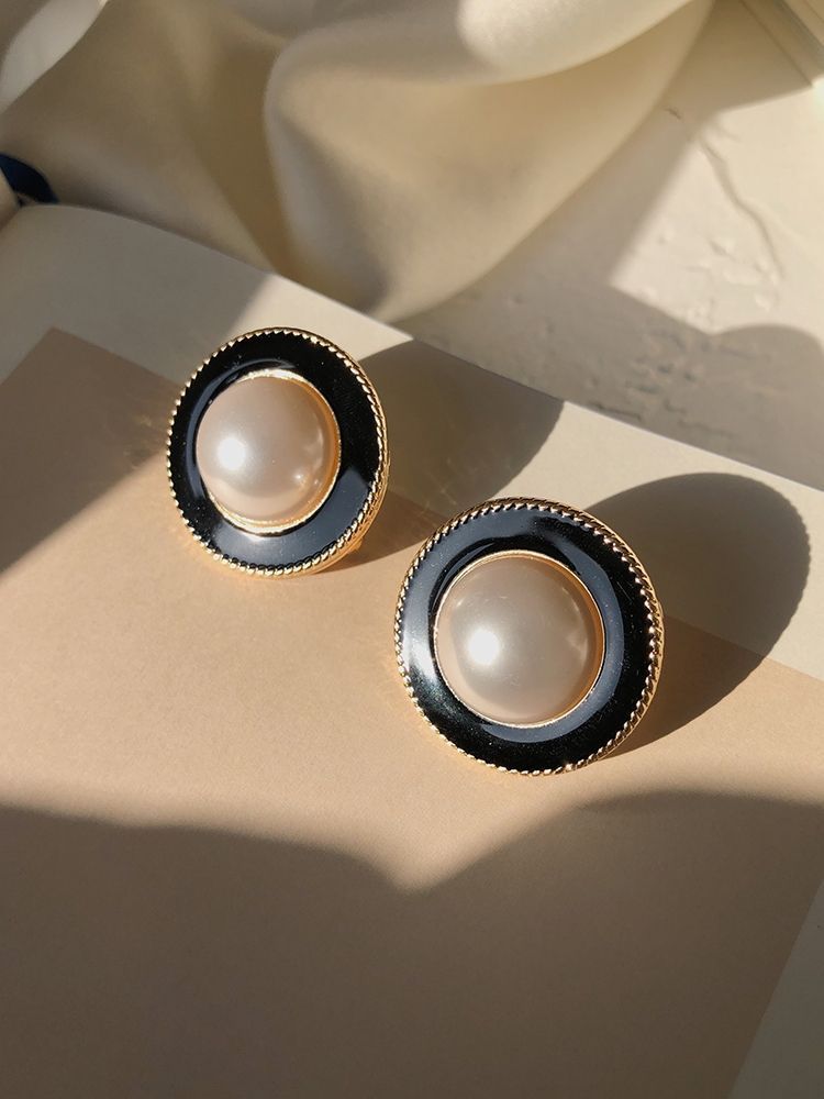 | a pair of black pearl round ear studs(黑色珍珠圆形耳钉 一对) | USD $1.78 | 99999 piece available |