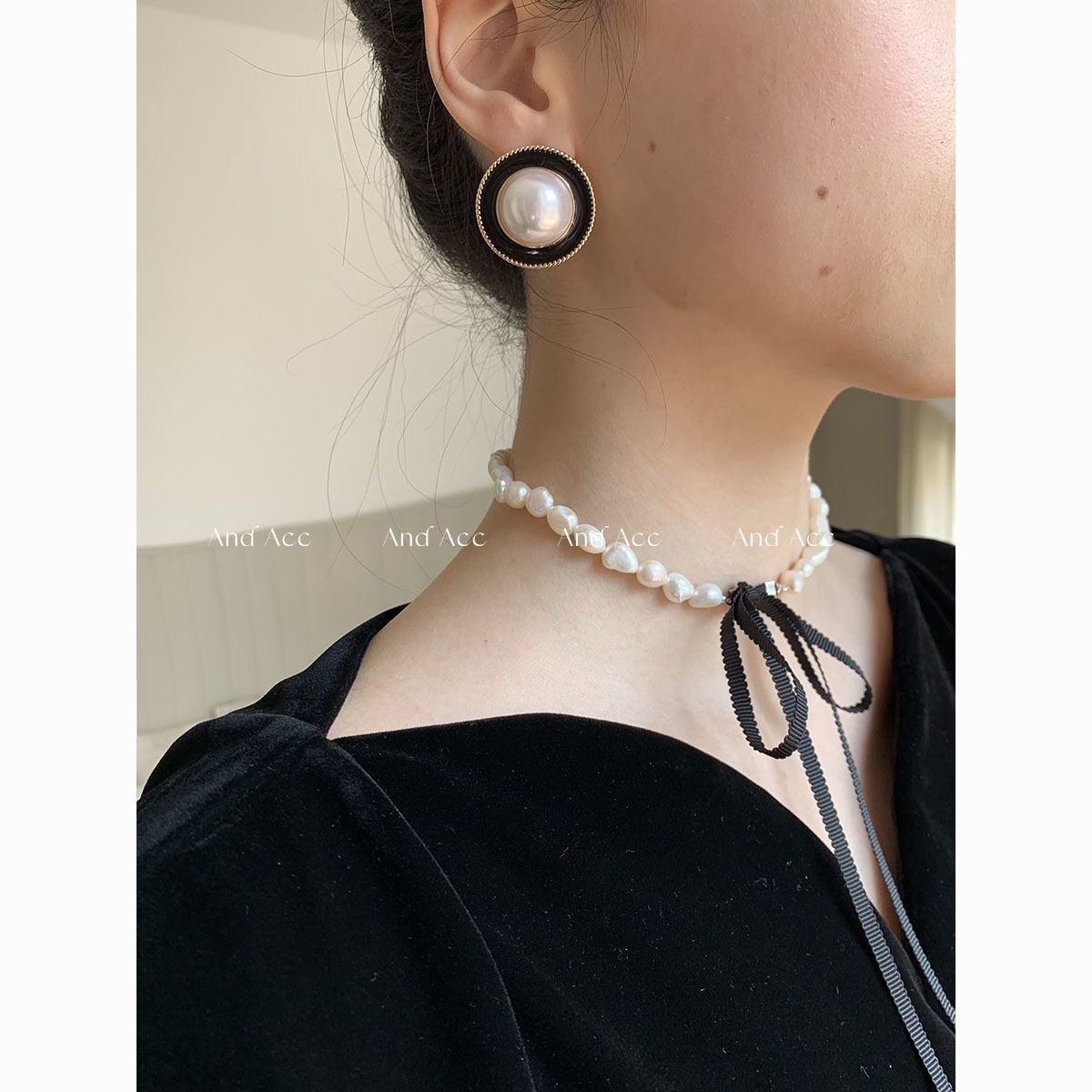 | one black pearl round ear studs(黑色珍珠圆形耳钉 一个) | USD $1.49 | 99999 piece available |