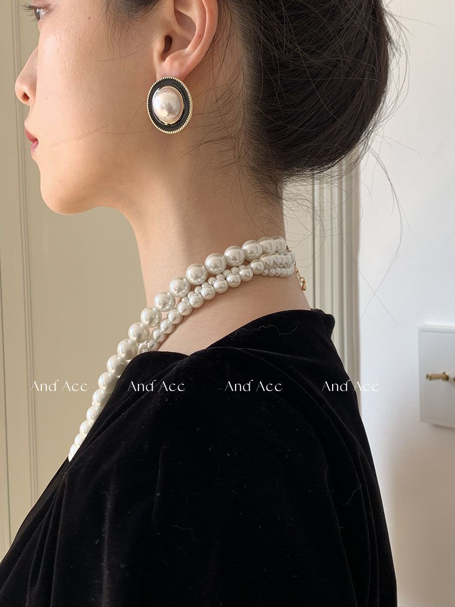 钟楚曦同款复古vintage珍珠几何中世纪古着耳环港风优雅气质耳饰