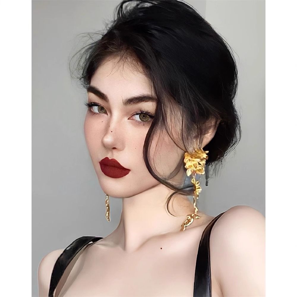 zoozmomo欧美风夸张中古金色花朵流苏耳环女高级感气质方圆脸耳饰