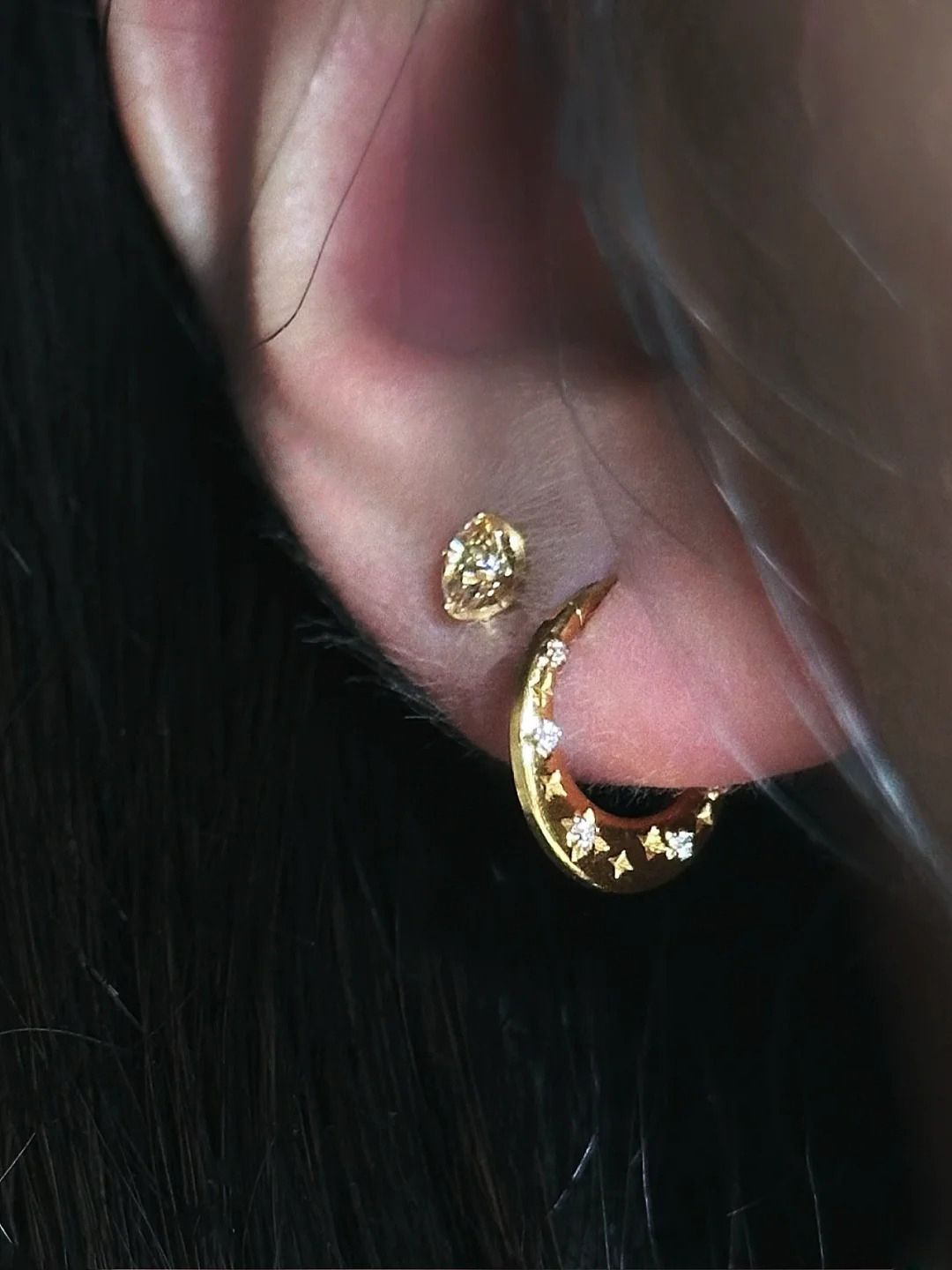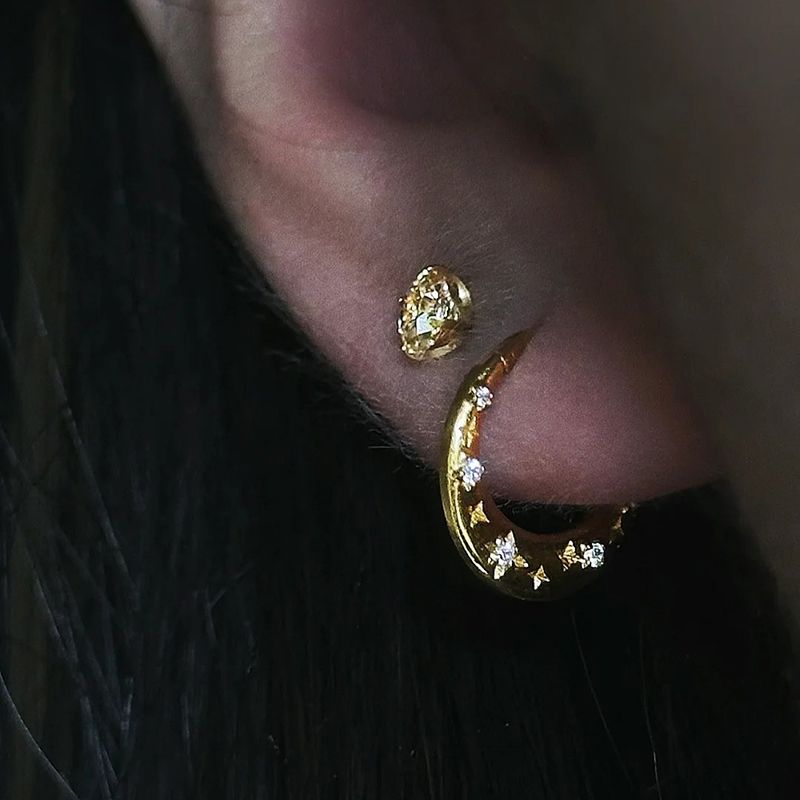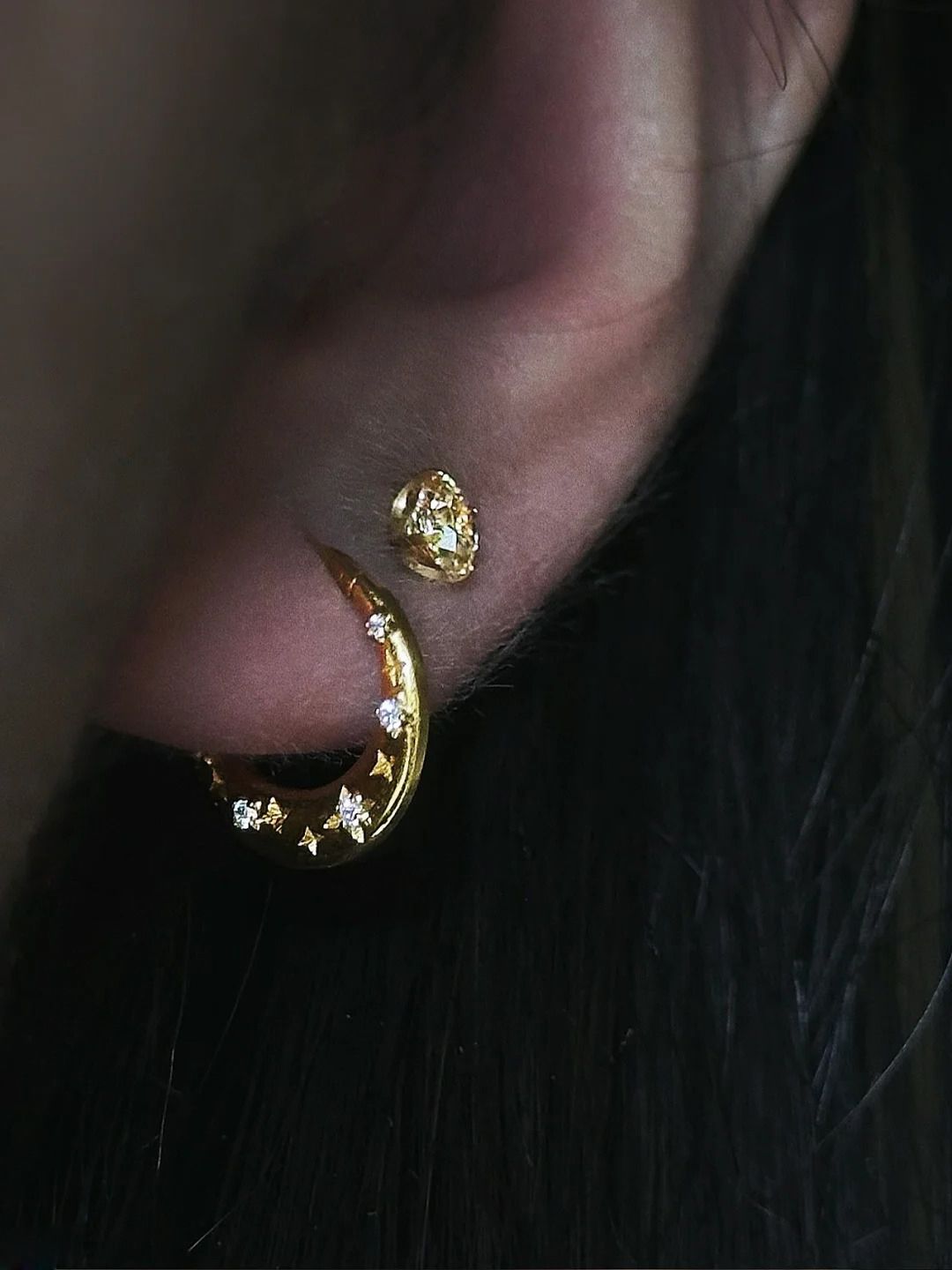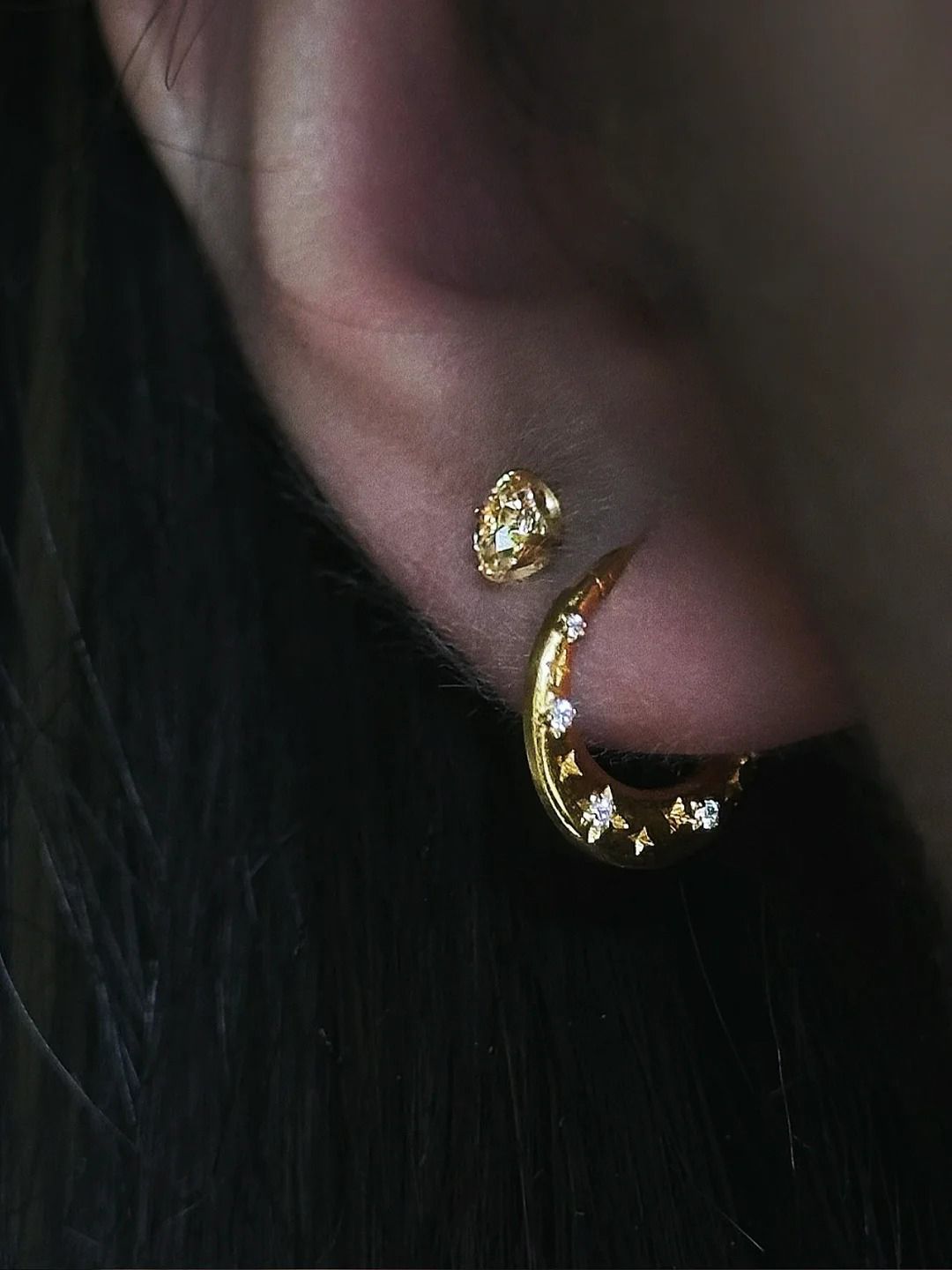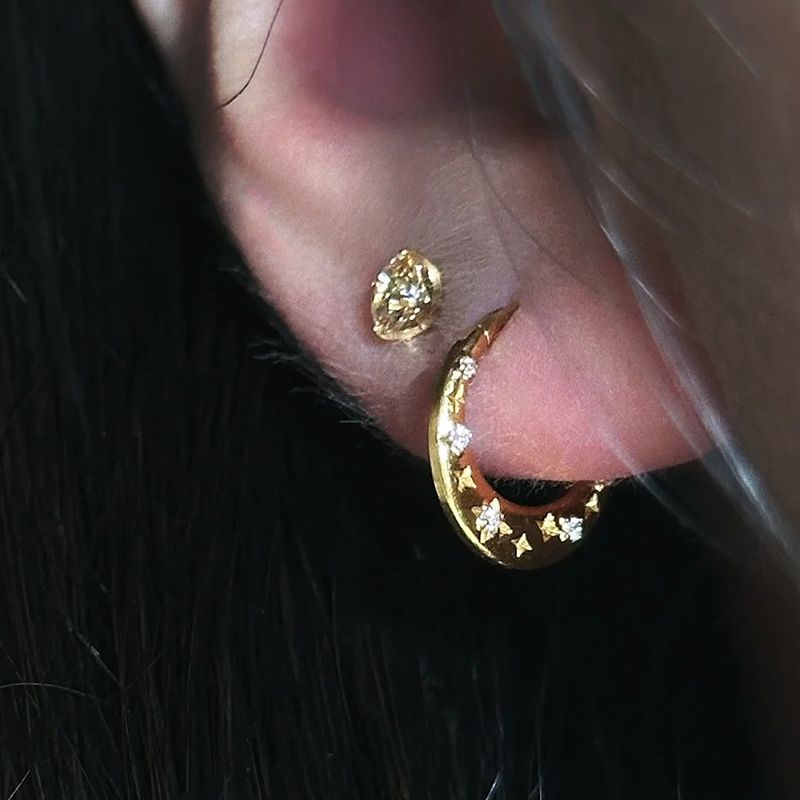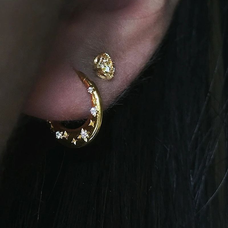 中古微镶锆石四芒星圈圈耳环爆款潮轻奢小众气质高级感金色耳饰女