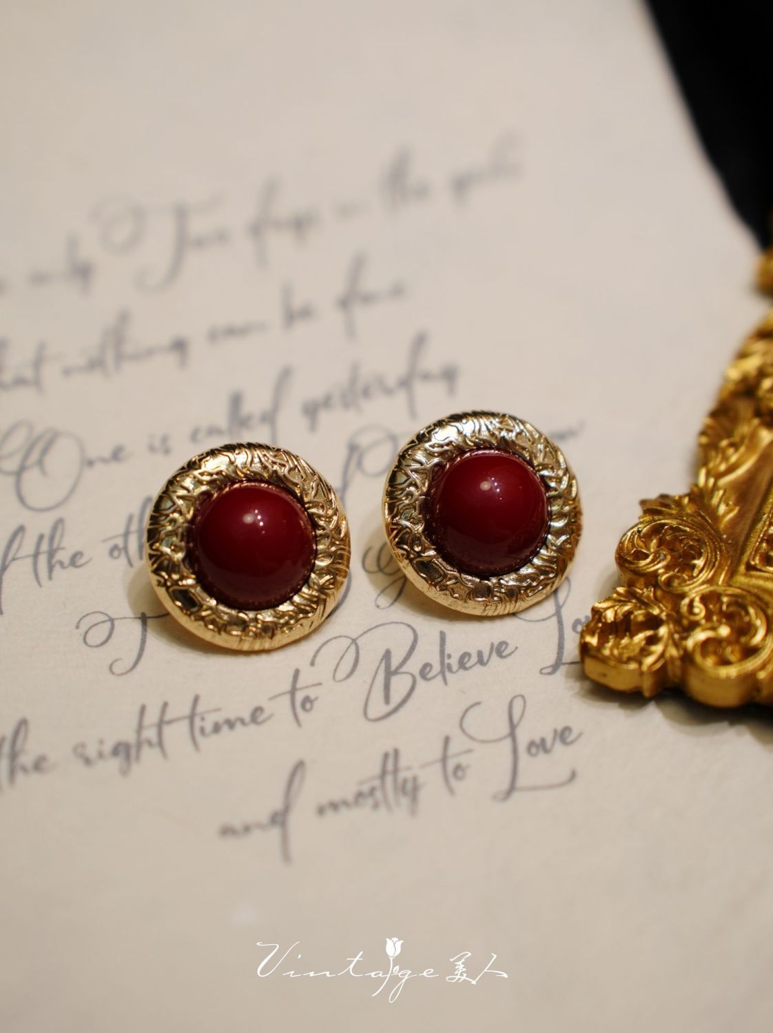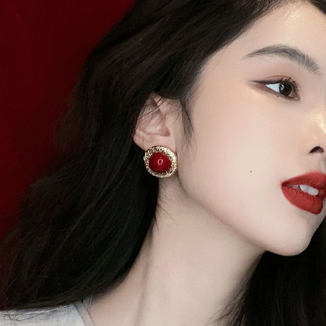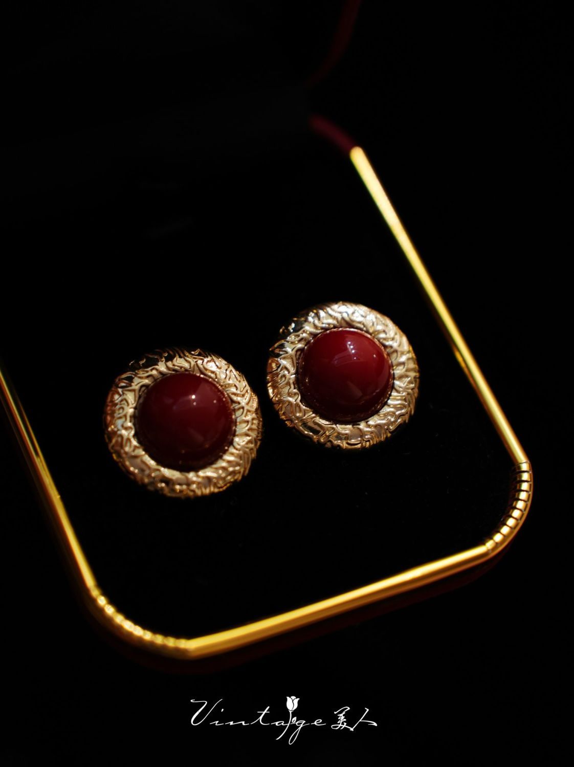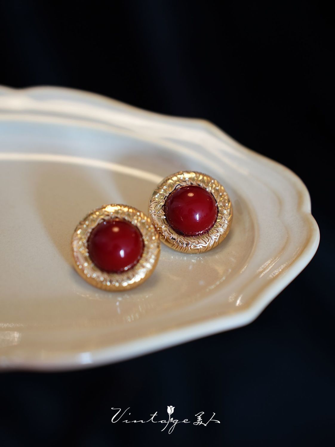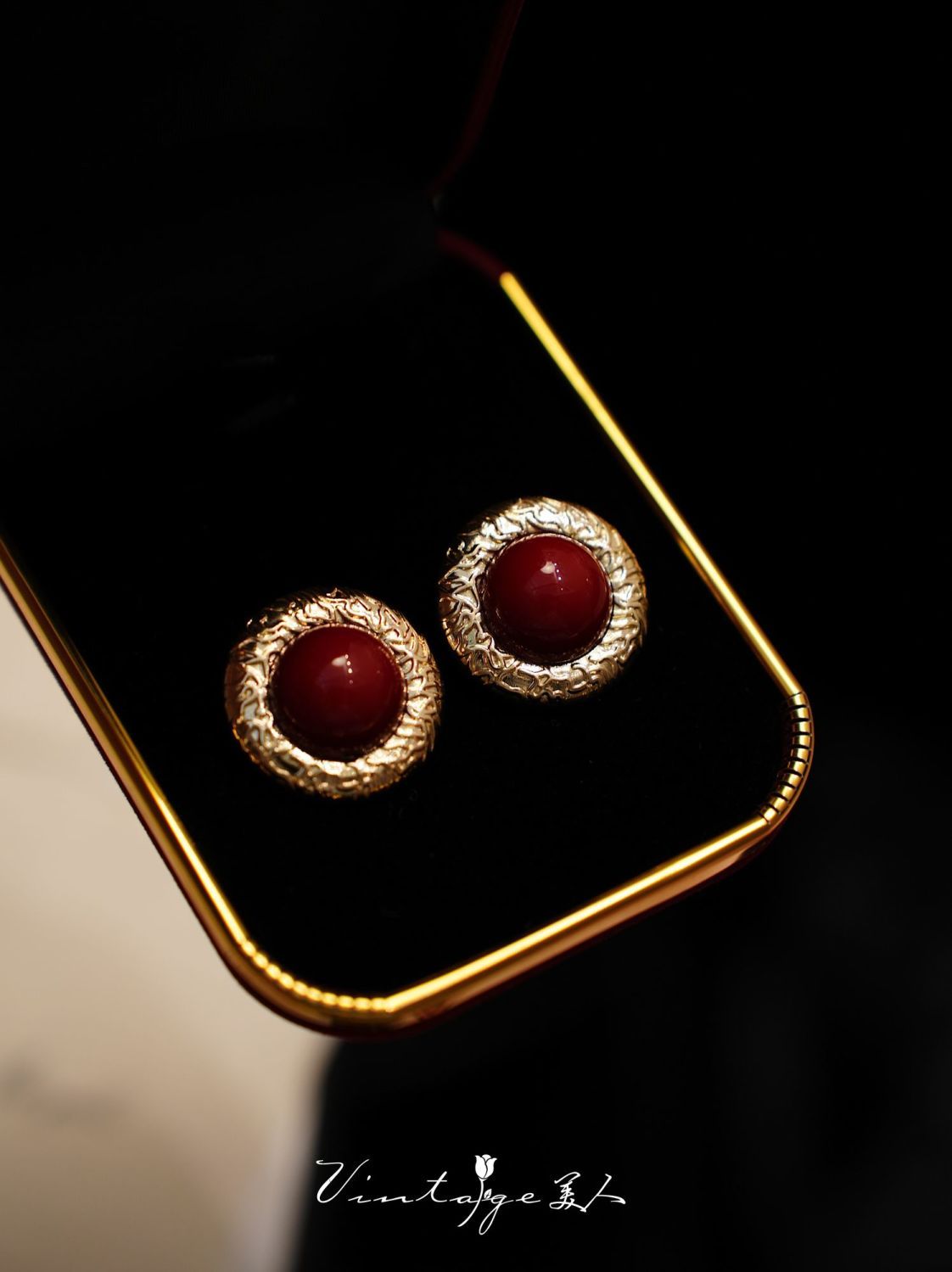 「曼斯菲尔德」复古法式高级感港风红色宝石中古耳钉新款耳饰