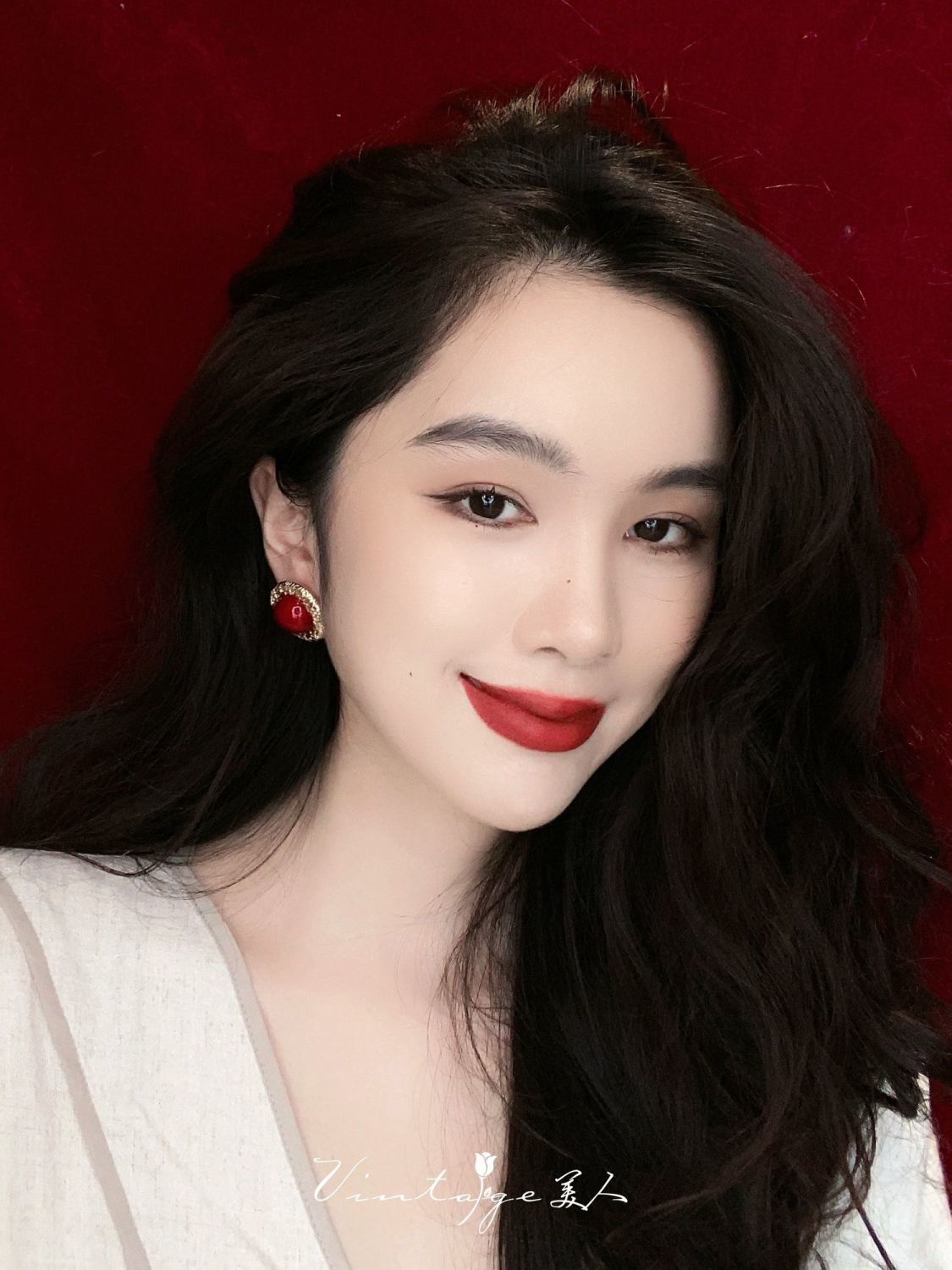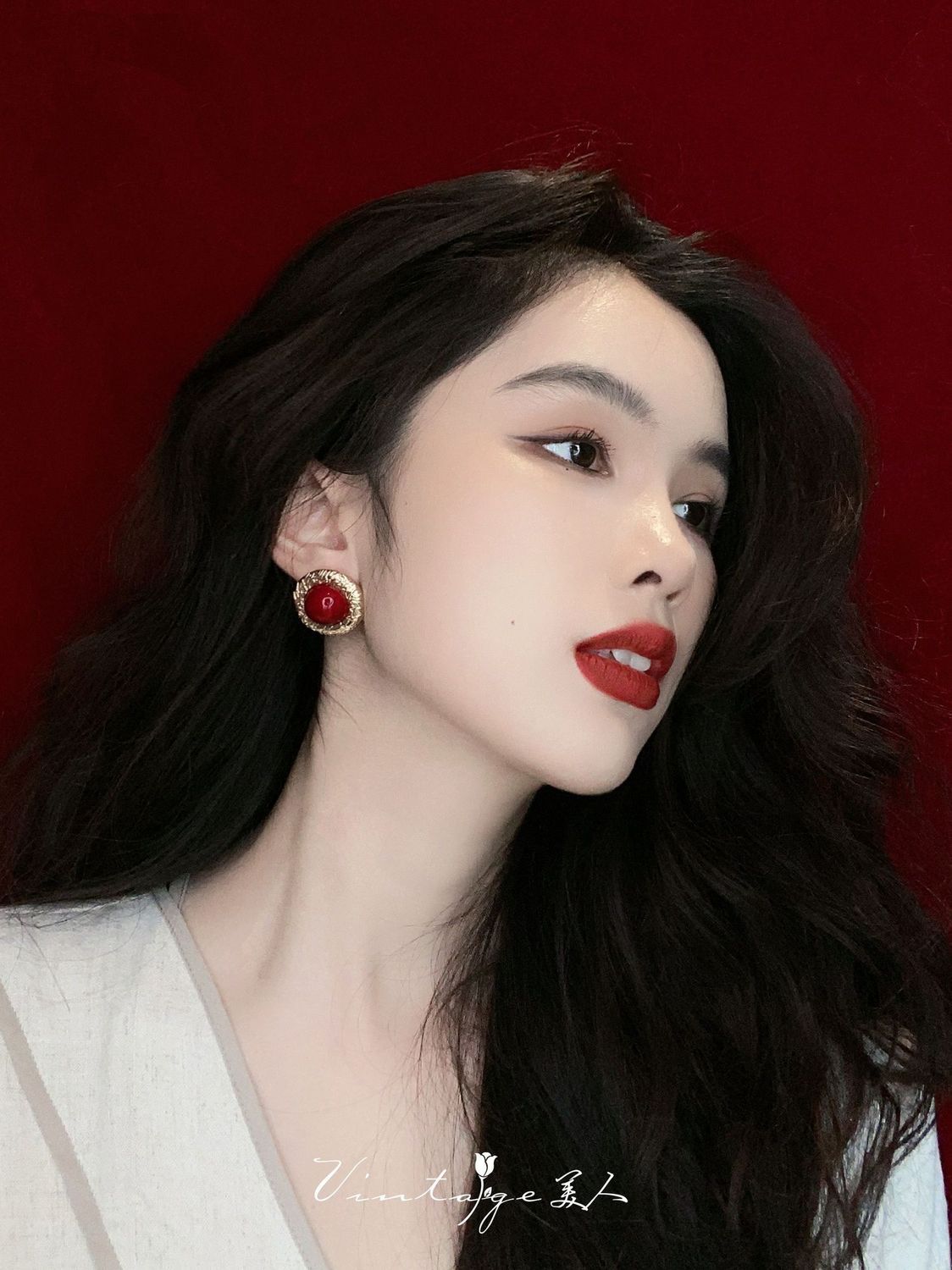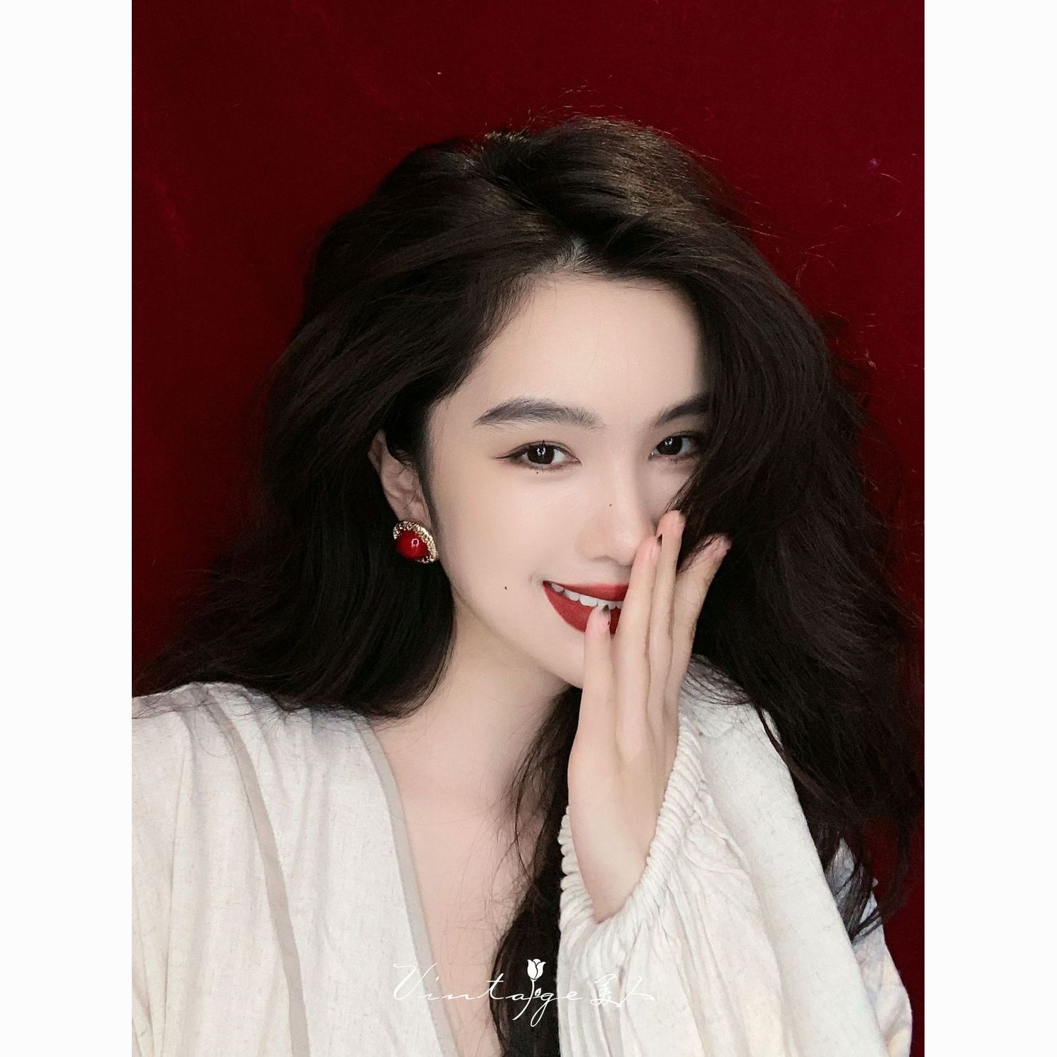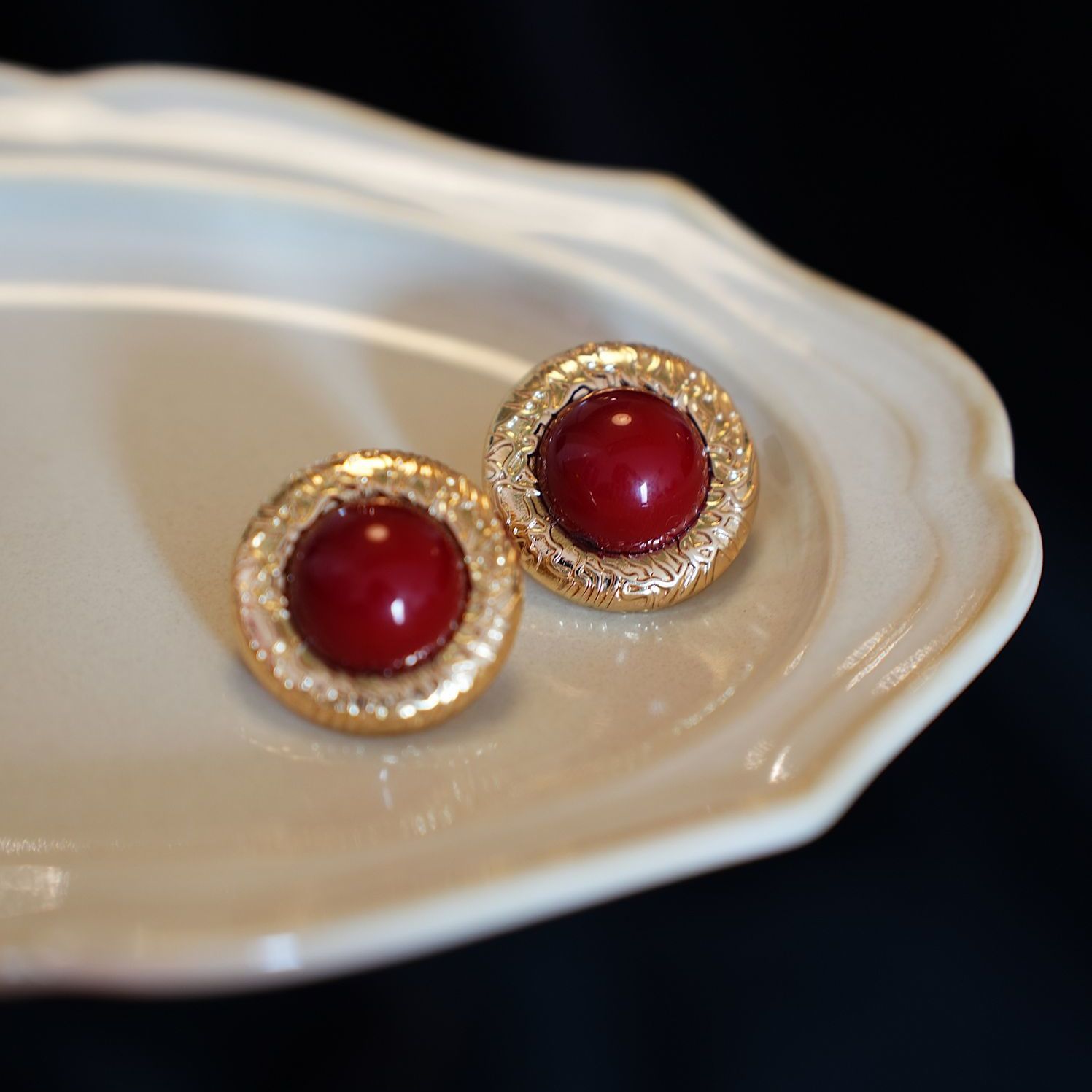 「曼斯菲尔德」复古法式高级感港风红色宝石中古耳钉新款耳饰