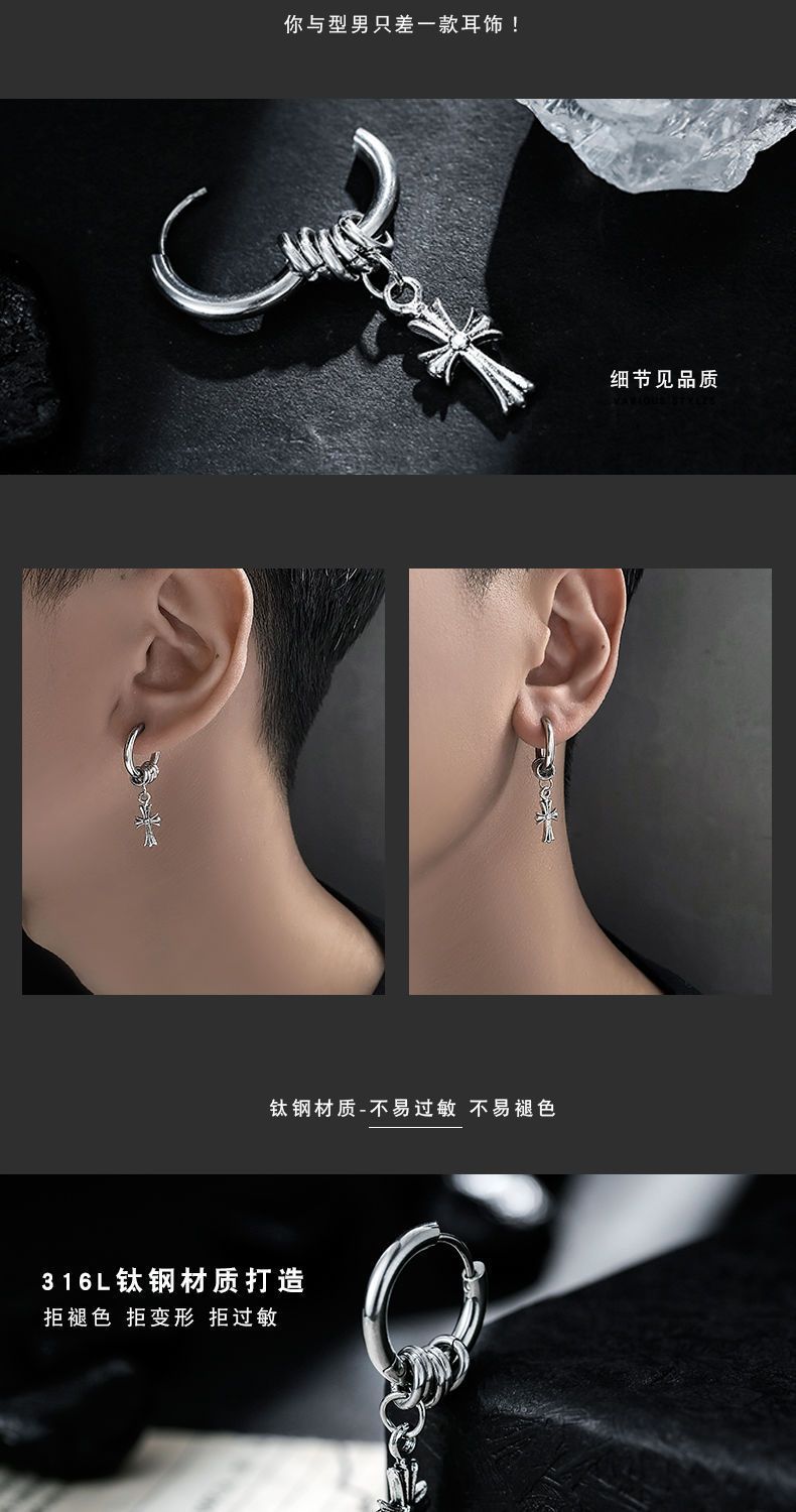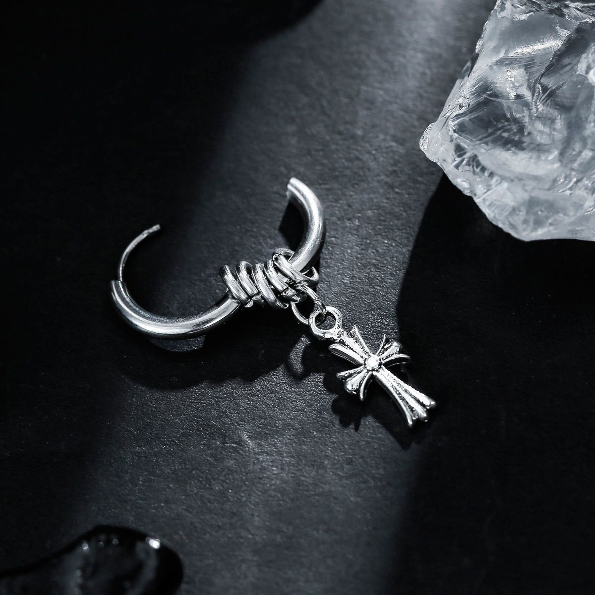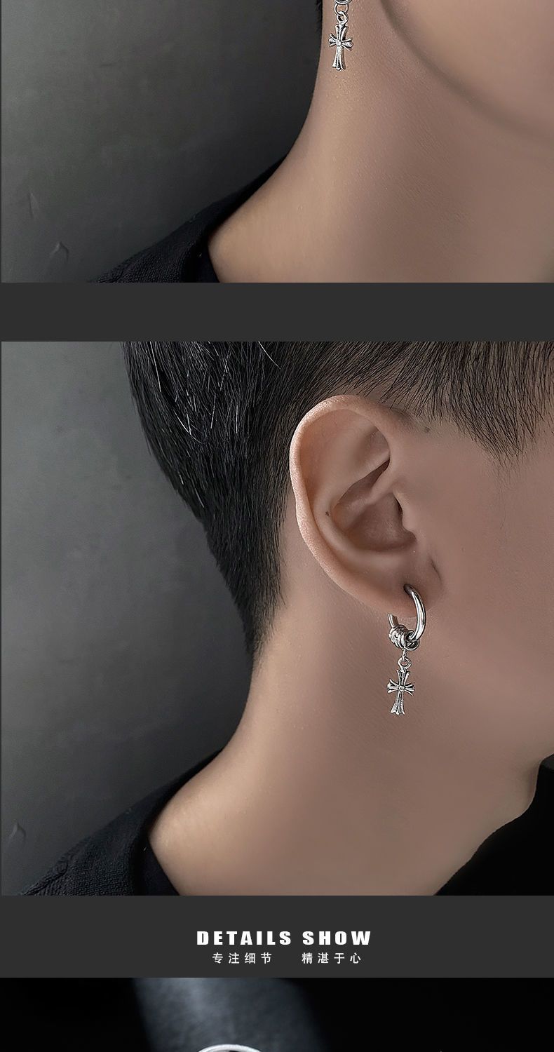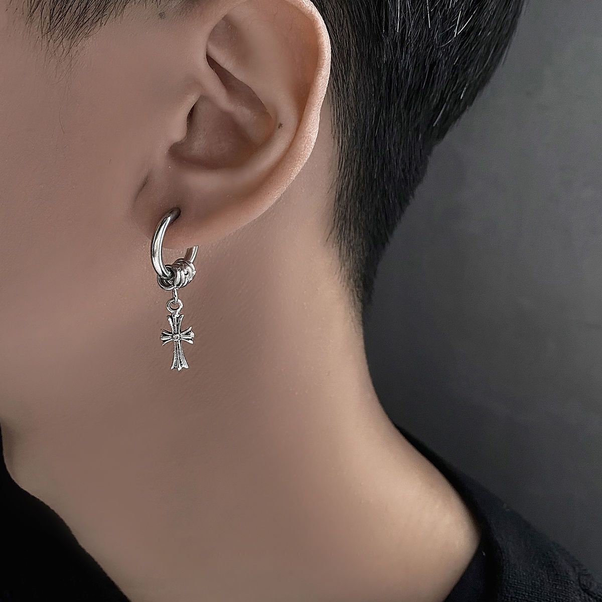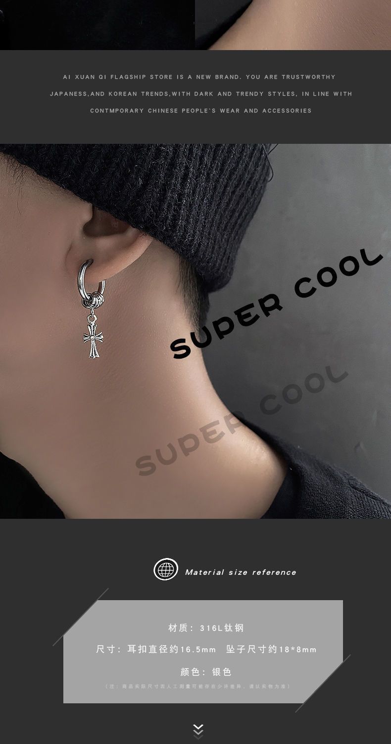 耳钉ins小众十字男生耳环吊坠潮欧美风中古耳饰vintage美式耳环男