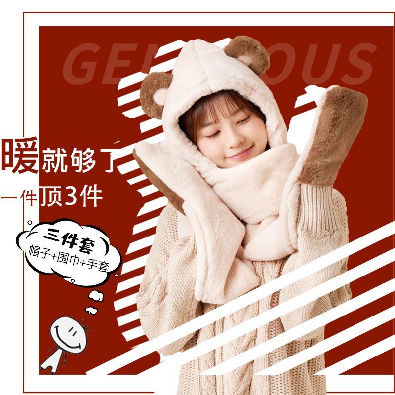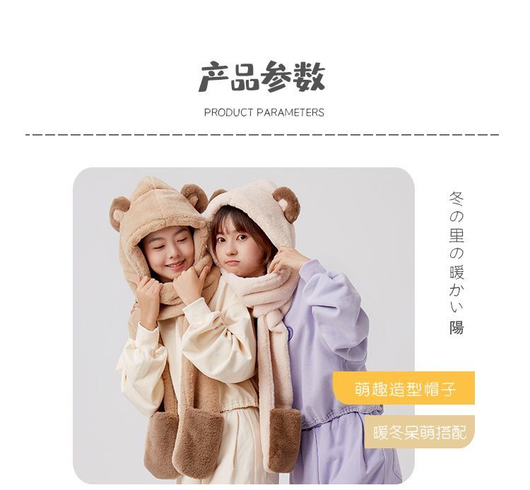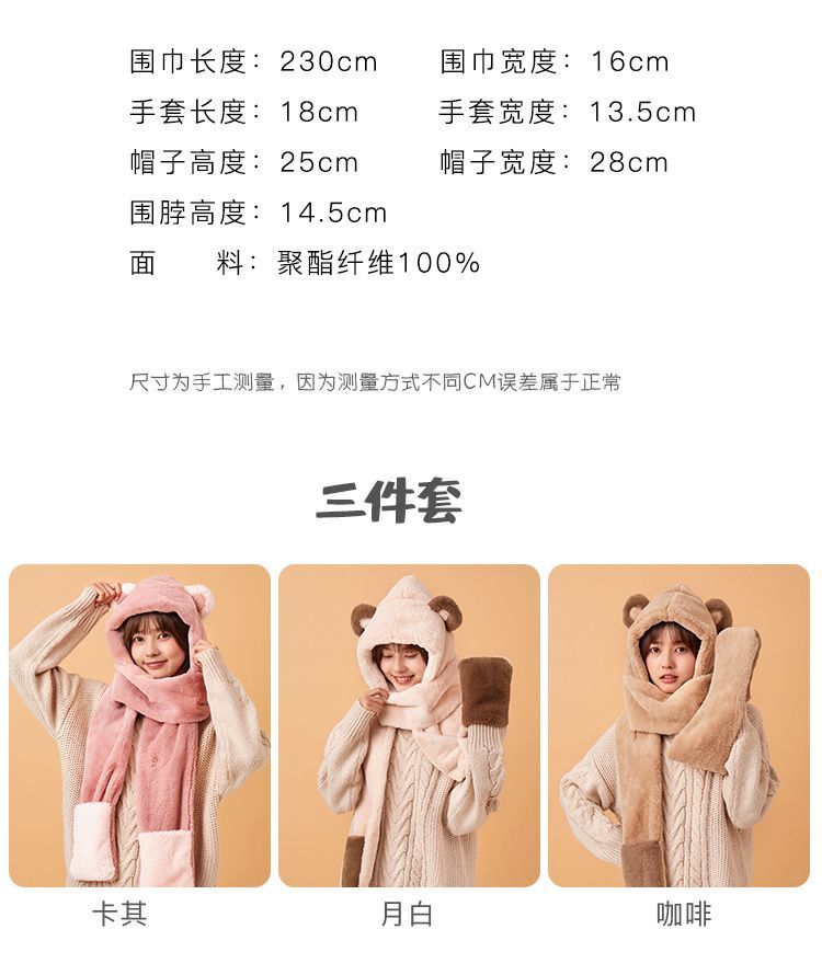 | bear model-hat scarf gloves three-in-one-khaki(小熊款-帽子围巾手套三合一-卡其色) | USD $5.23 | 99999 piece available |