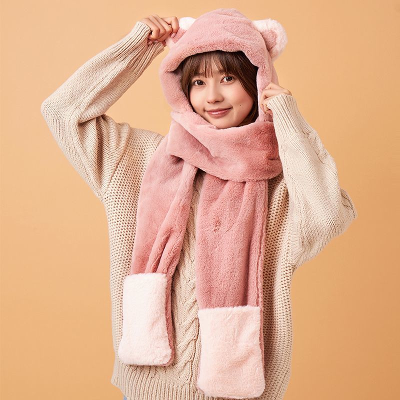 | bear style-hat scarf two-in-one-rose pink(小熊款-帽子围巾二合一-玫粉色) | USD $3.75 | 99999 piece available |