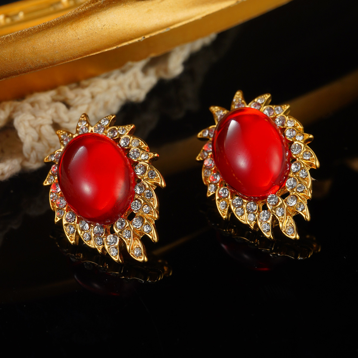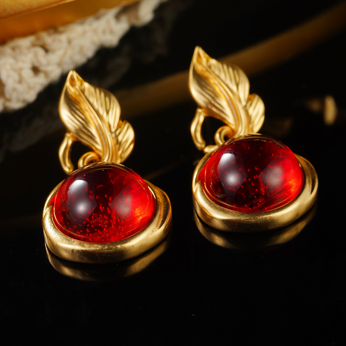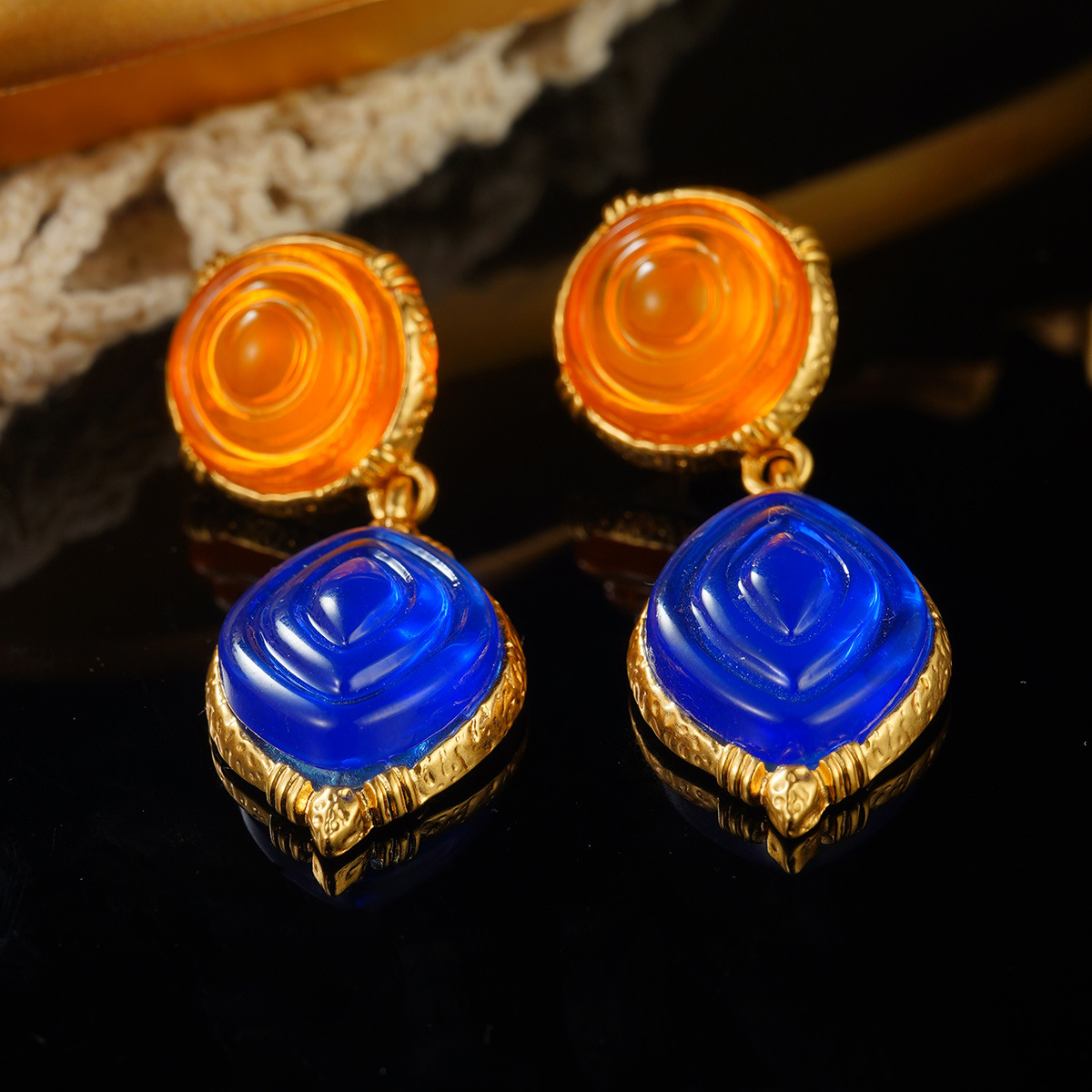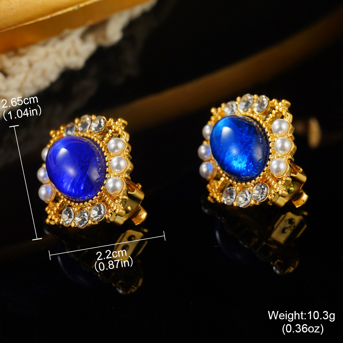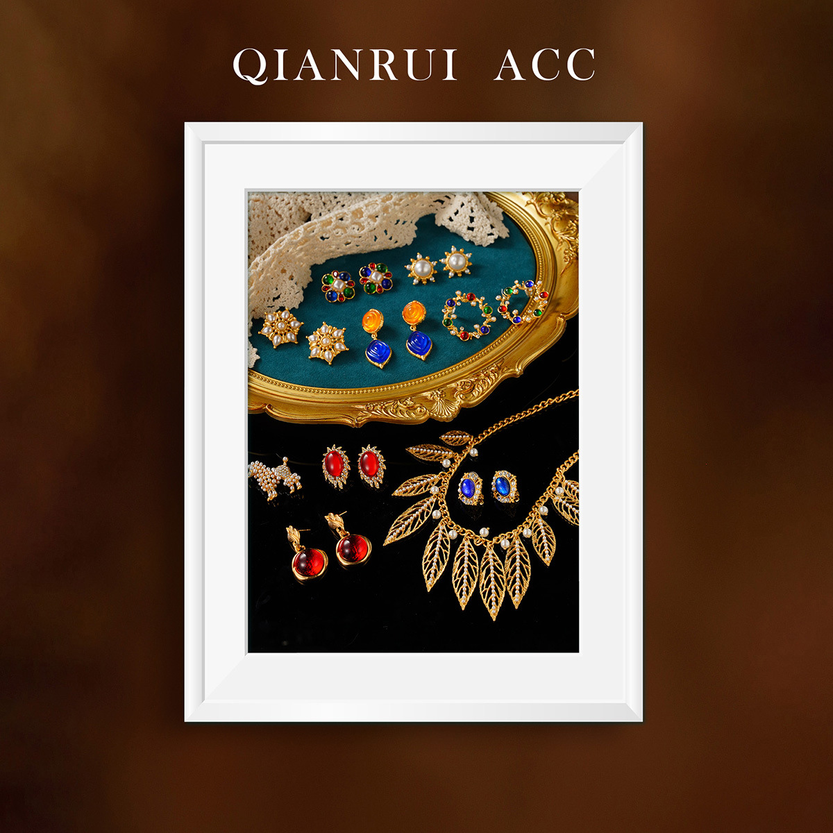 宫廷珐琅复古彩色中古vintage耳环珍珠镶钻耳饰几何高级百搭耳钉