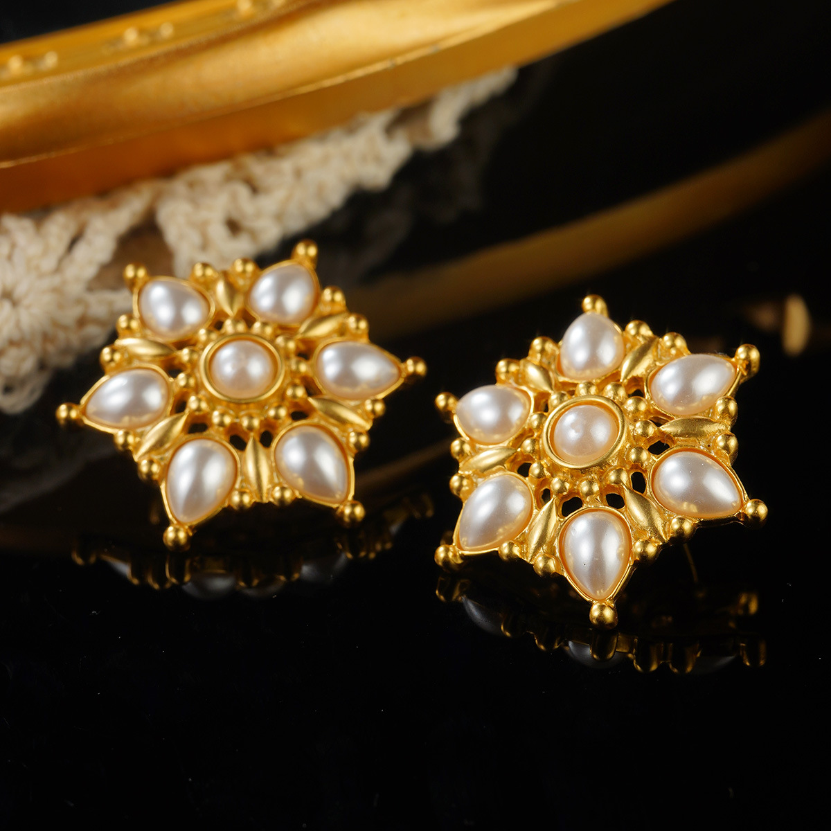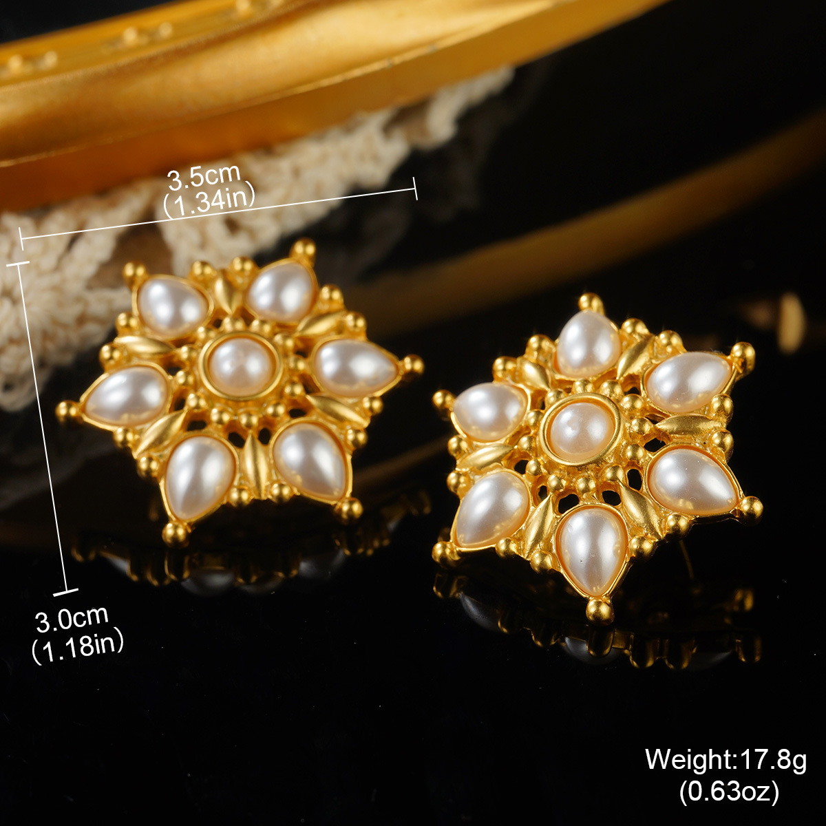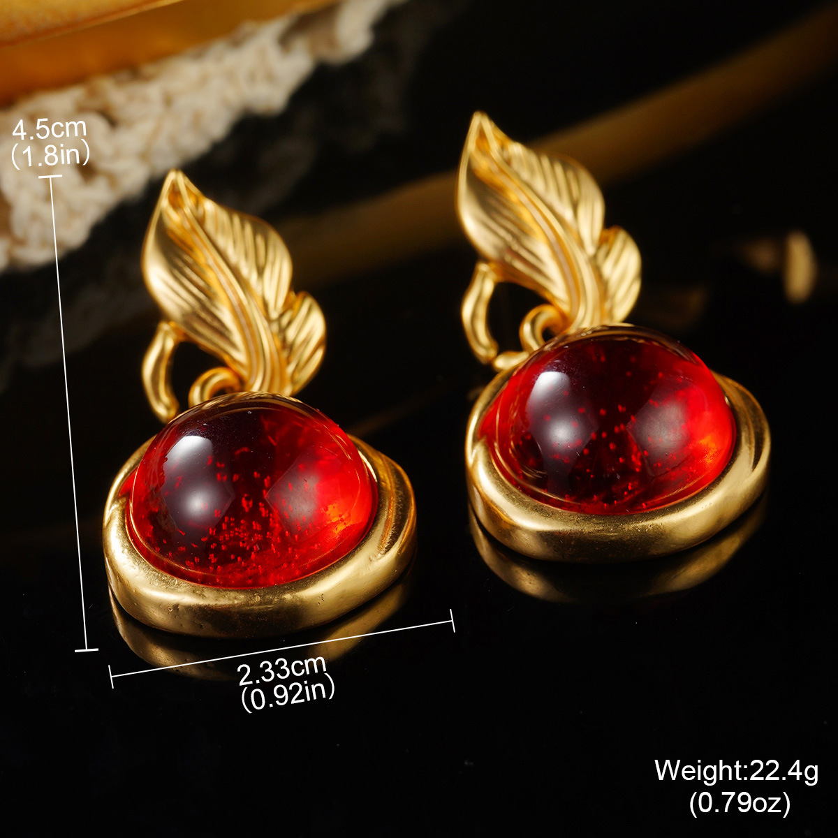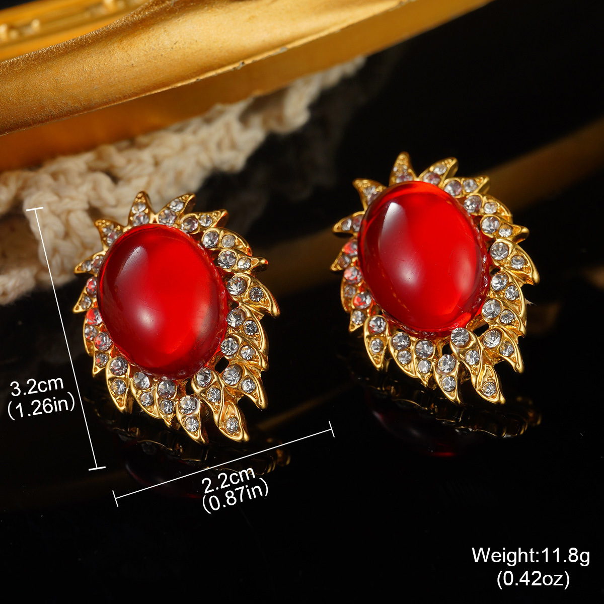 宫廷珐琅复古彩色中古vintage耳环珍珠镶钻耳饰几何高级百搭耳钉