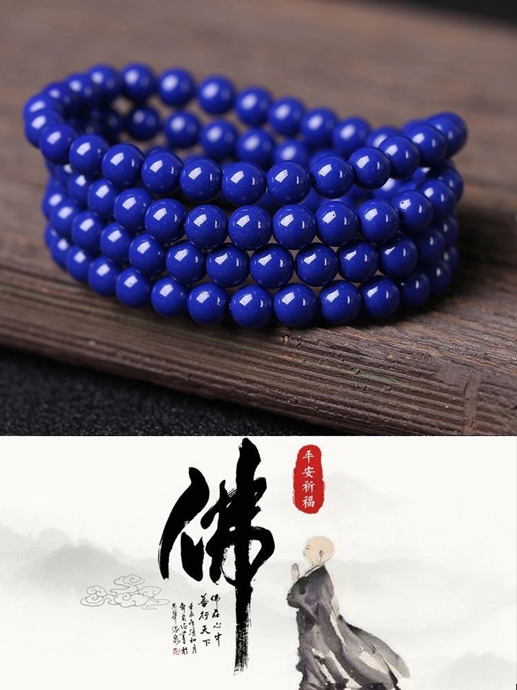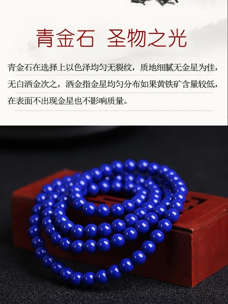 收藏级天然阿富汗帝王青金石手串手链无白无金 佛珠108颗男女款