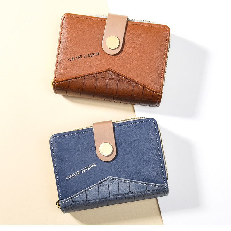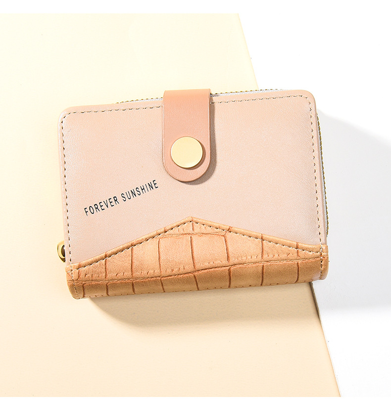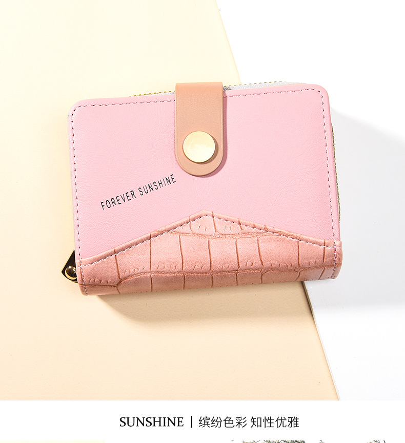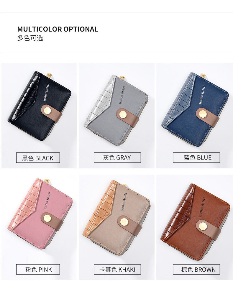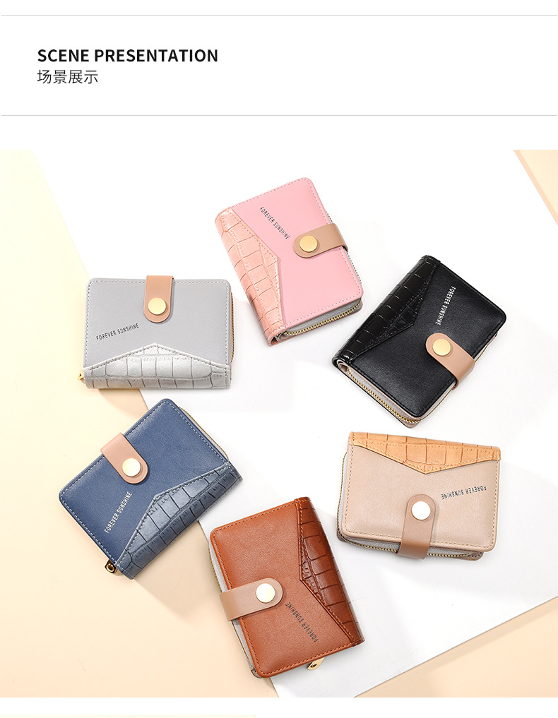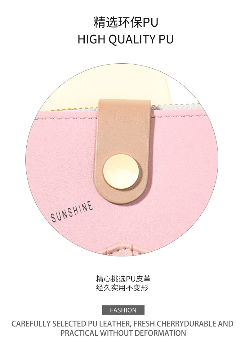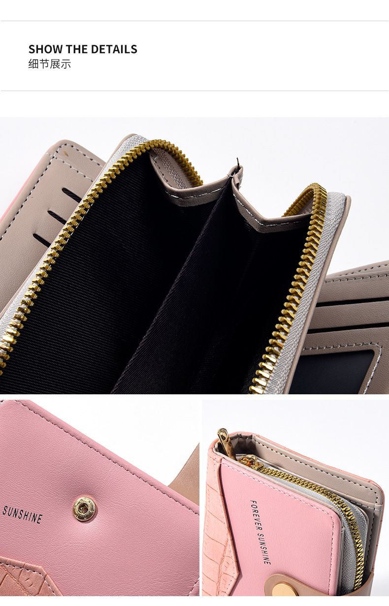 新款女士钱包纯色皮带装饰拼接时尚大容量女包多功能多卡位零钱夹
