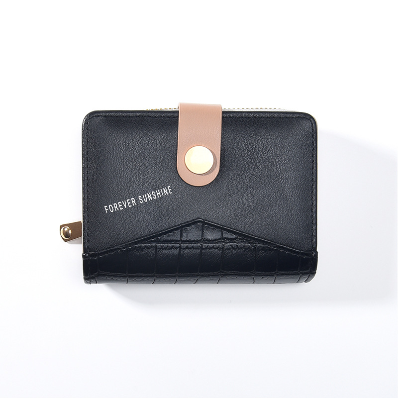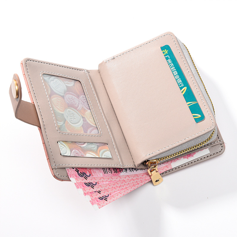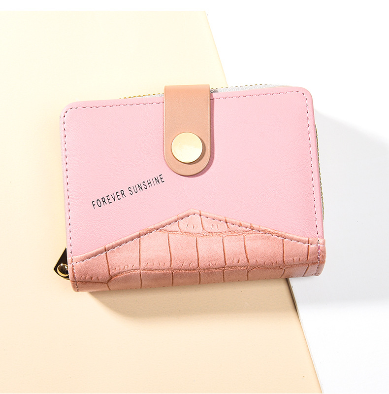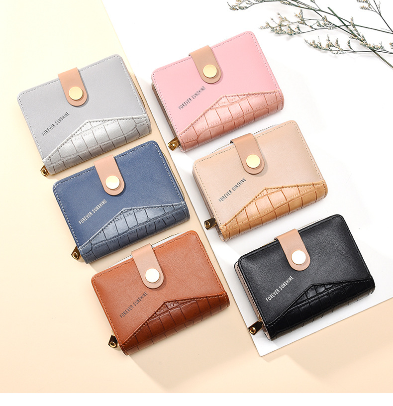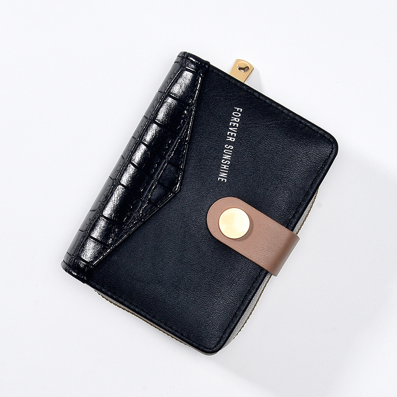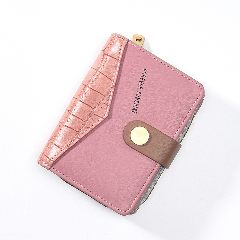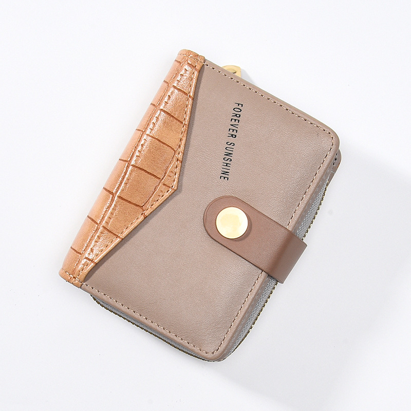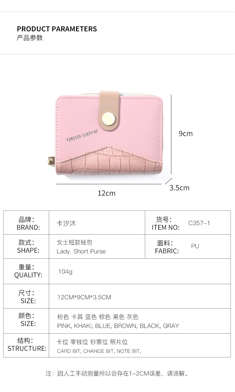 新款女士钱包纯色皮带装饰拼接时尚大容量女包多功能多卡位零钱夹