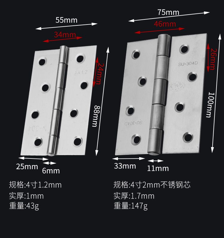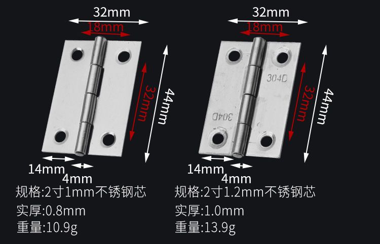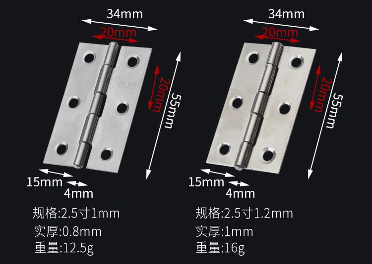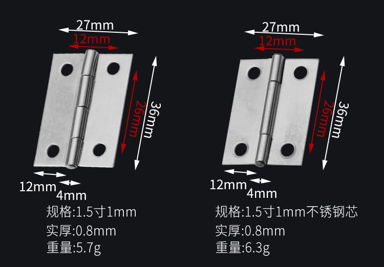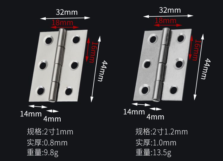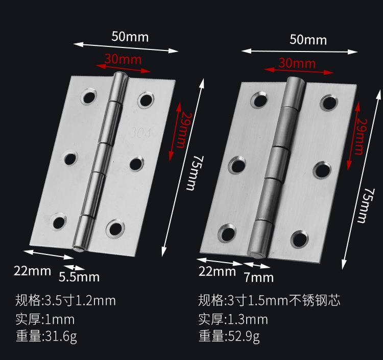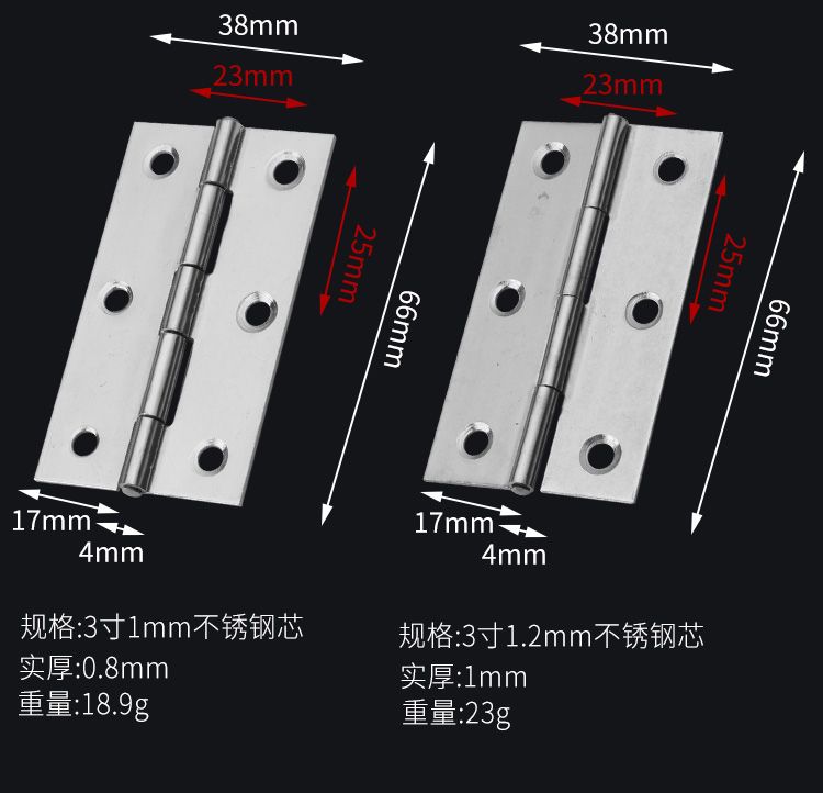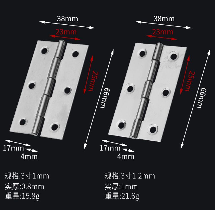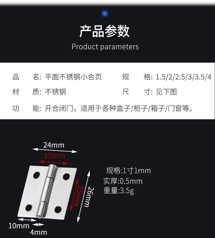 小柜门不锈钢平开小合页1.5寸/2寸/2.5寸/3寸/4寸橱柜门铰链折页
