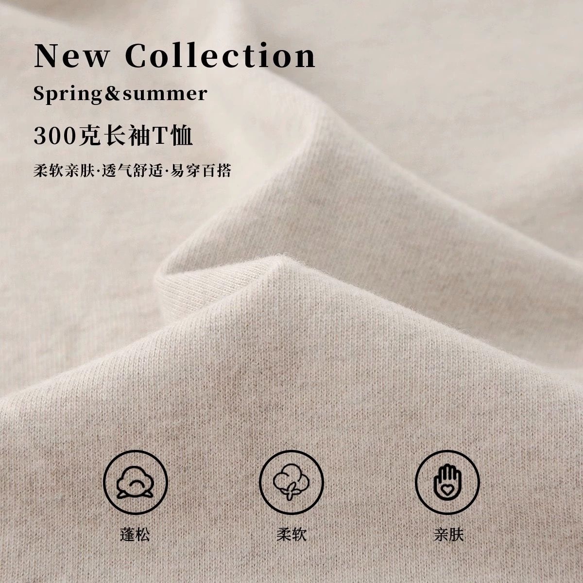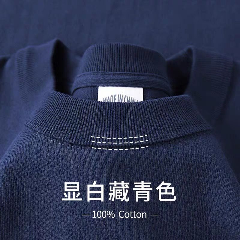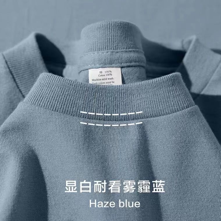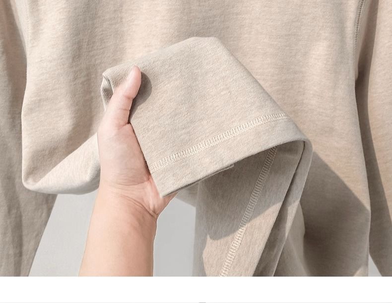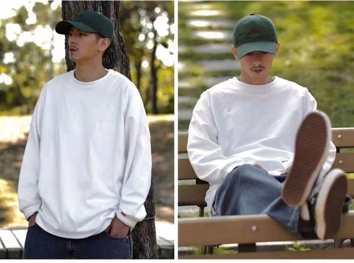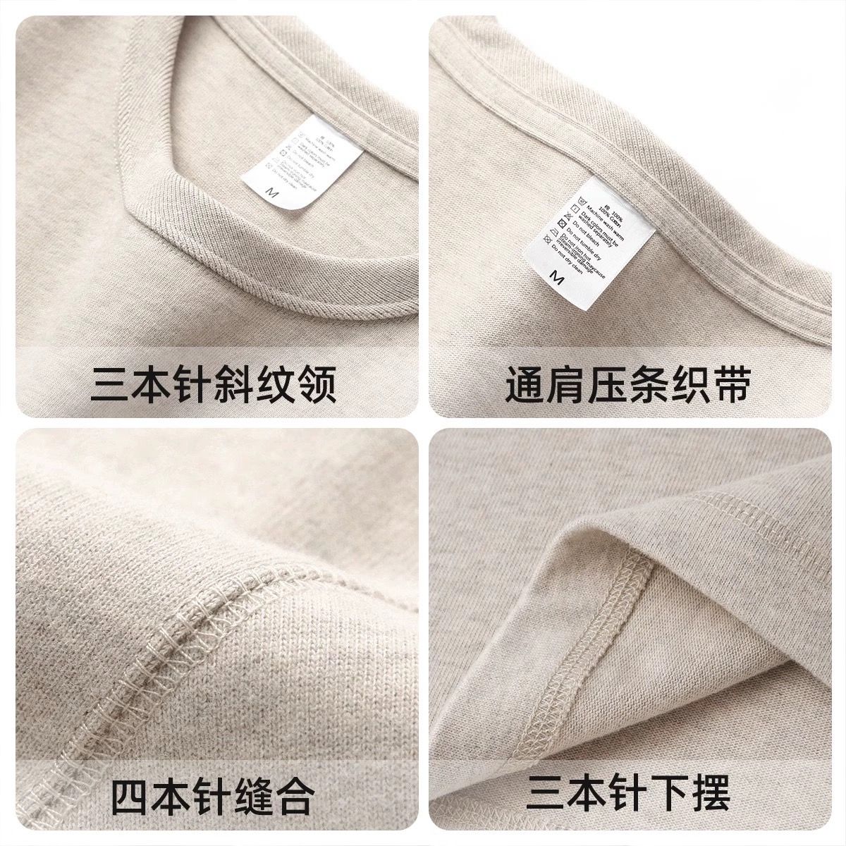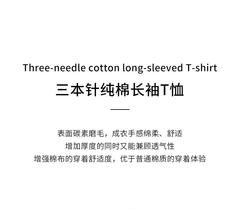 良心之作!三本针&新疆棉!300G重磅宽松砂灰色长袖T恤男女秋冬