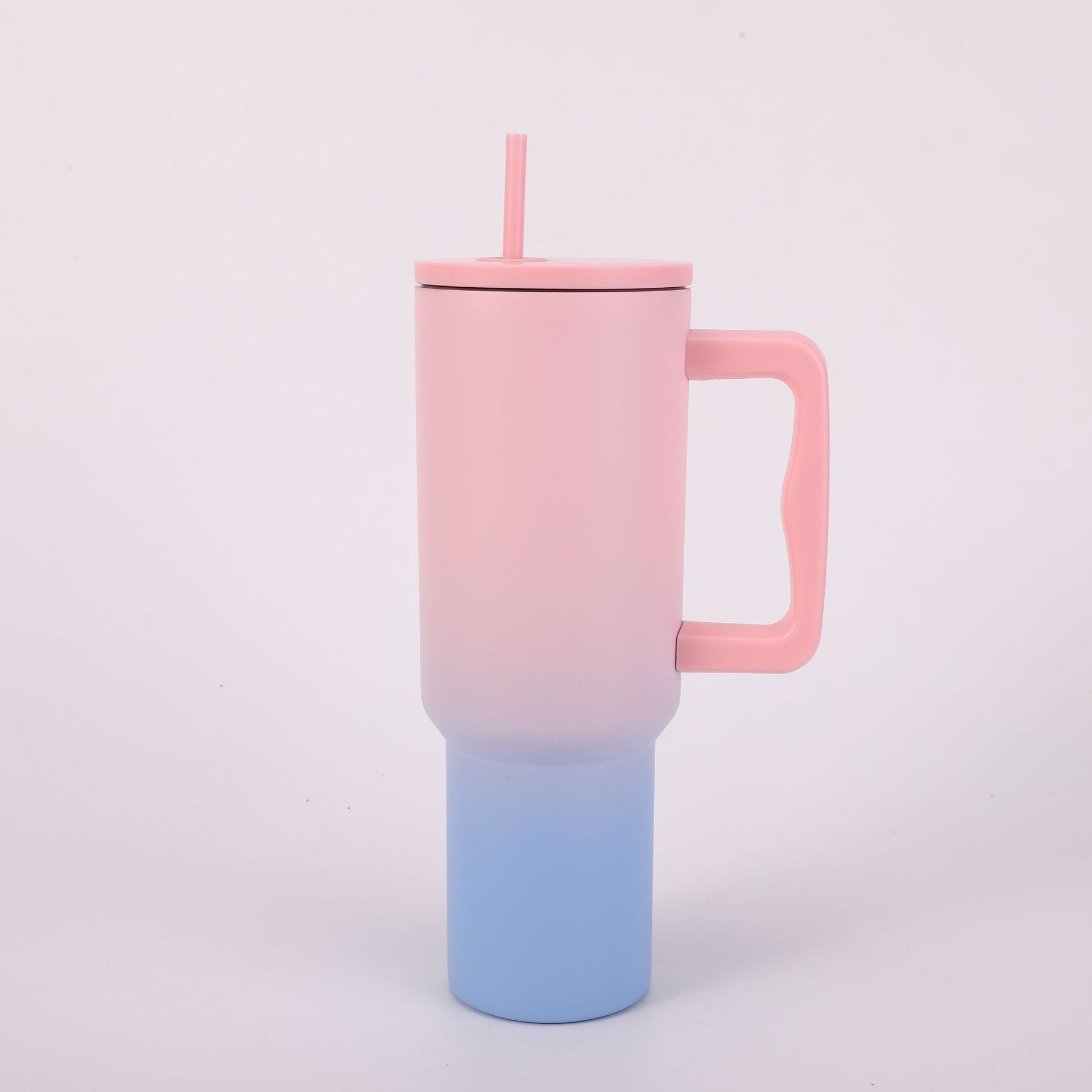 亚马逊不锈钢豹纹吸管保温杯户外便携30oz40oz汽车杯带手柄冰霸杯