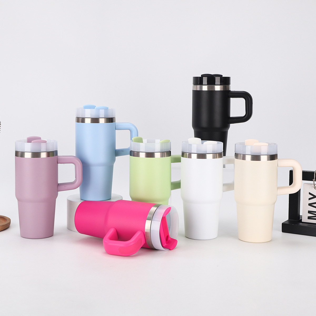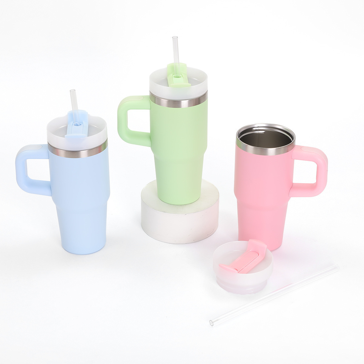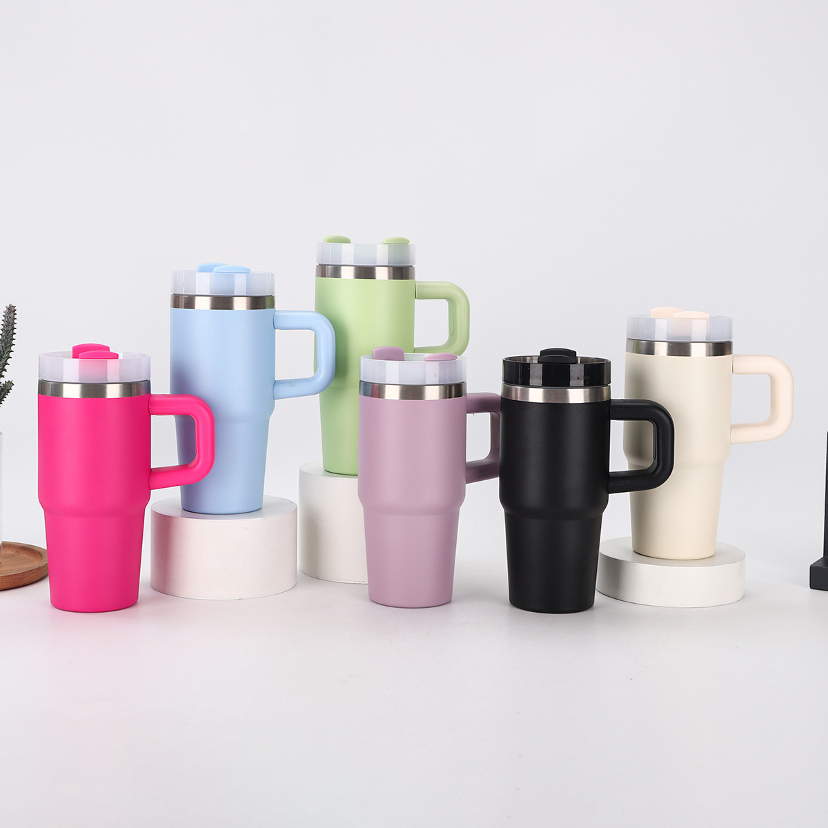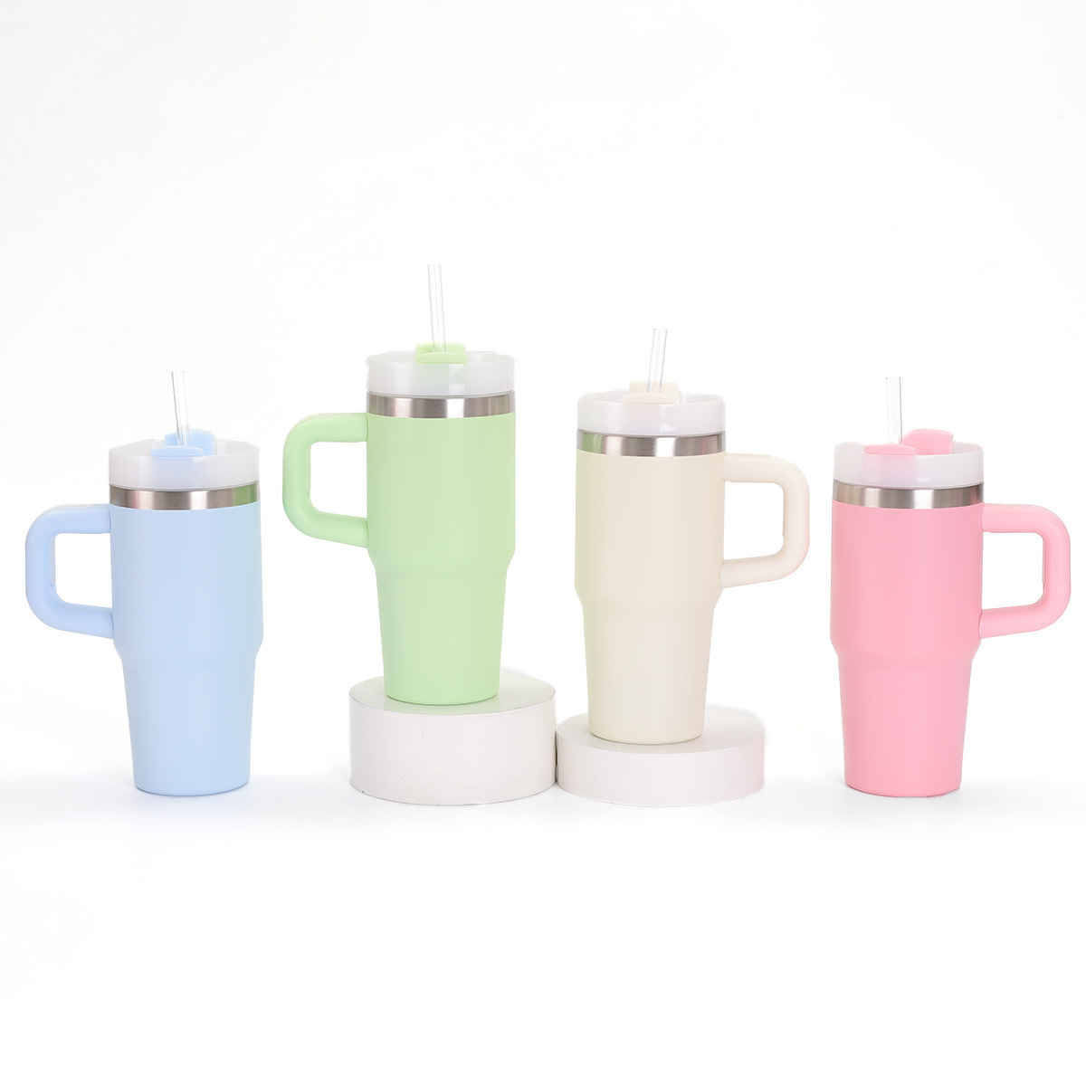 跨境爆款便携车载汽车杯14oz吸管冰霸杯手柄杯不锈钢保温杯批发