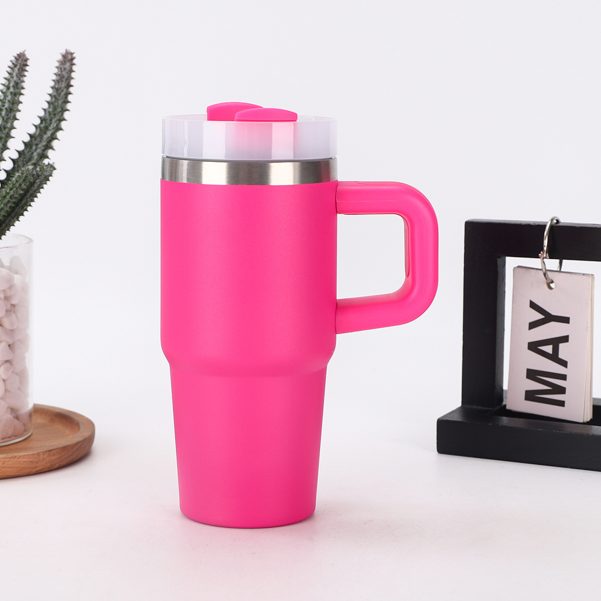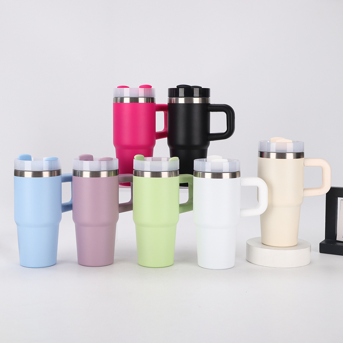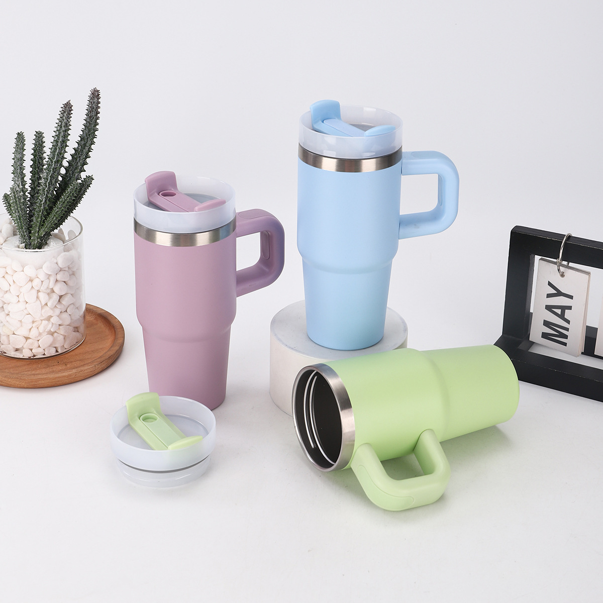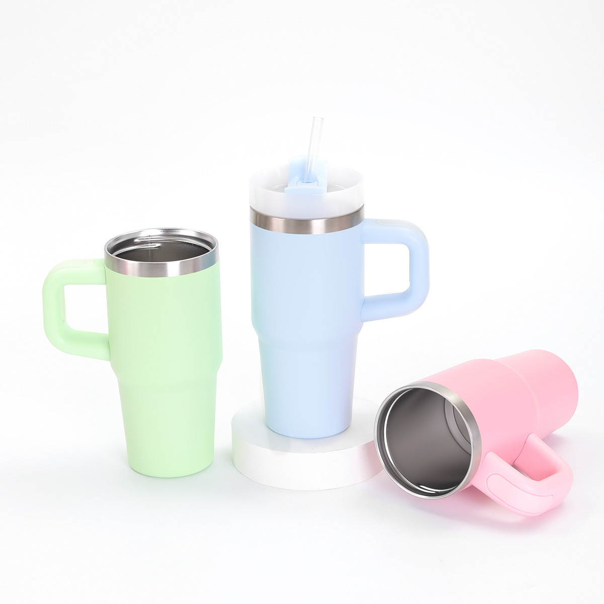 跨境爆款便携车载汽车杯14oz吸管冰霸杯手柄杯不锈钢保温杯批发