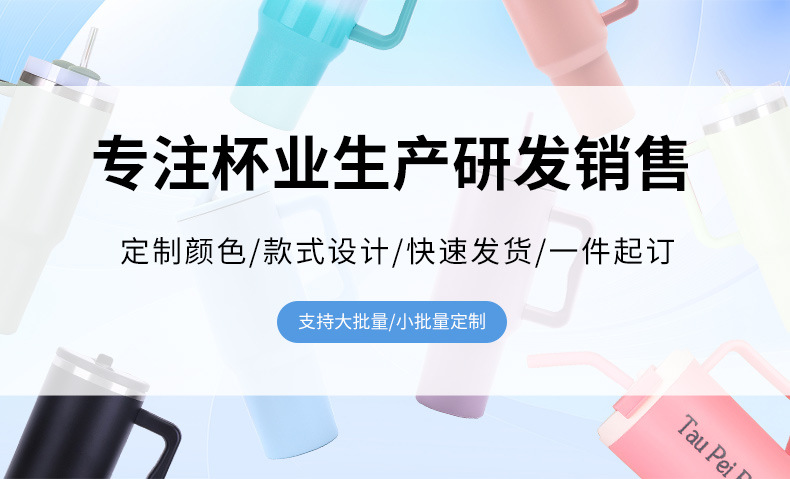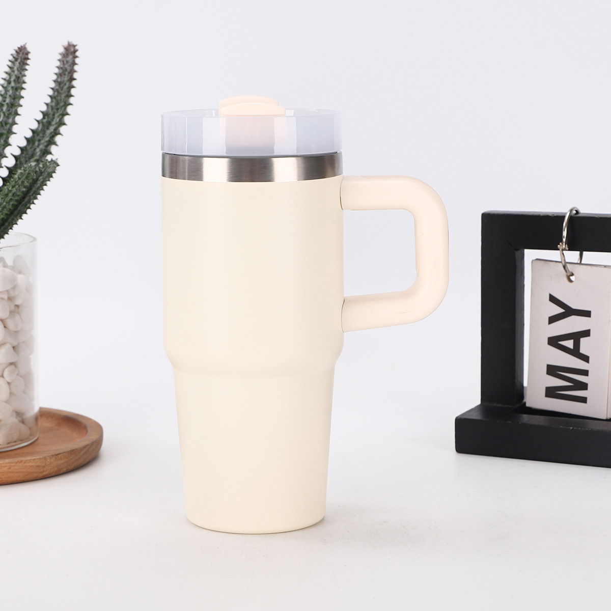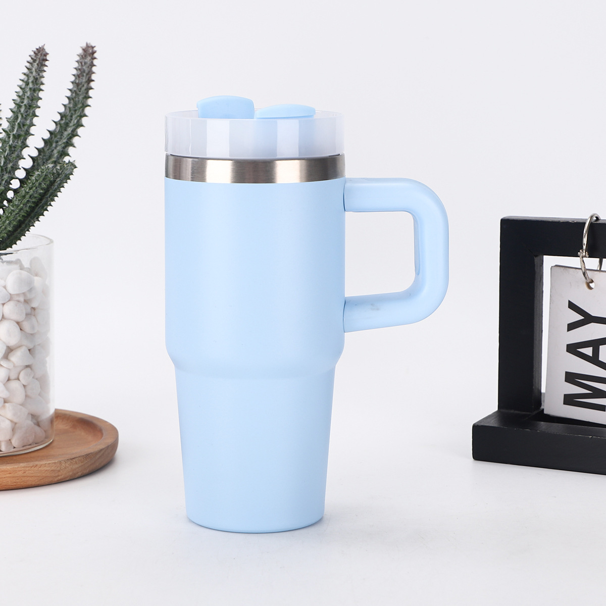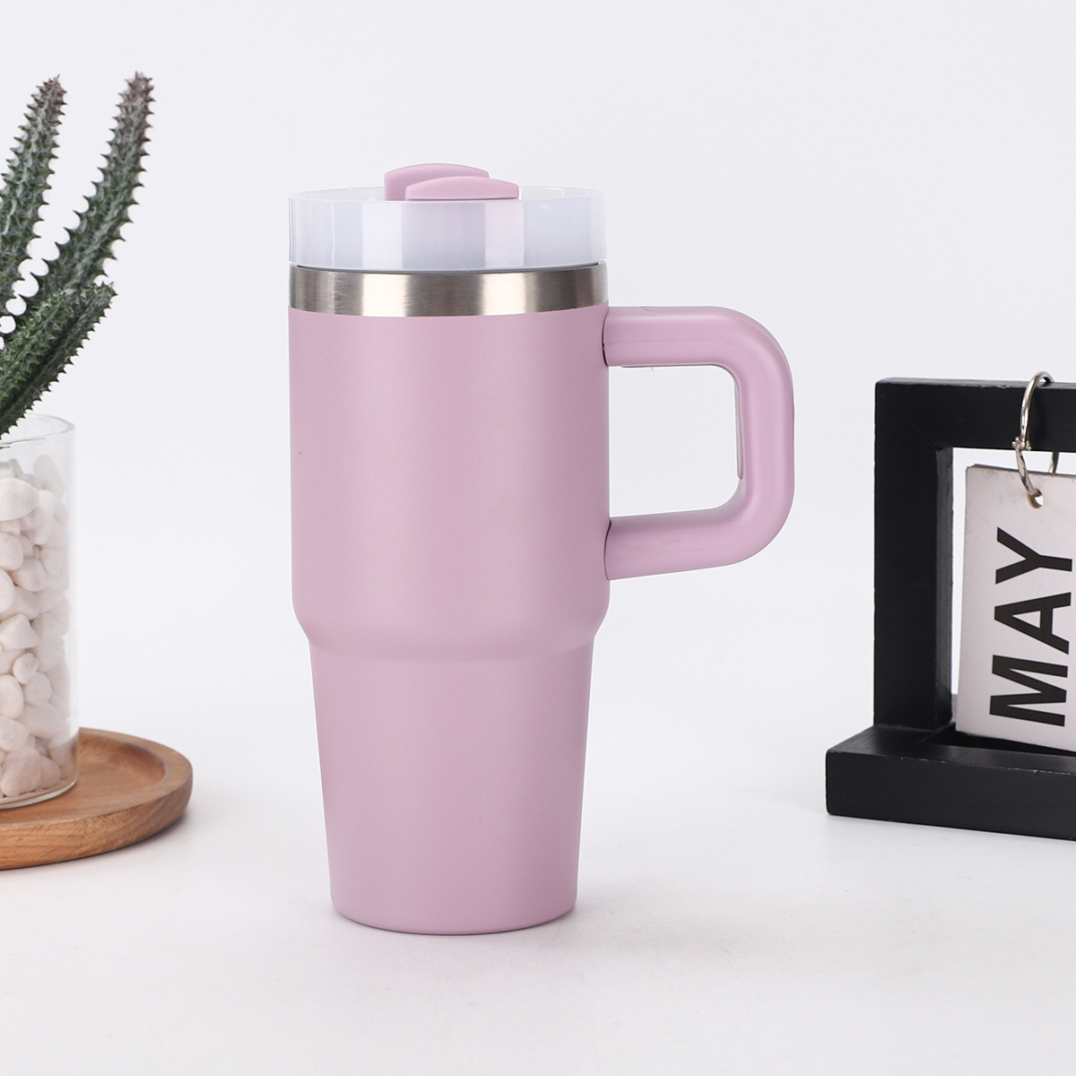 跨境爆款便携车载汽车杯14oz吸管冰霸杯手柄杯不锈钢保温杯批发