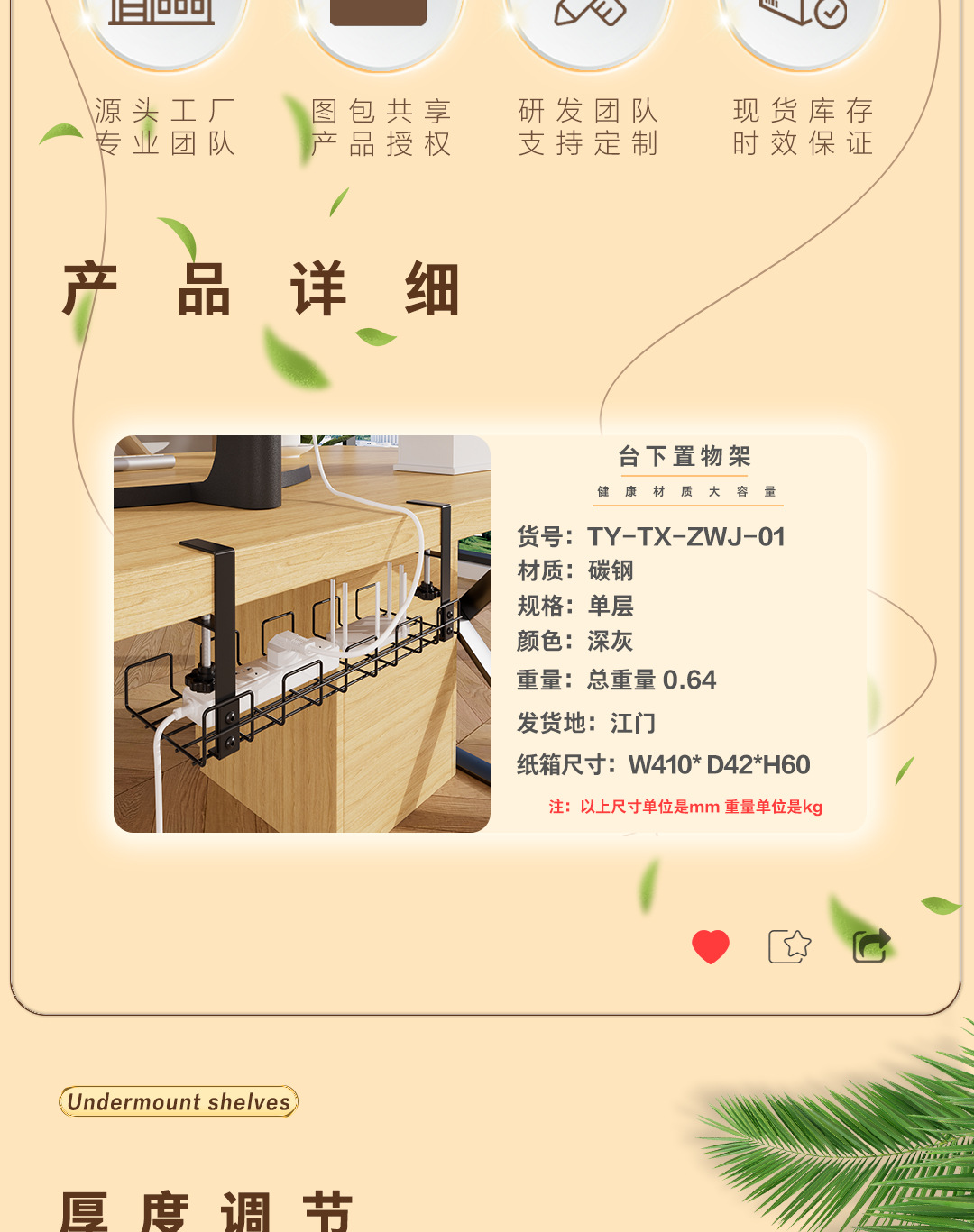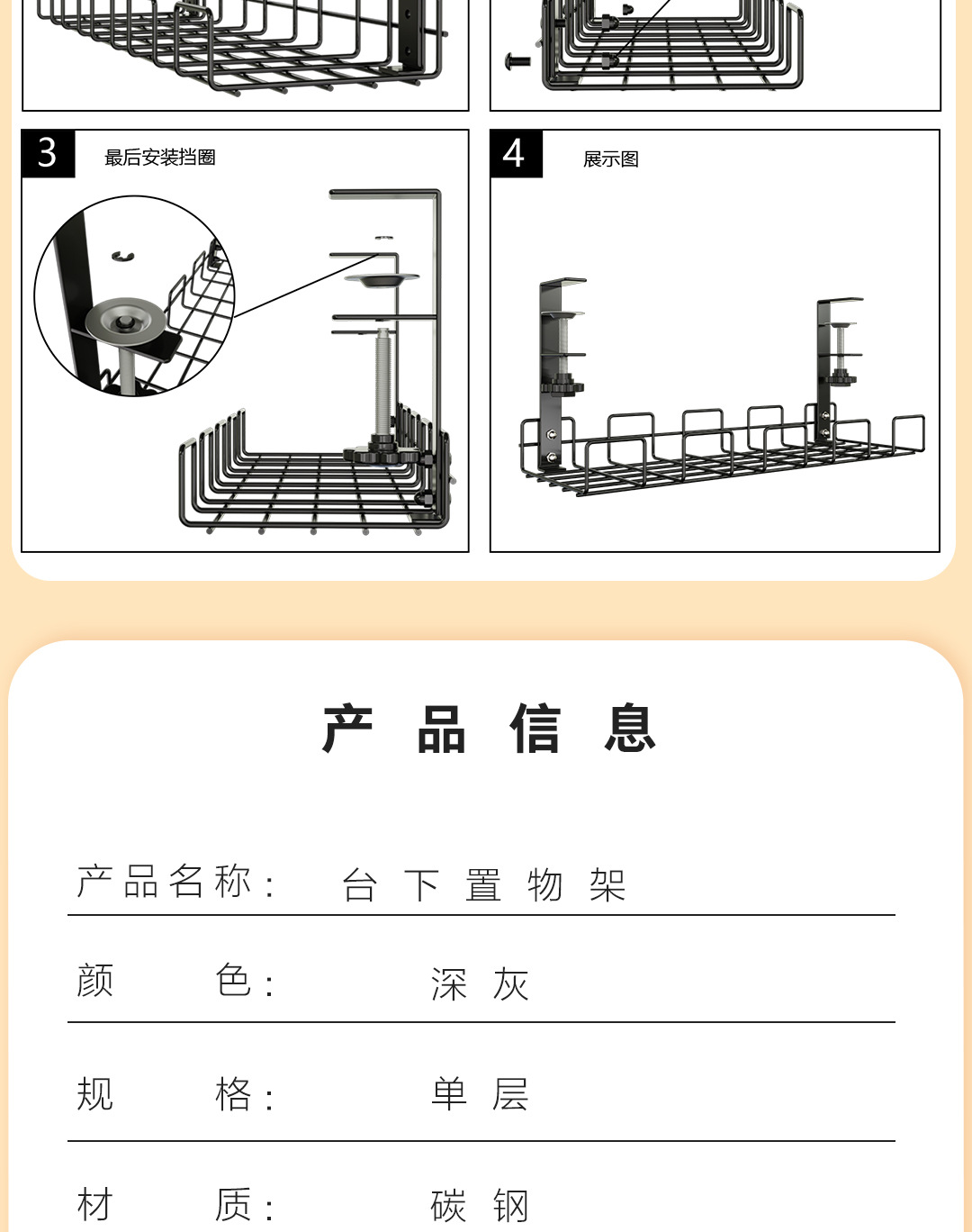 办公室桌下置物架工位收纳神器桌底桌边柜悬挂免打孔整理书桌改造