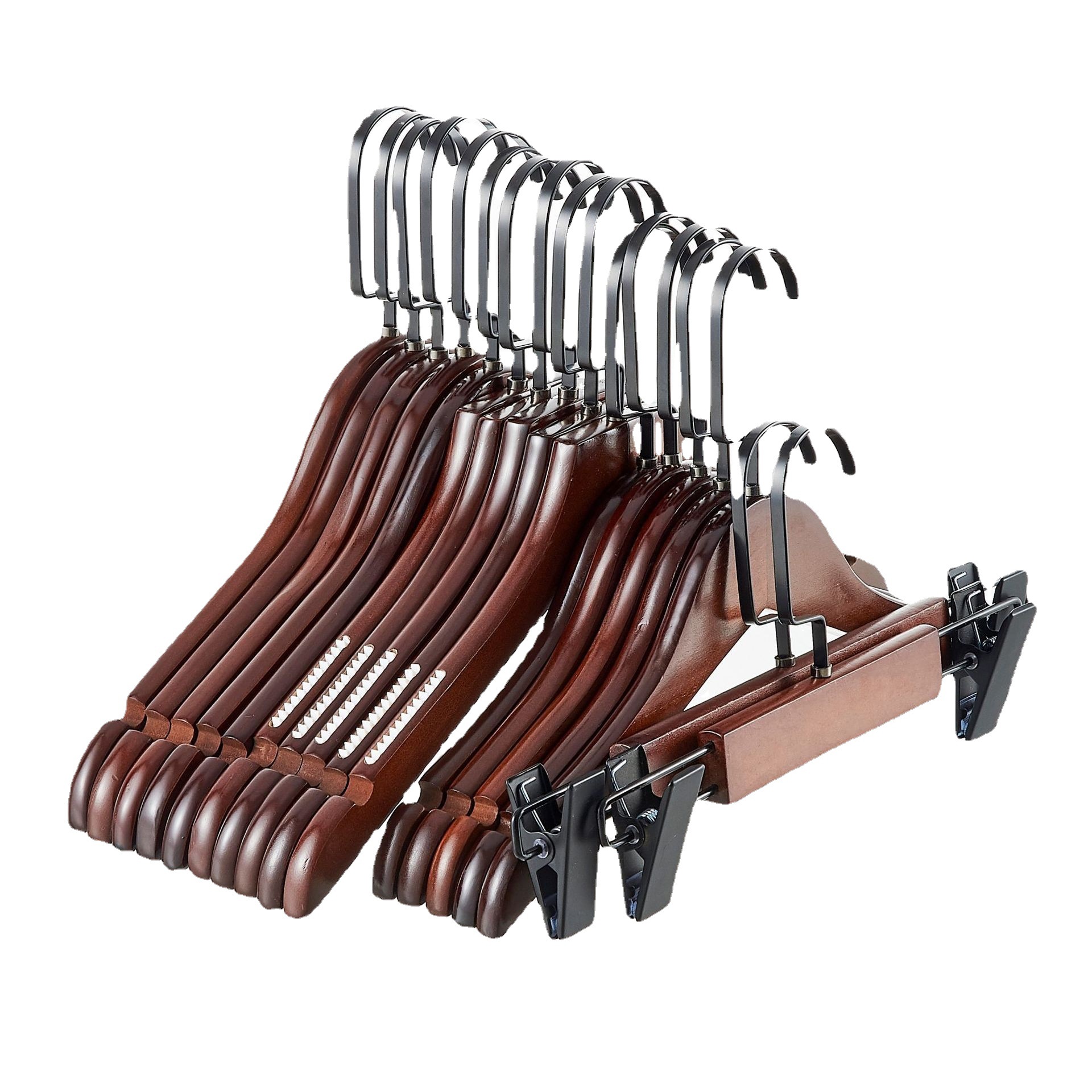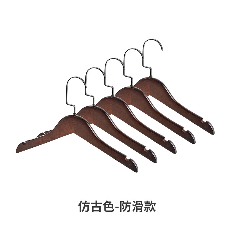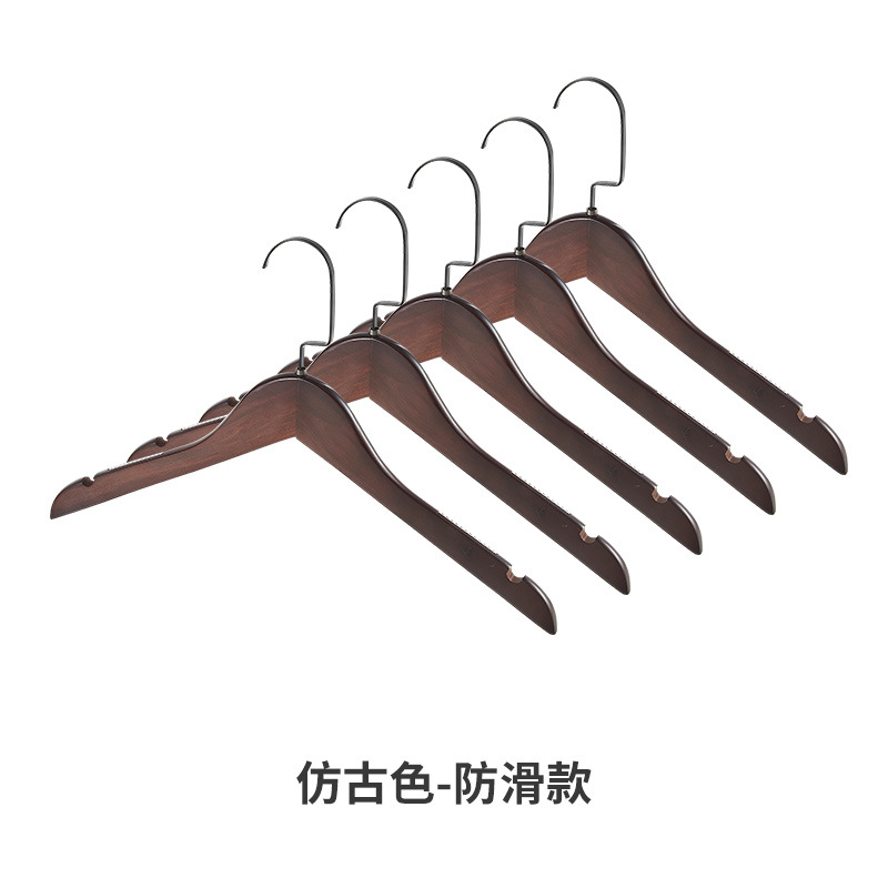 复古实木衣架服装店女装店裤架无痕防滑衣撑童装店衣挂裤夹子批发