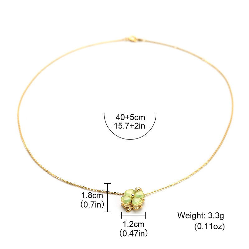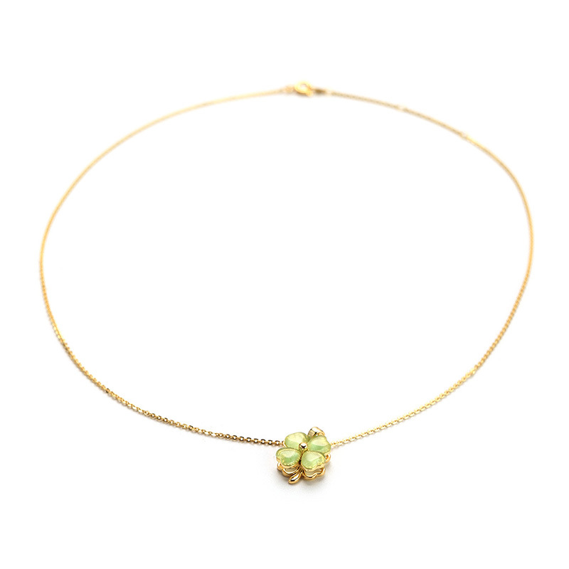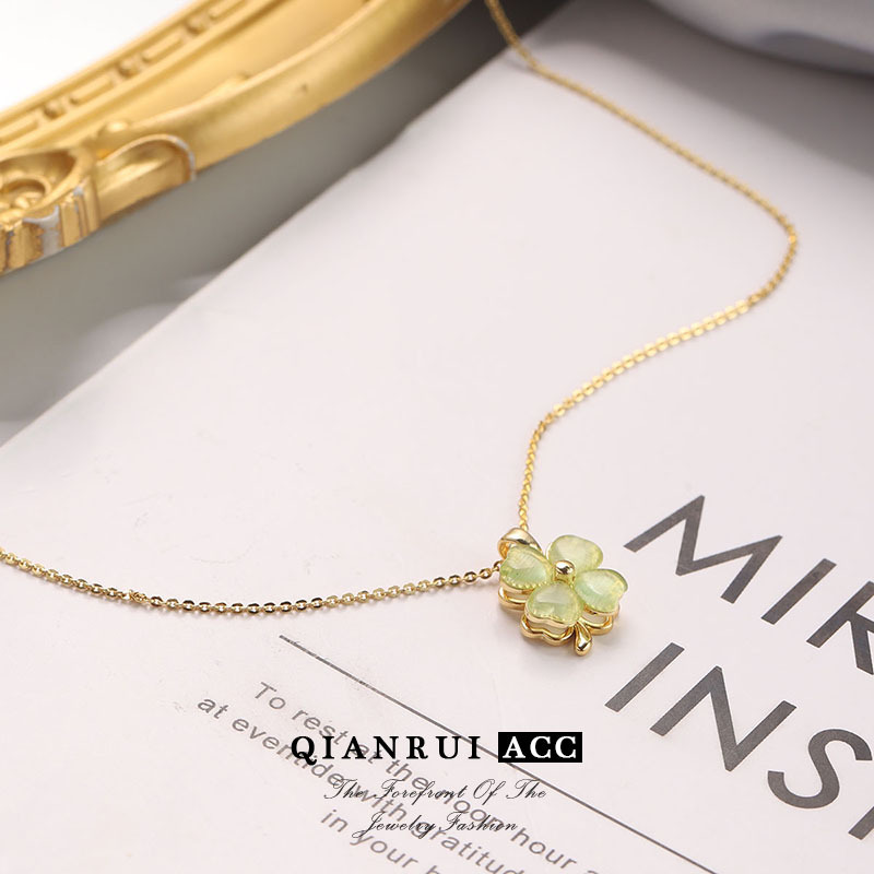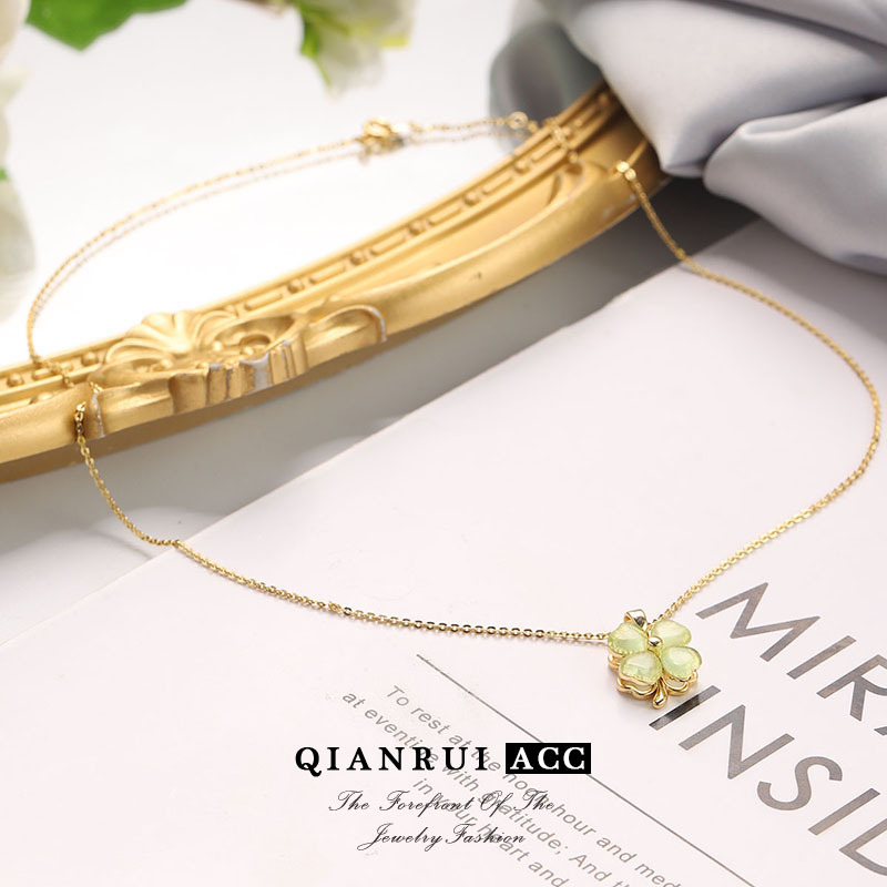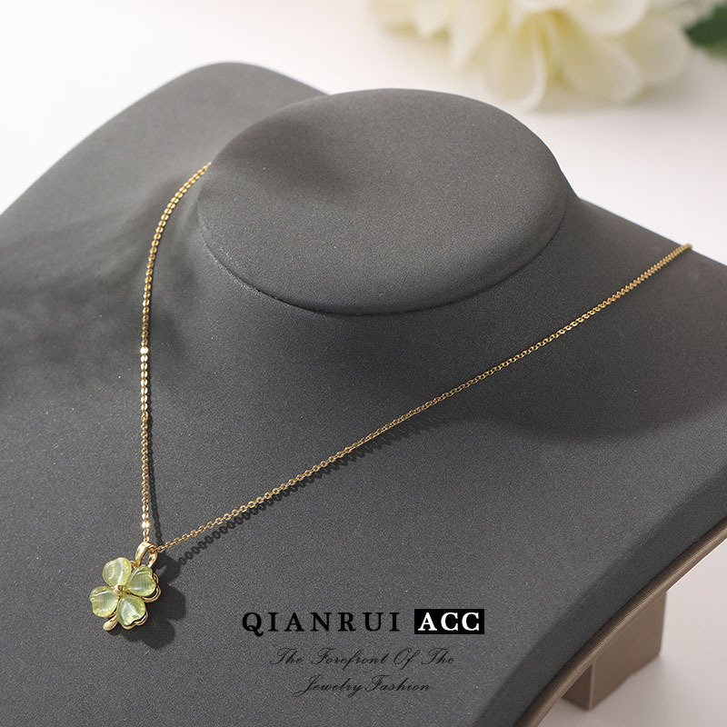 法式轻奢四叶草时尚绿色猫眼石项链网红新款法式优雅小众锁骨链女