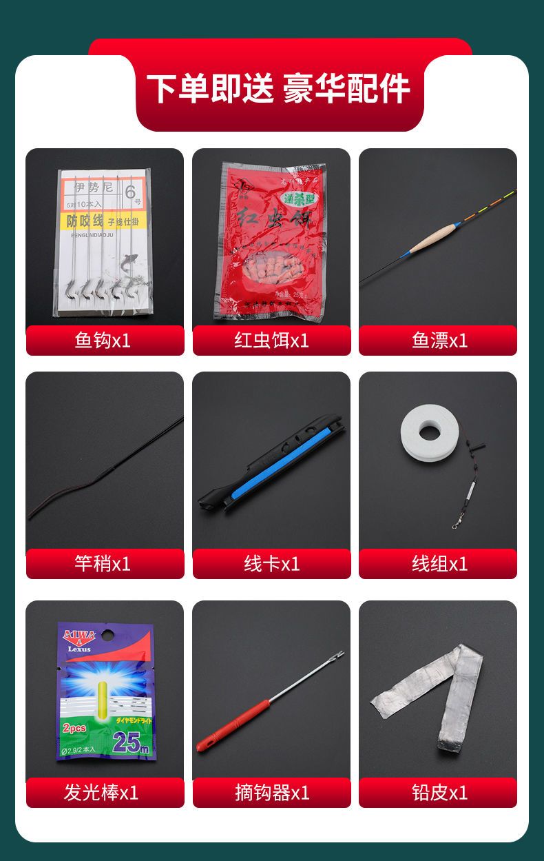 | (single fishing rod) 5.4 m + rod slightly + fishing gift bag((单支鱼竿)5.4米+竿稍+钓鱼礼包) | USD $3.52 | 99999 piece available |