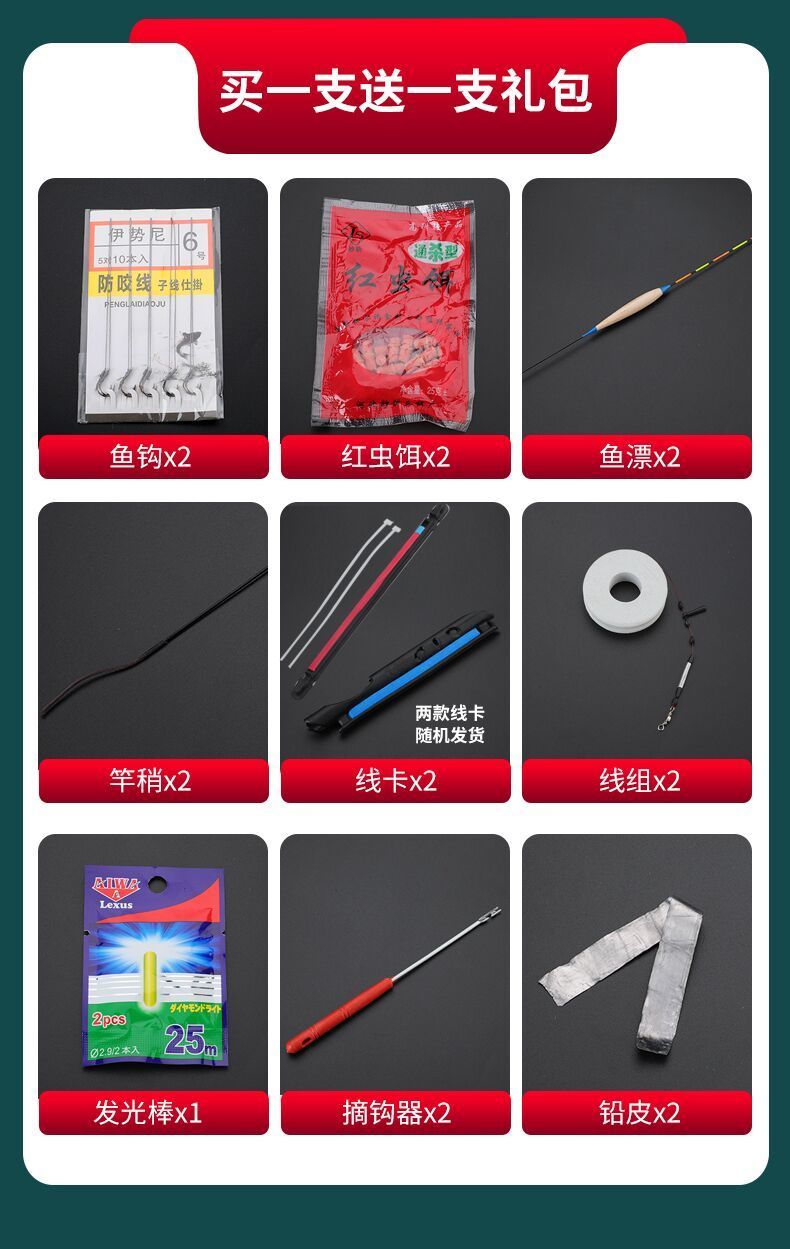| (single fishing rod) 6.3 m + rod slightly + fishing gift bag((单支鱼竿)6.3米+竿稍+钓鱼礼包) | USD $4.27 | 99999 piece available |
