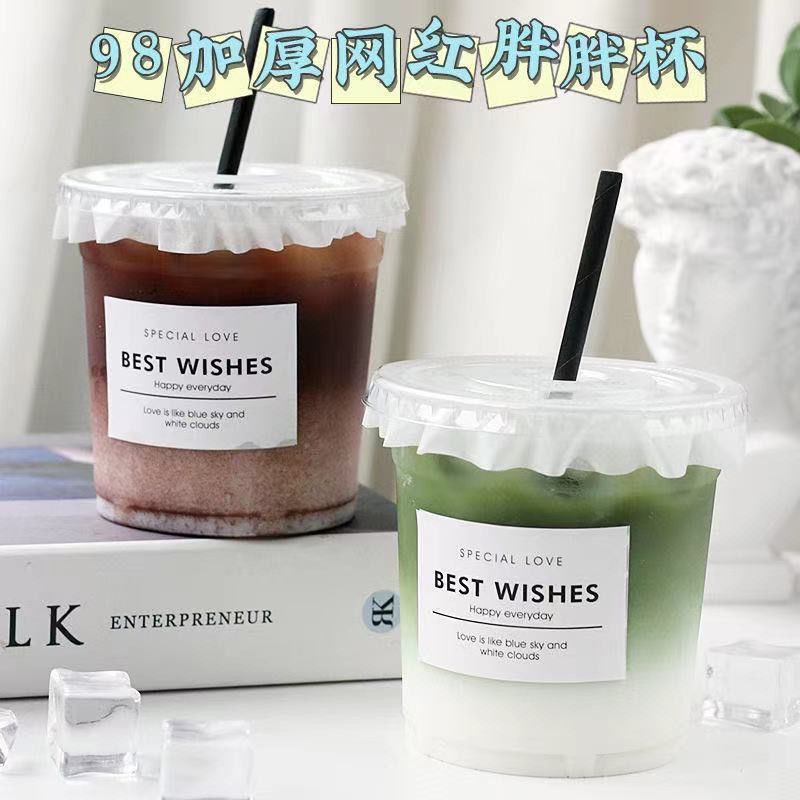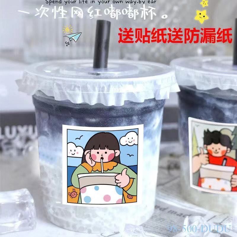 ins高颜值一次性塑料奶茶杯网红嘟嘟杯PET咖啡杯子带盖冷饮外卖杯