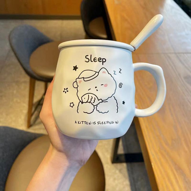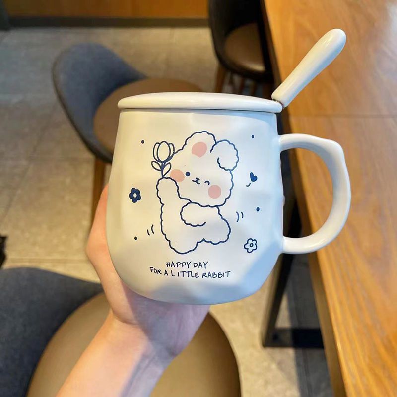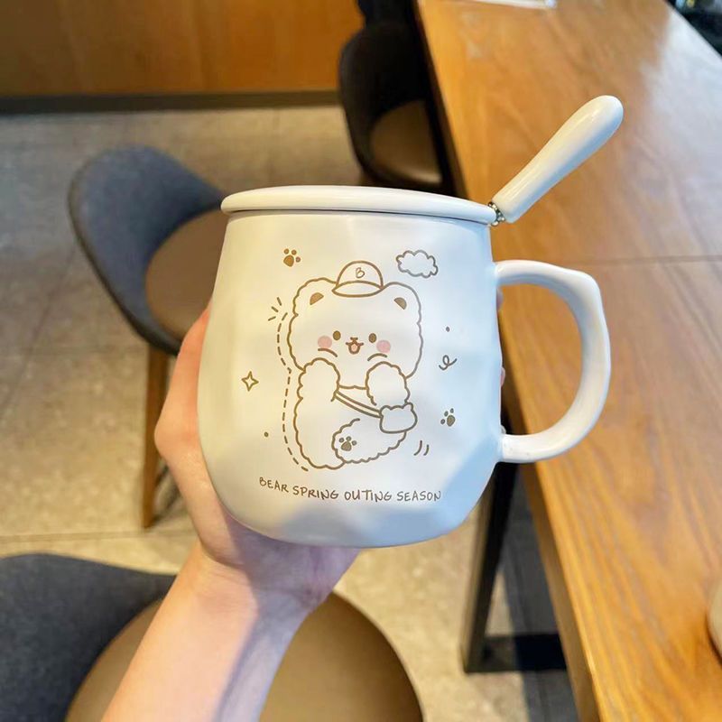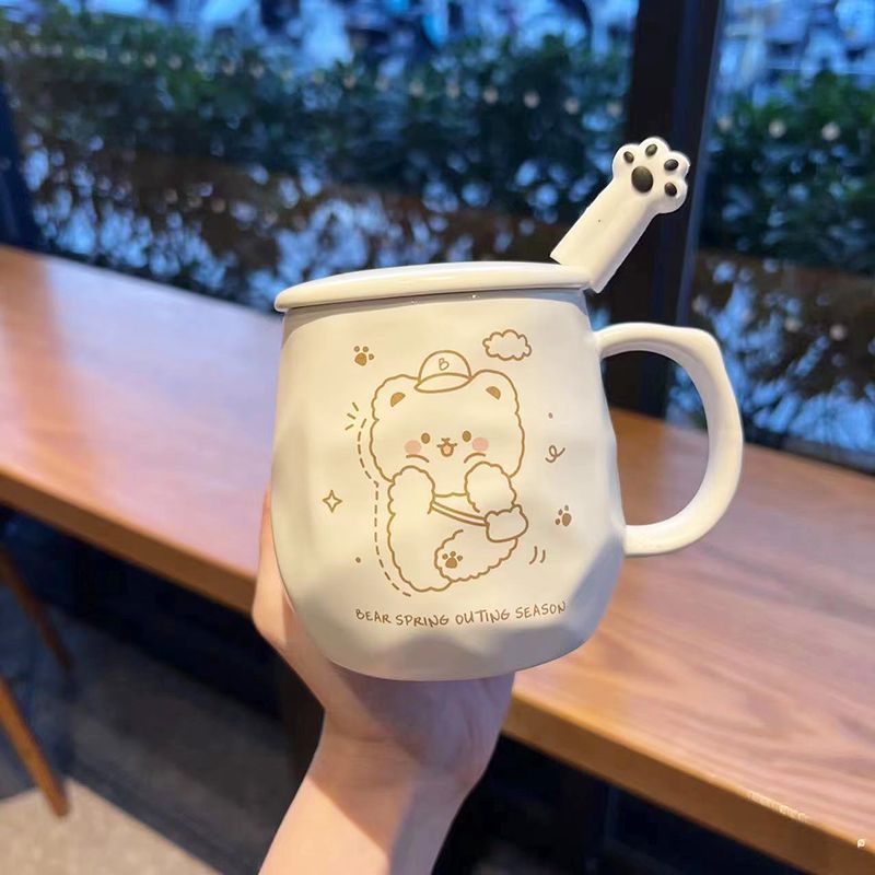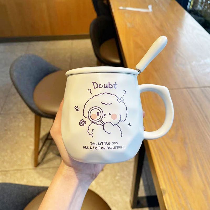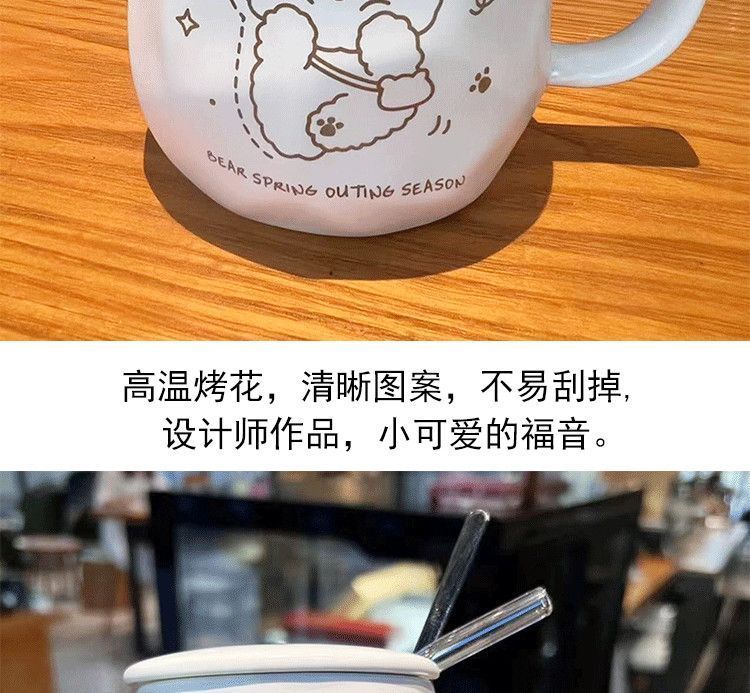 马克杯带盖勺耐热玻璃杯子女家用情侣水杯男高颜值办公室早餐咖啡