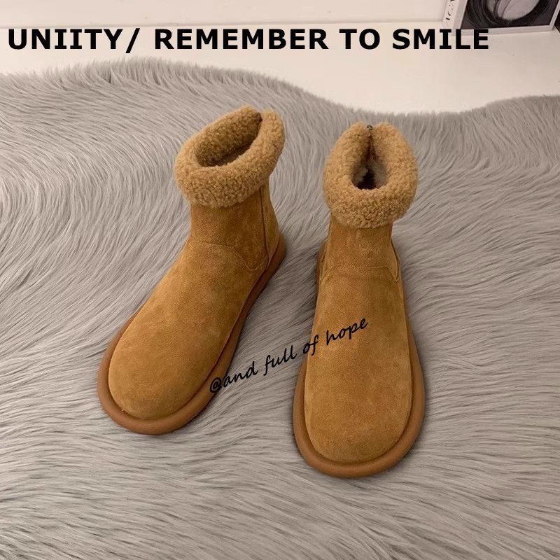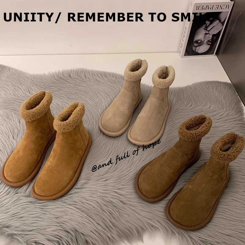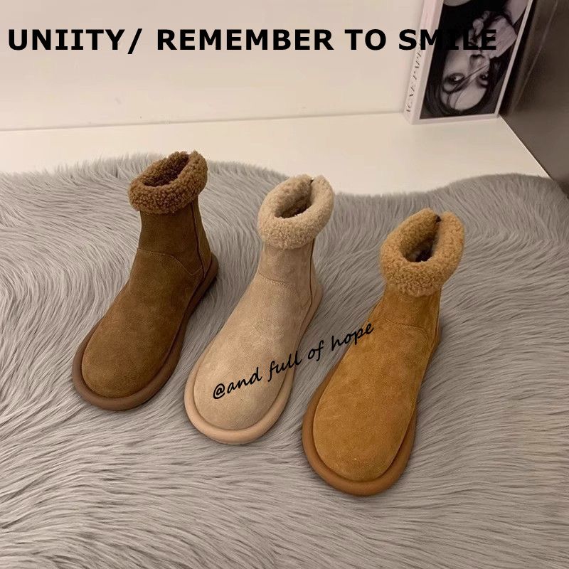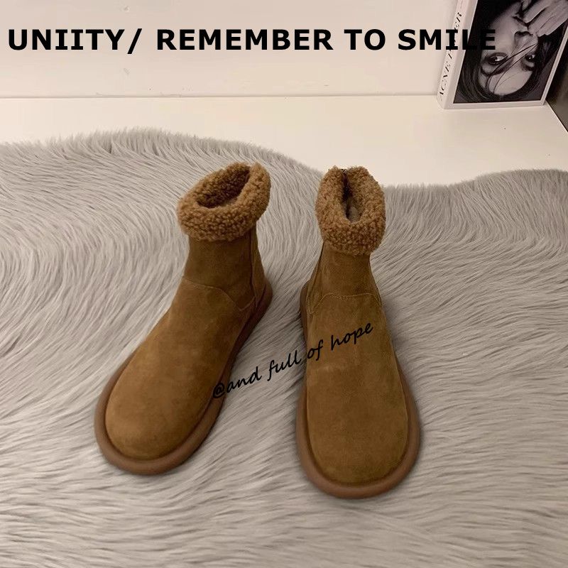 2024冬季新款保暖加绒棉靴百搭复古厚底女靴子毛毛短靴森系雪地靴