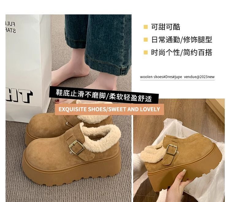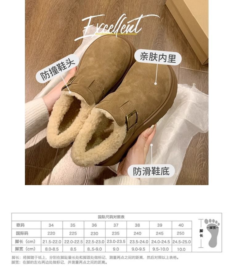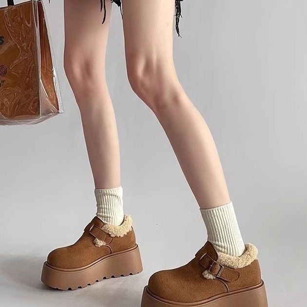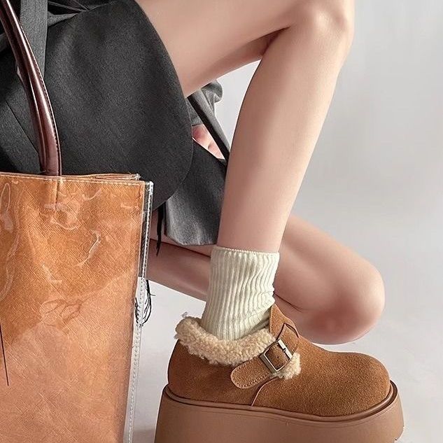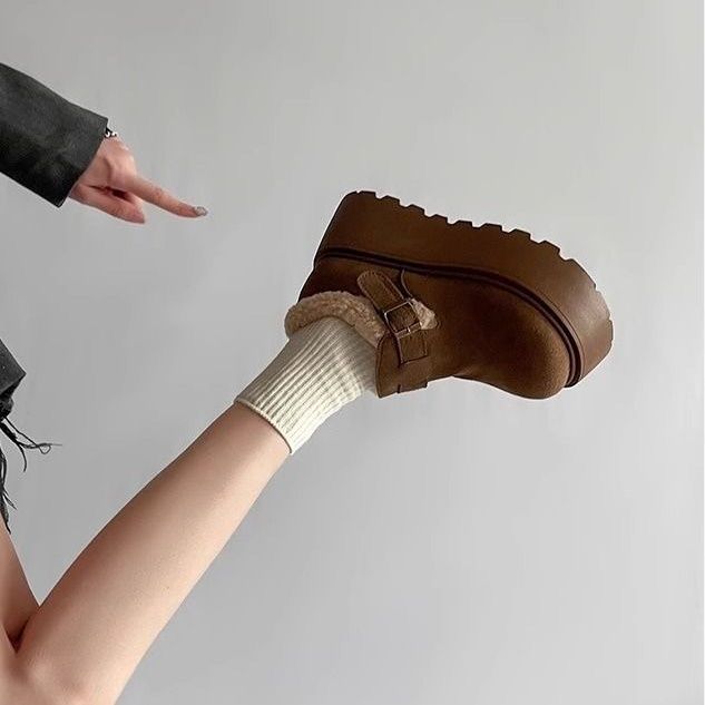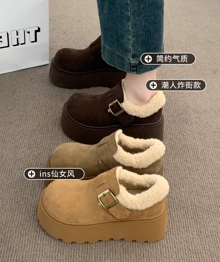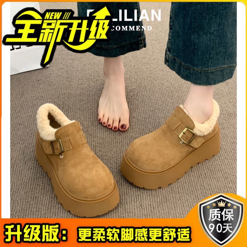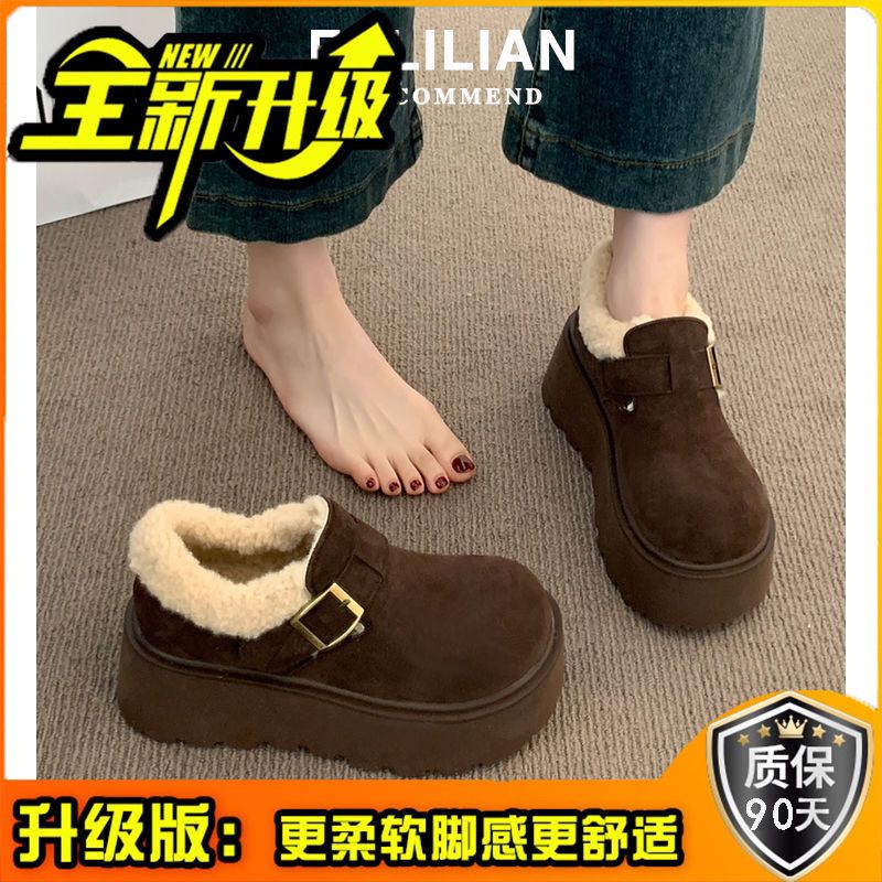 网红复古厚底棉鞋女款2024新款冬季加绒加厚保暖勃肯毛毛鞋子