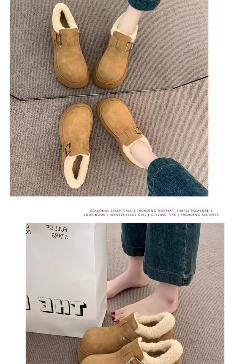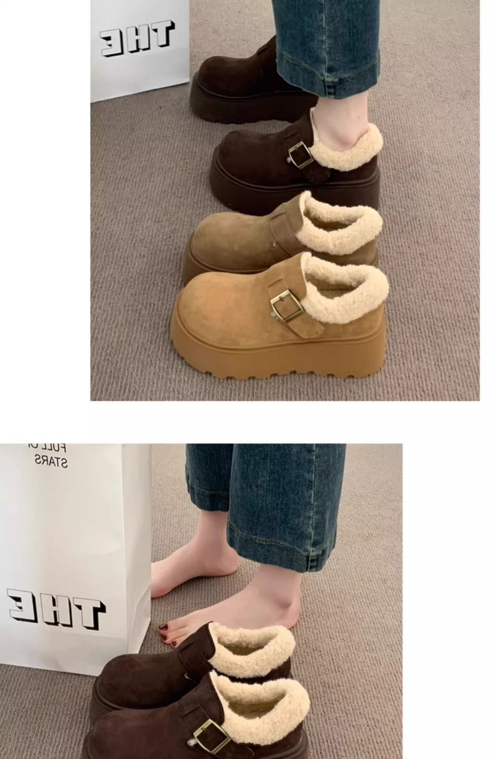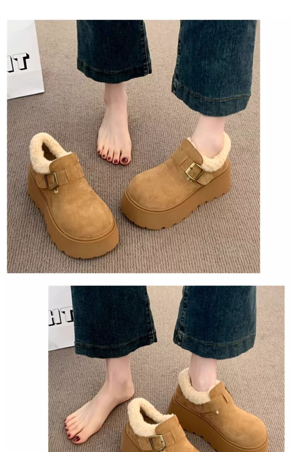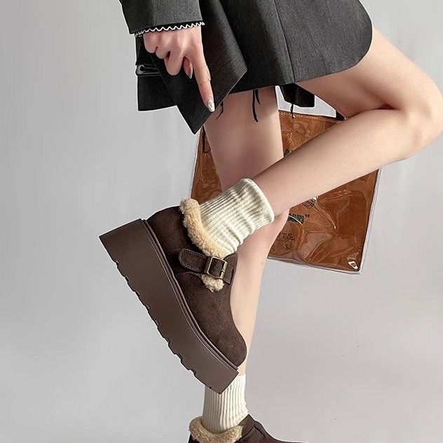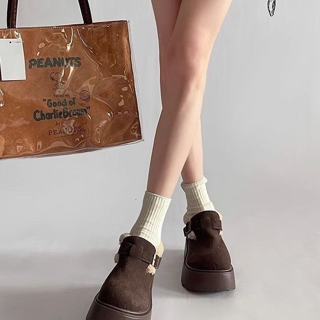 网红复古厚底棉鞋女款2024新款冬季加绒加厚保暖勃肯毛毛鞋子
