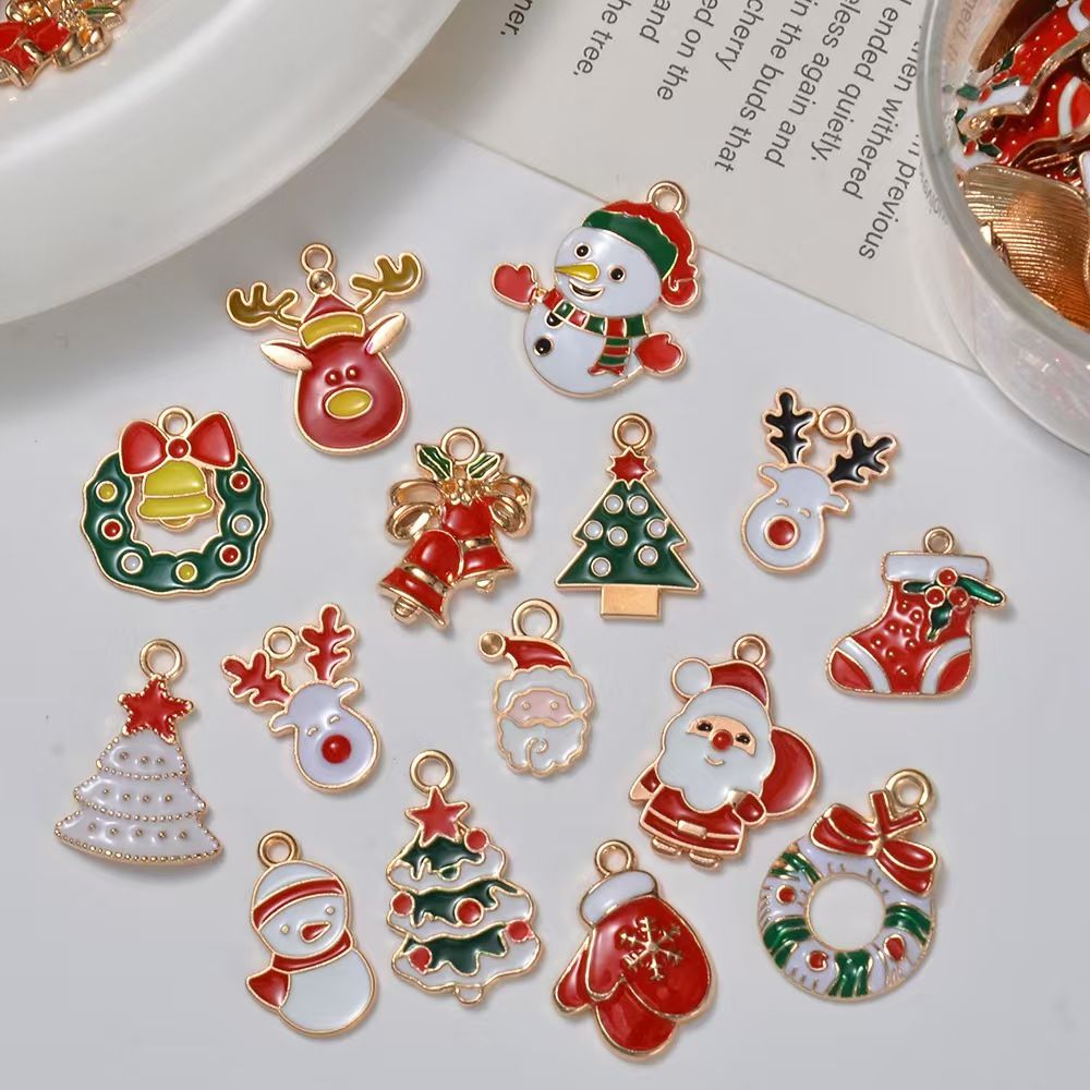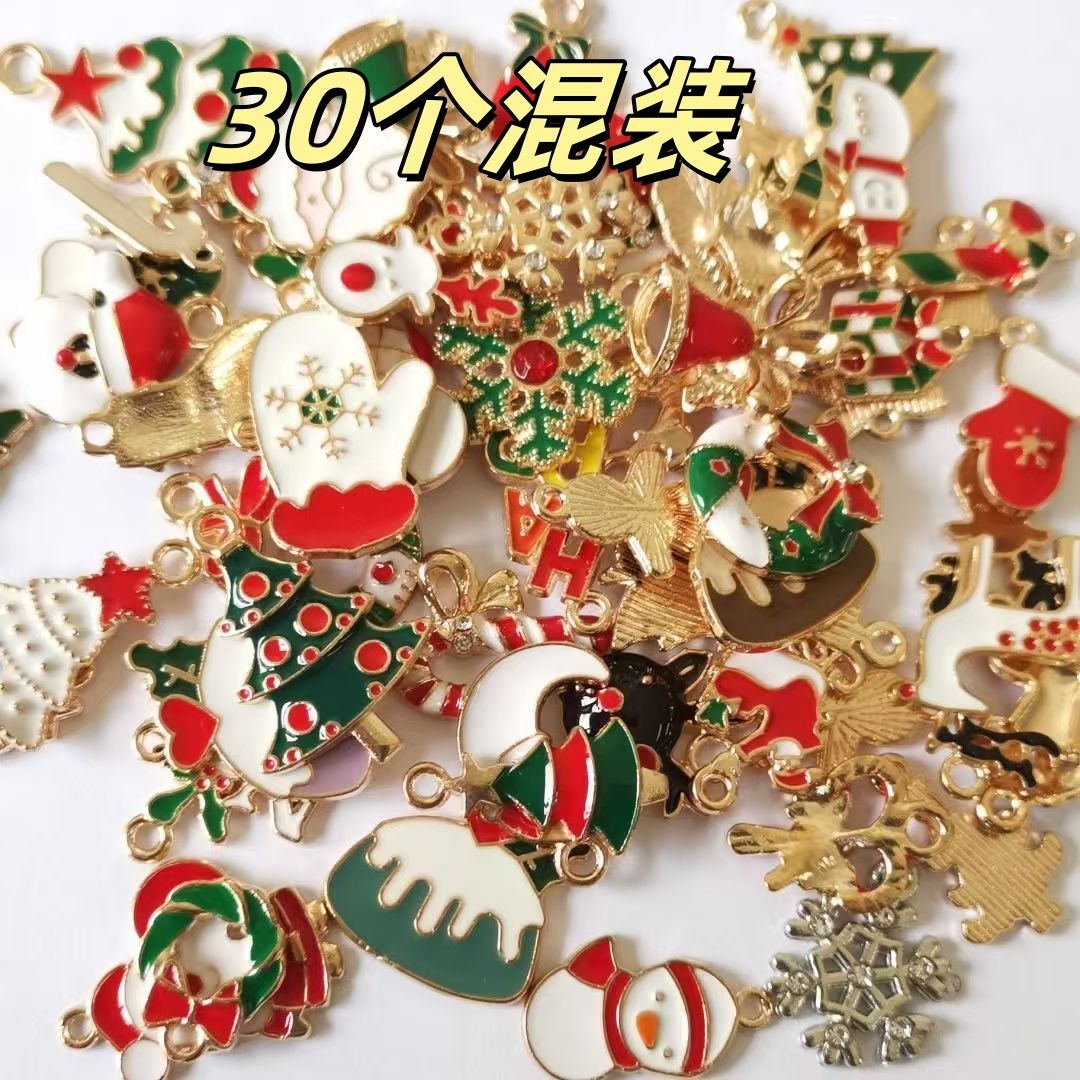 圣诞节装饰滴油合金饰品手链耳环挂坠diy圣诞吊坠雪花圣诞小挂件