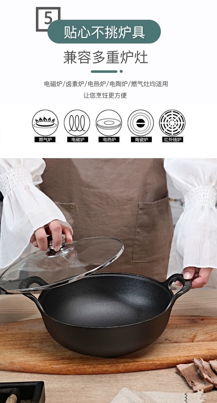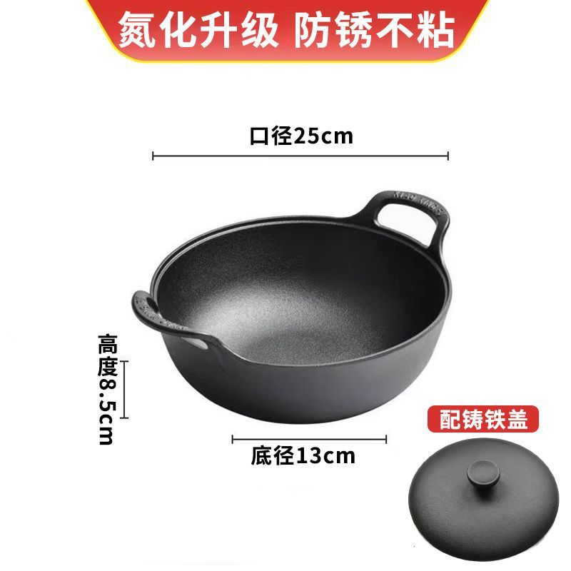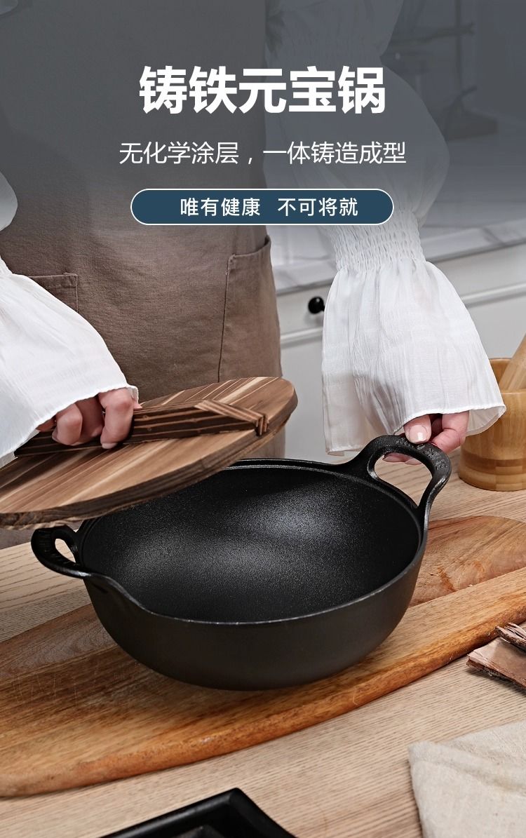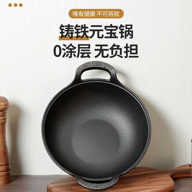 老式铸铁锅炒锅家用元宝锅无涂层煎炒炖炸多用锅电磁炉燃气灶通用