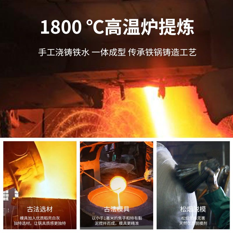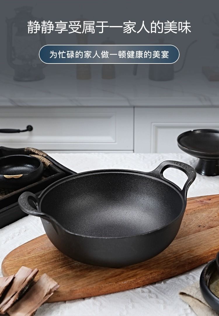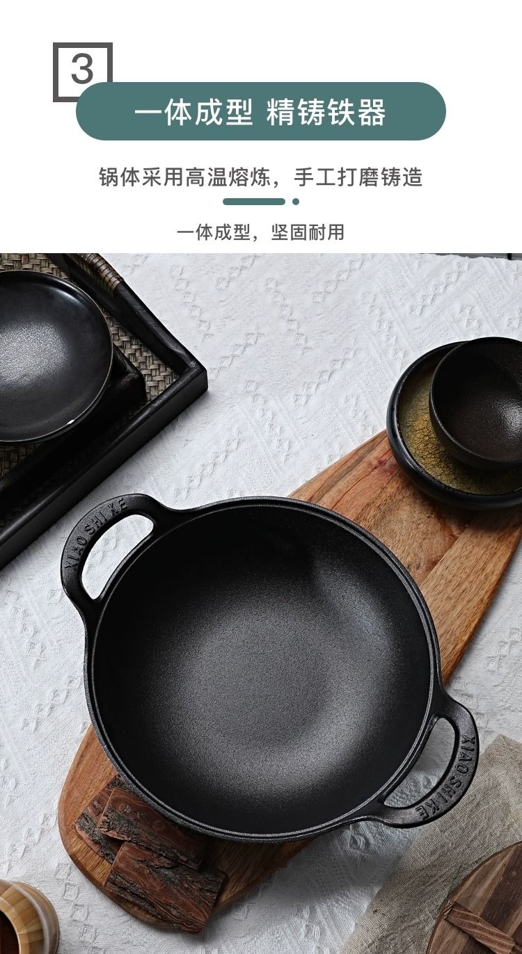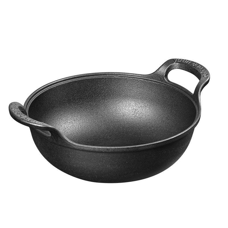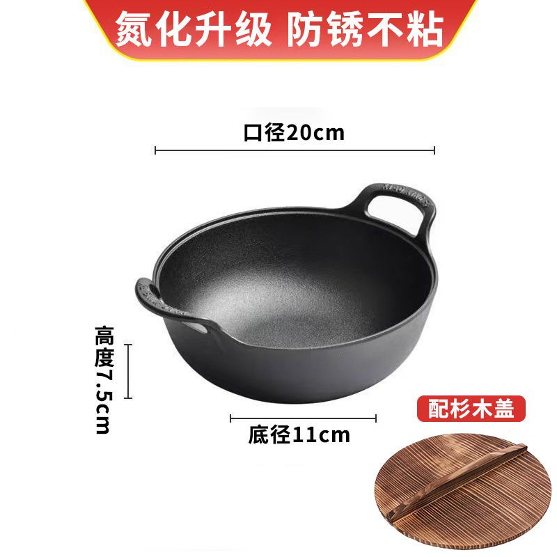 老式铸铁锅炒锅家用元宝锅无涂层煎炒炖炸多用锅电磁炉燃气灶通用