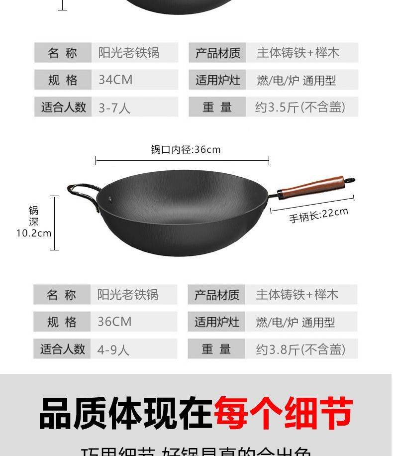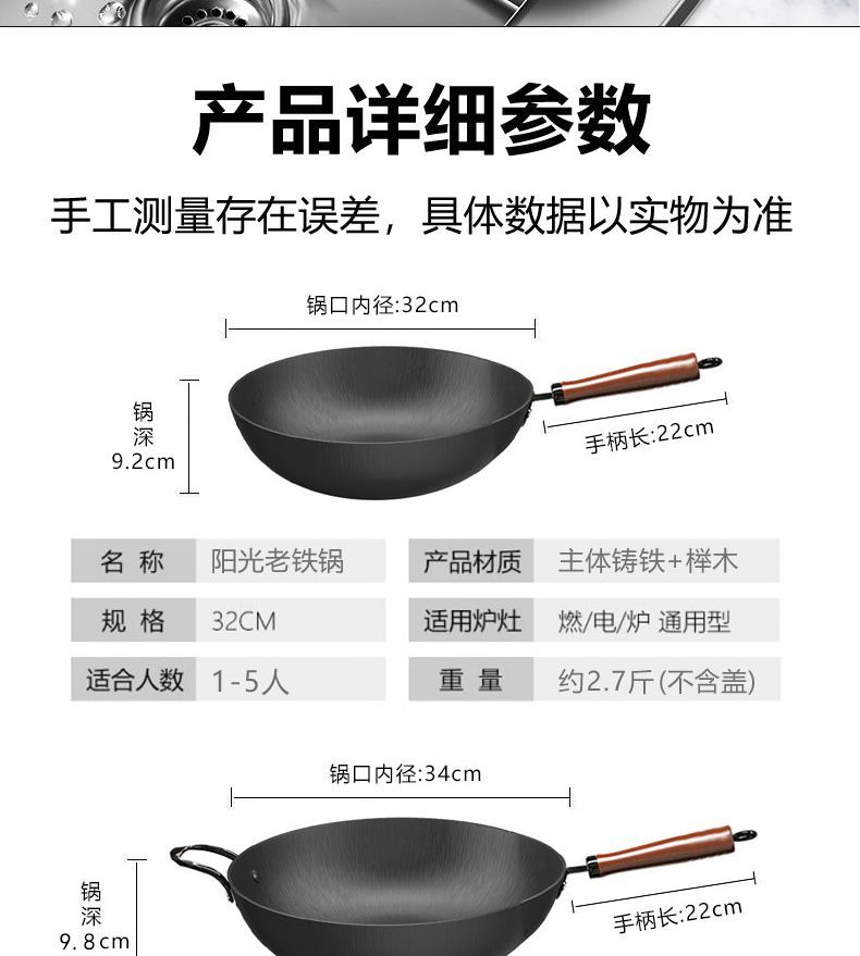 | old-fashioned cast iron pot [34 without lid] uncoated + gifts(老式铸铁锅【34无盖】无涂层+有赠品) | USD $12.93 | 99999 piece available |