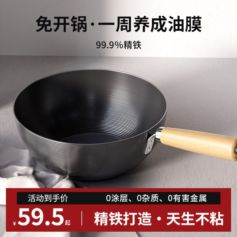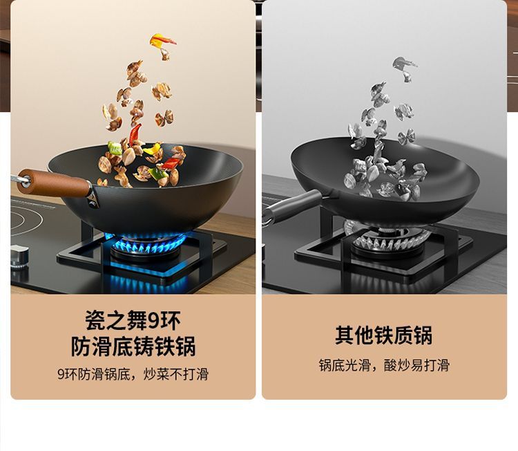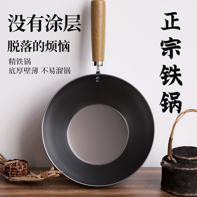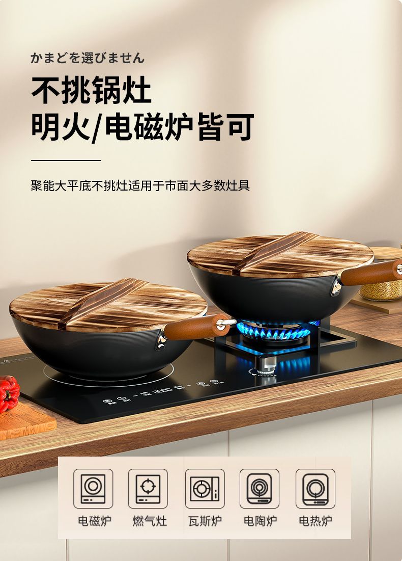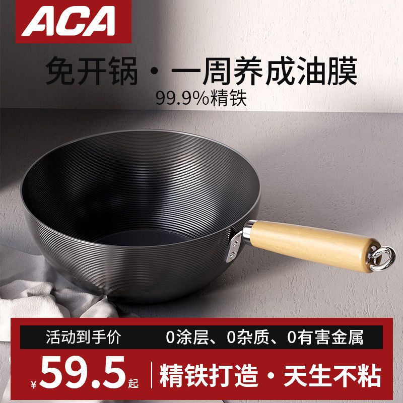 ACA极铁平底炒锅无涂层不粘锅煎炒多功能平底锅燃气灶电磁炉通用