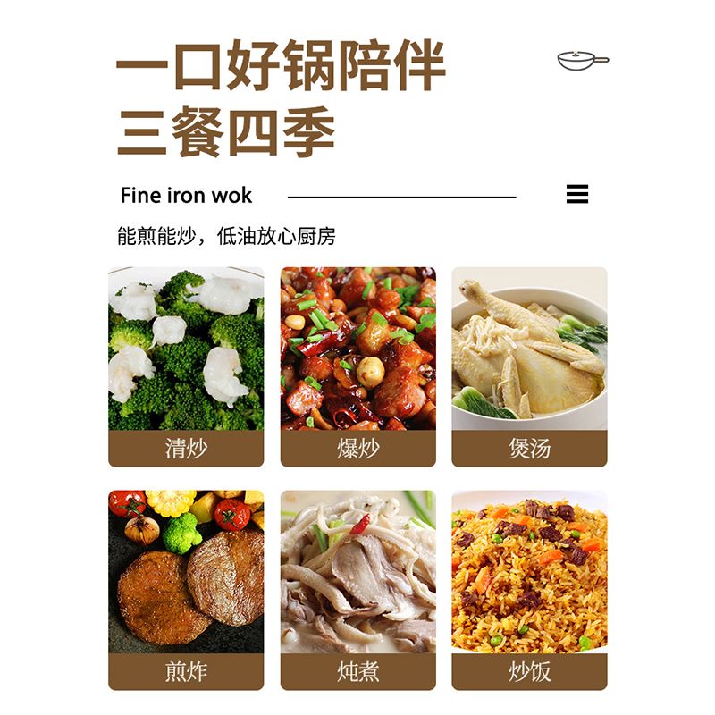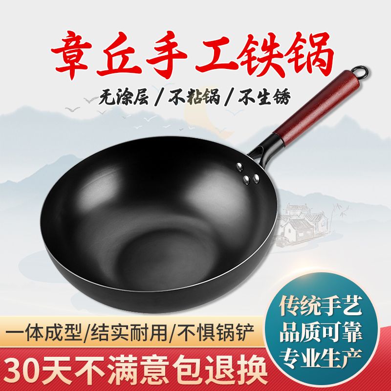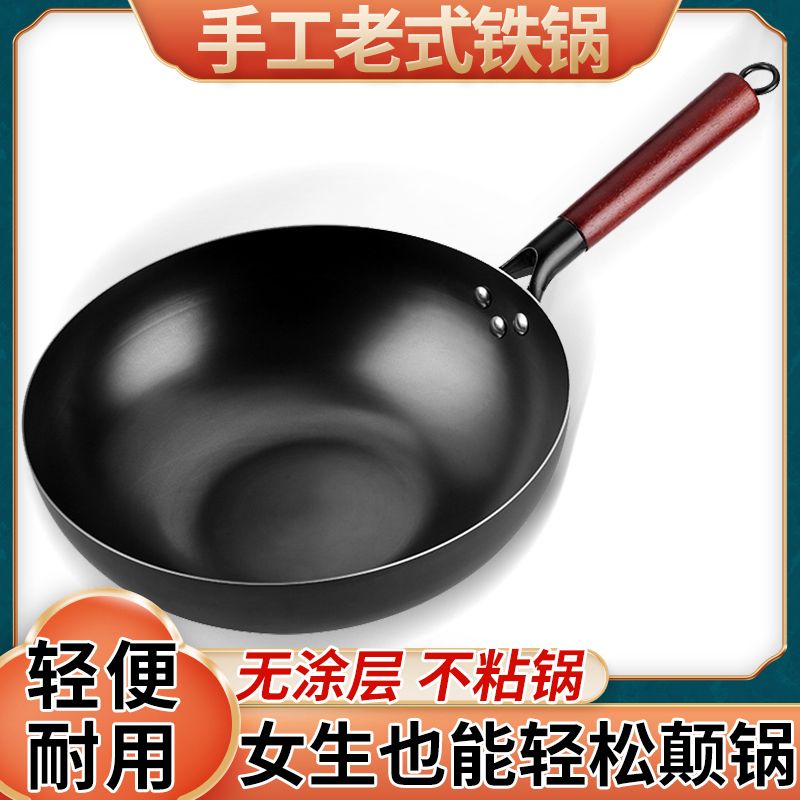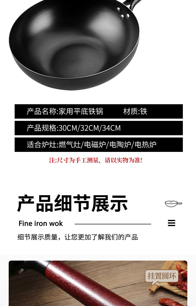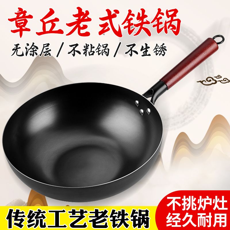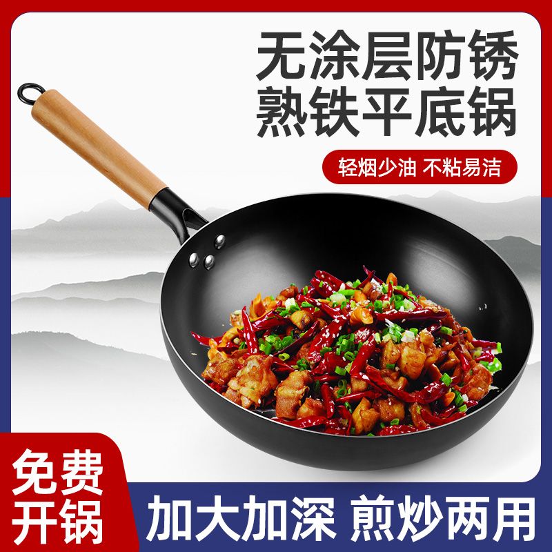 章丘炒菜锅无涂层手工锻打平底铁锅家用燃气电磁炉专用不粘锅铁锅