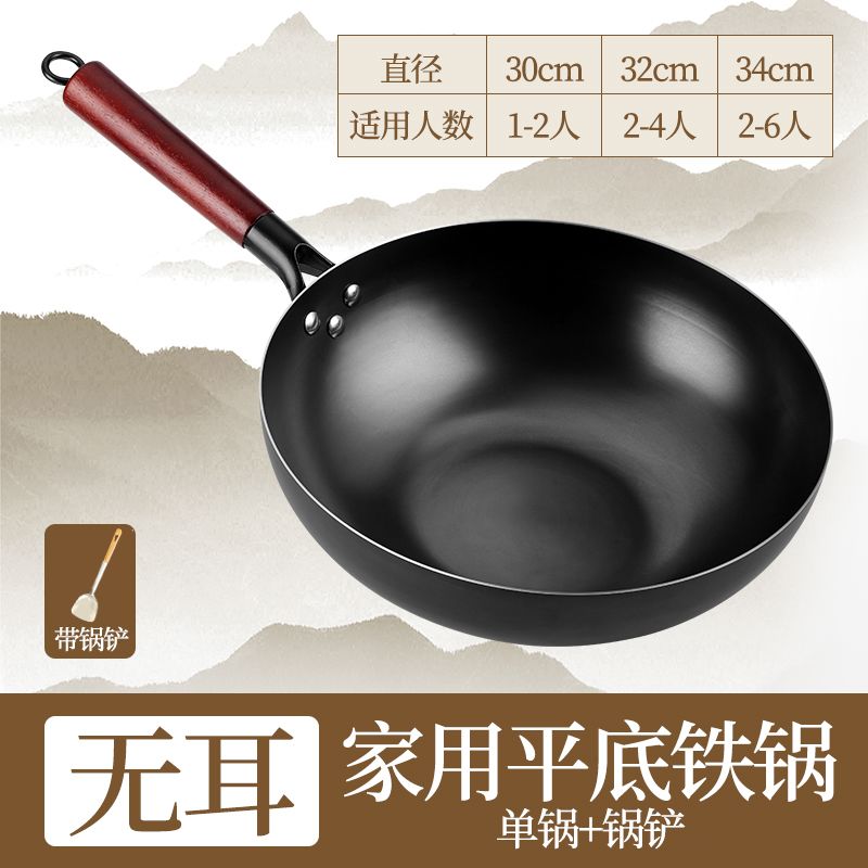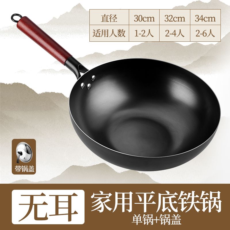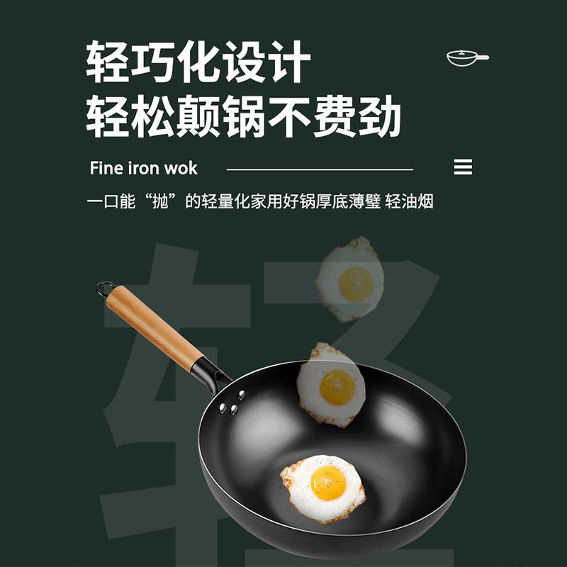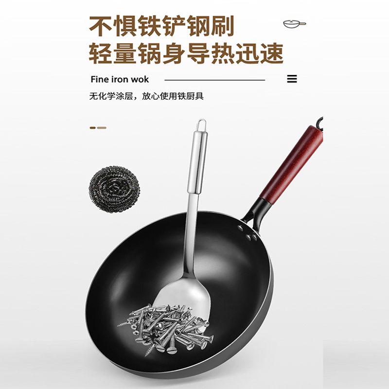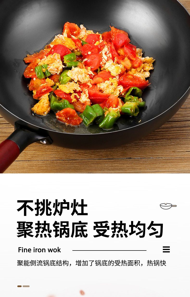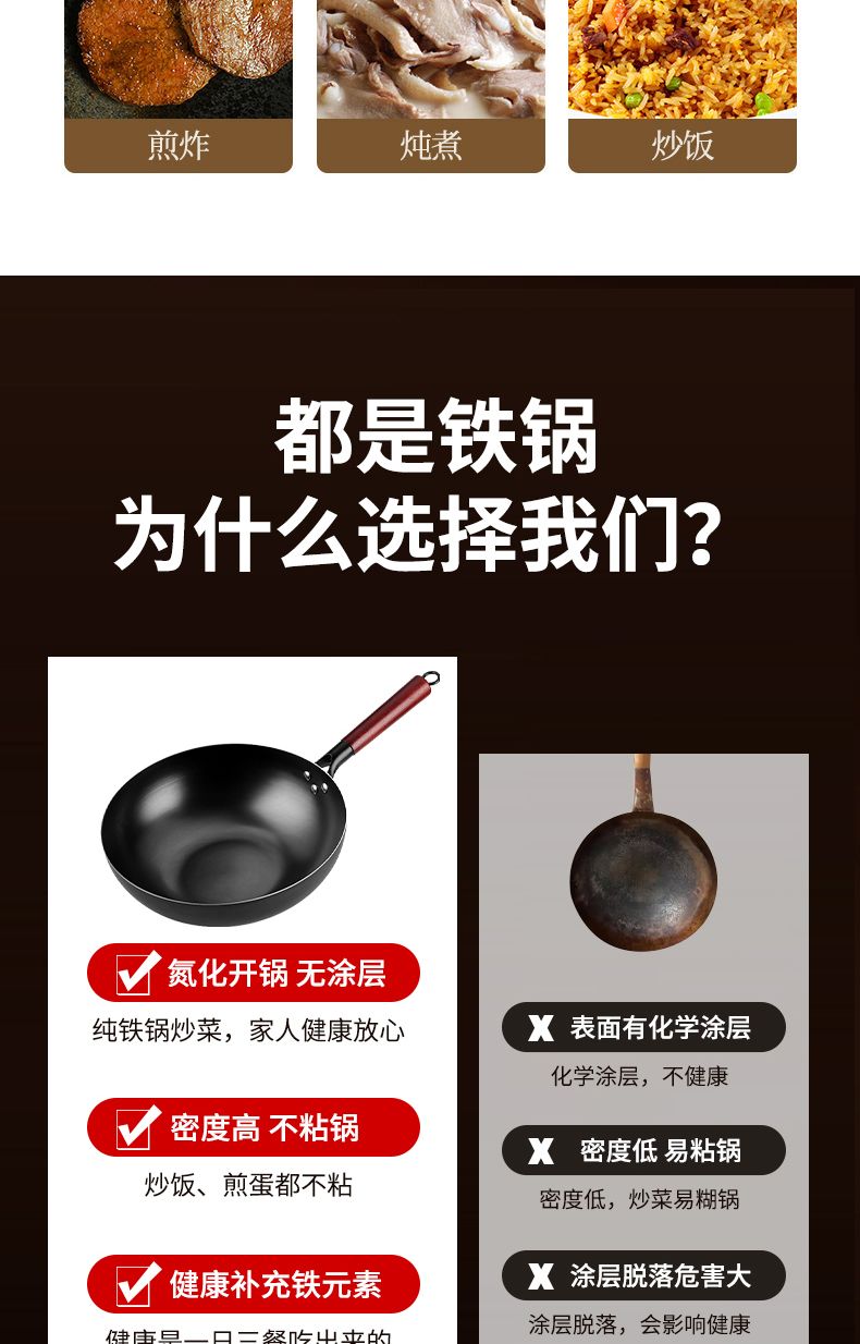 章丘炒菜锅无涂层手工锻打平底铁锅家用燃气电磁炉专用不粘锅铁锅
