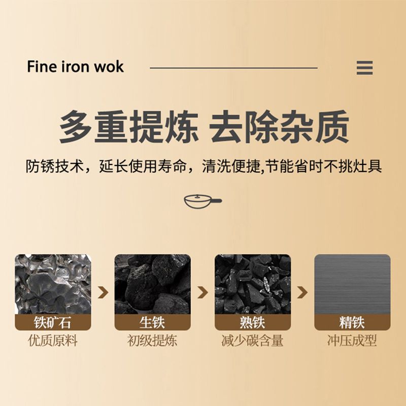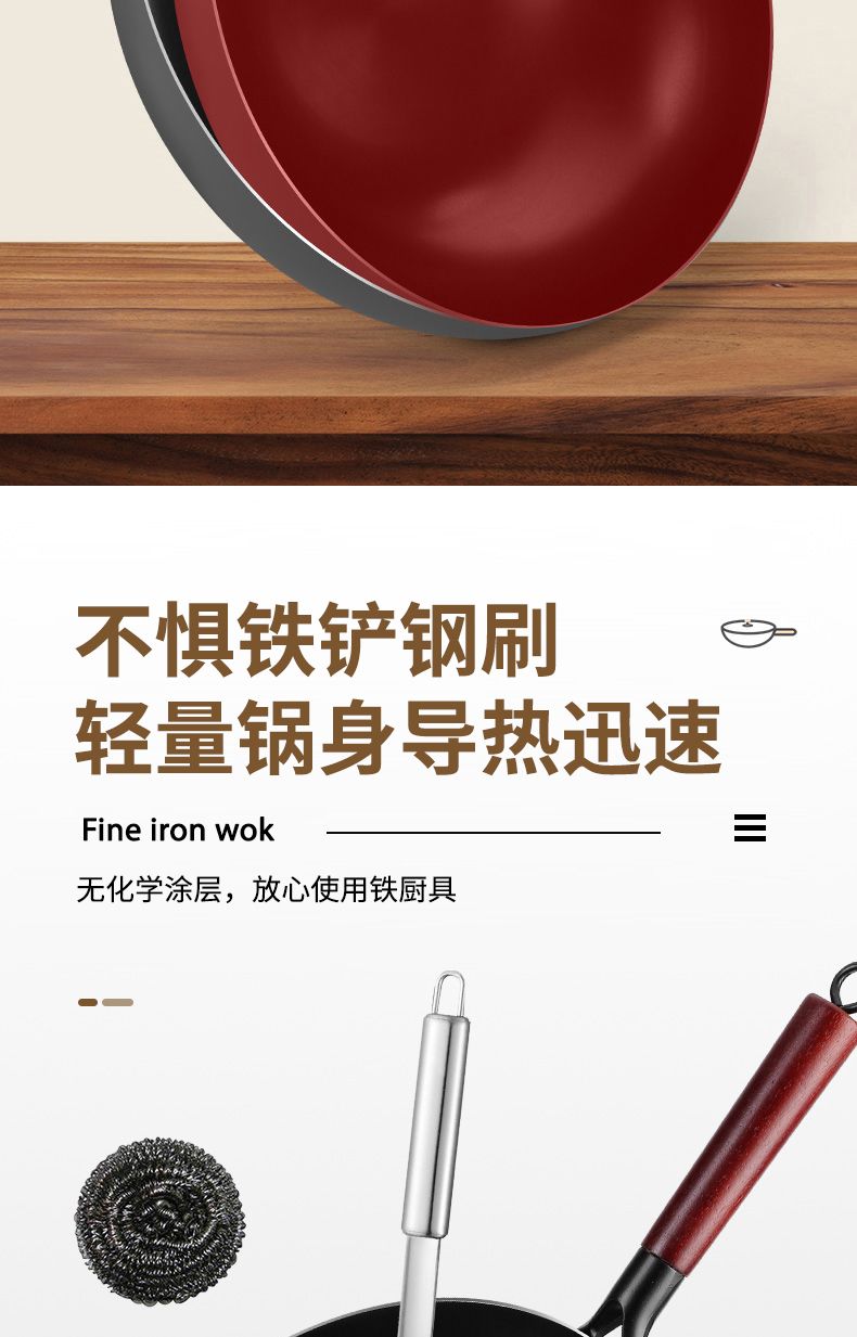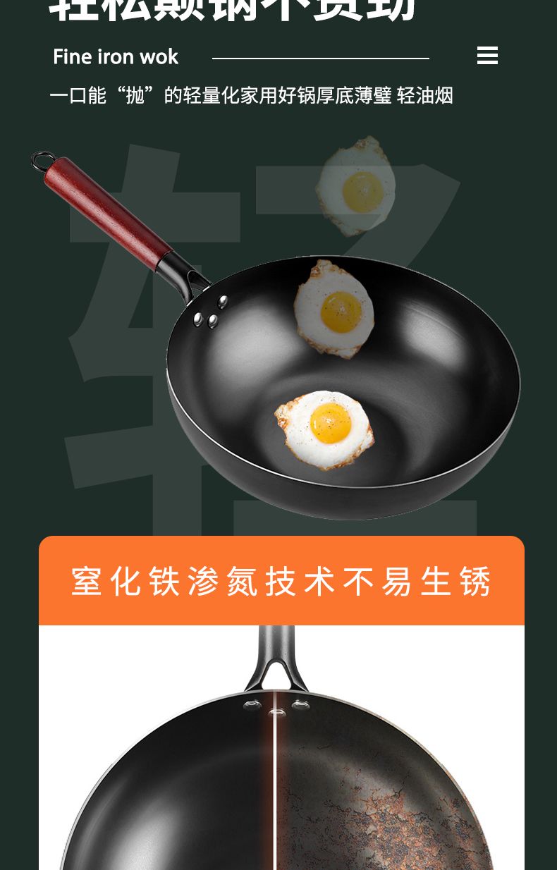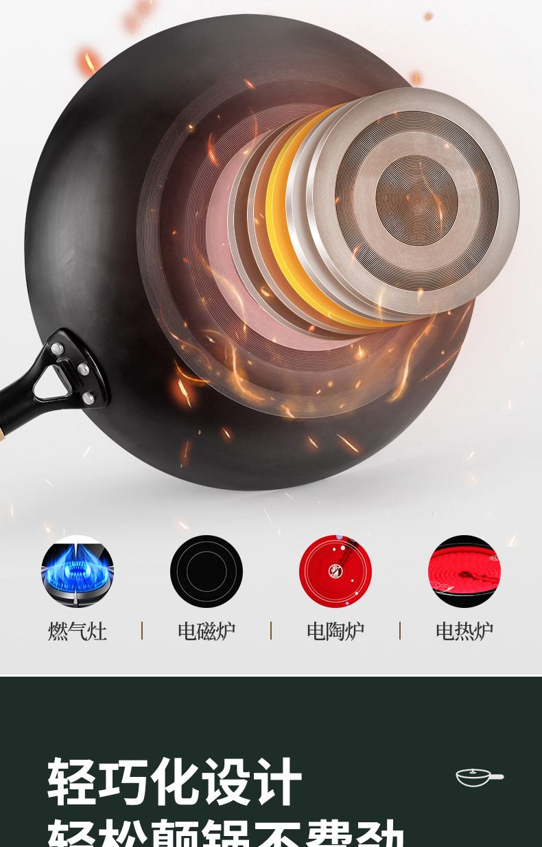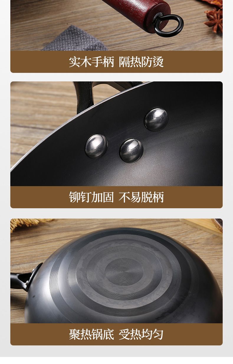 章丘炒菜锅无涂层手工锻打平底铁锅家用燃气电磁炉专用不粘锅铁锅