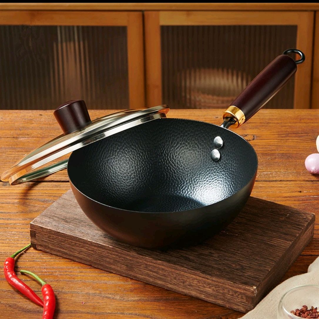 | upgraded nitrided hammer pattern 20cm iron pot with tempered cover get wooden turner free(升级款氮化锤纹二十厘米铁锅带钢化盖送木铲) | USD $9.27 | 99999 piece available |