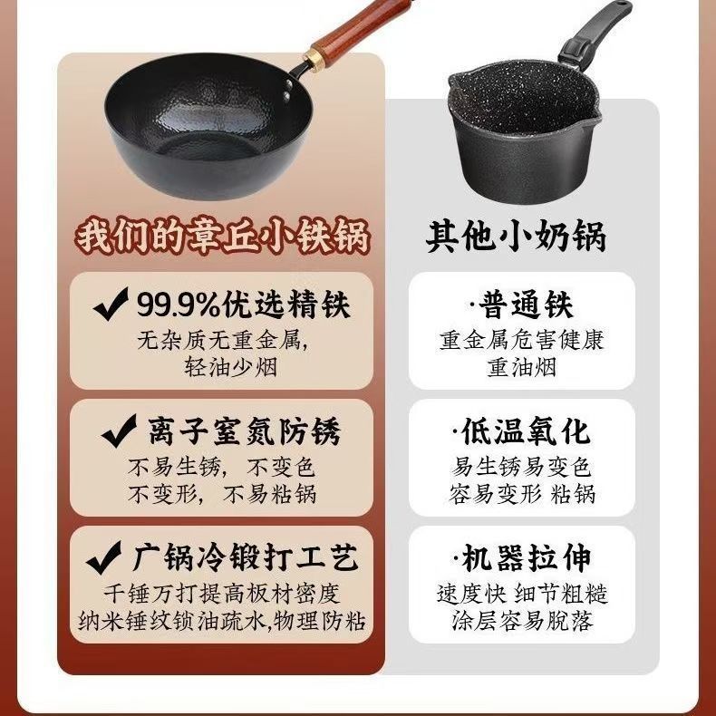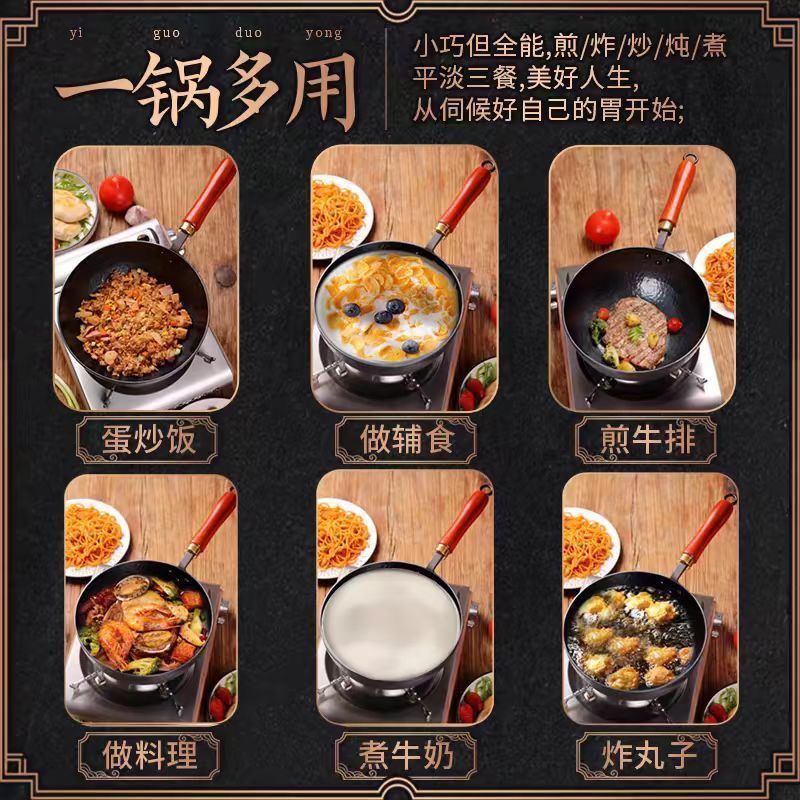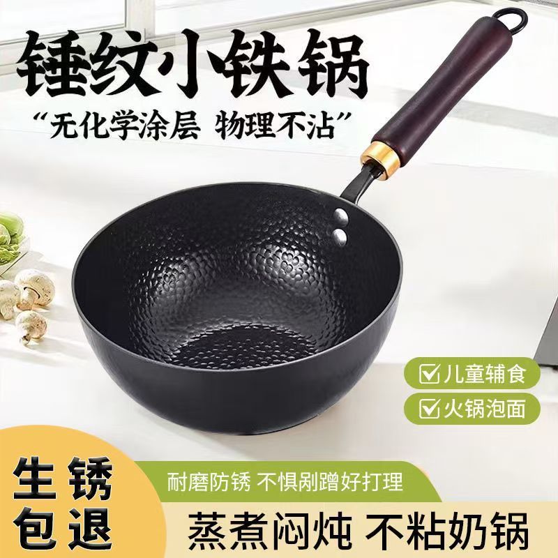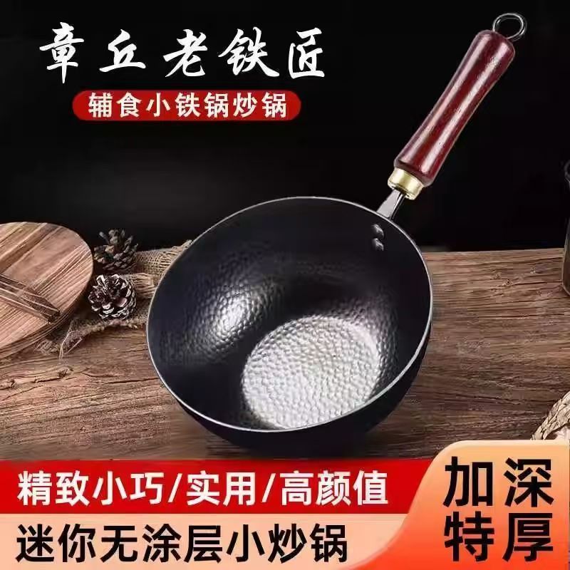 章丘铁锅小奶锅无涂层平底锅不粘锅宝宝专用一人食婴儿辅食炒锅
