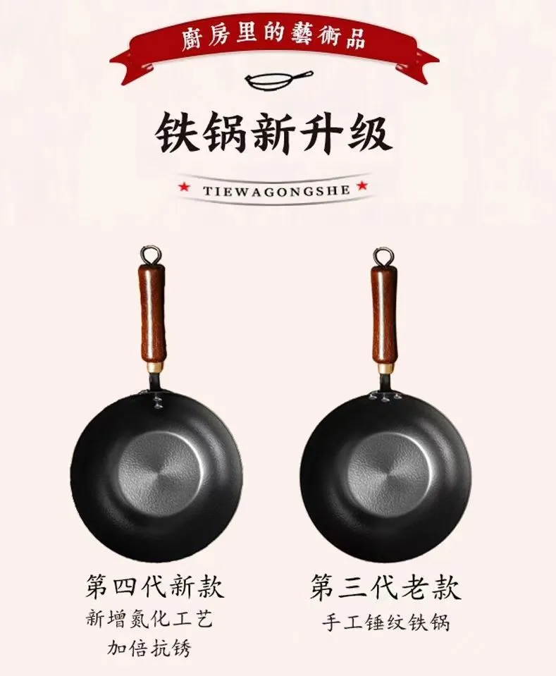 | latest nitrided hammer pattern 20cm iron pot with tempered cover get wooden turner free(最新款氮化锤纹二十厘米铁锅带钢化盖送木铲) | USD $7.83 | 99999 piece available |