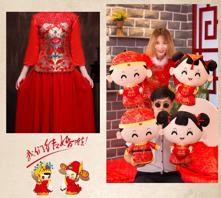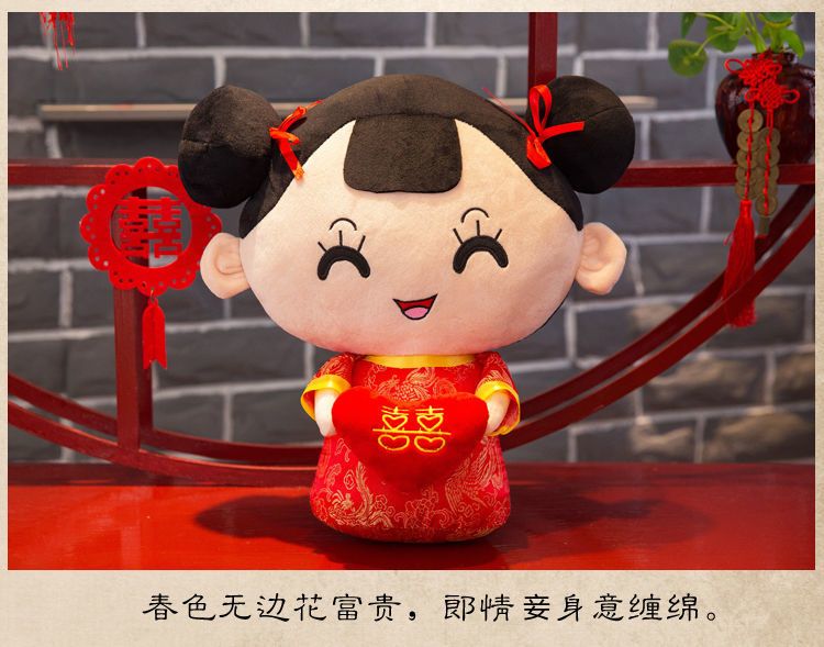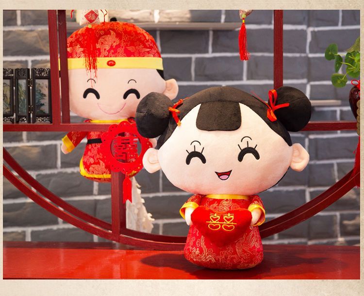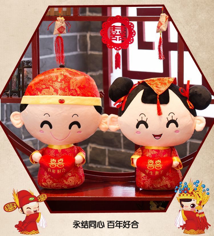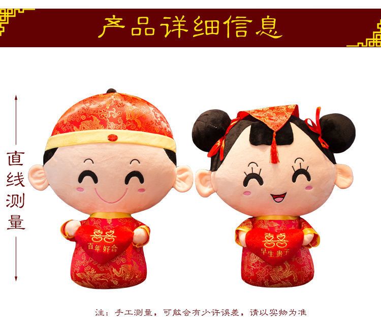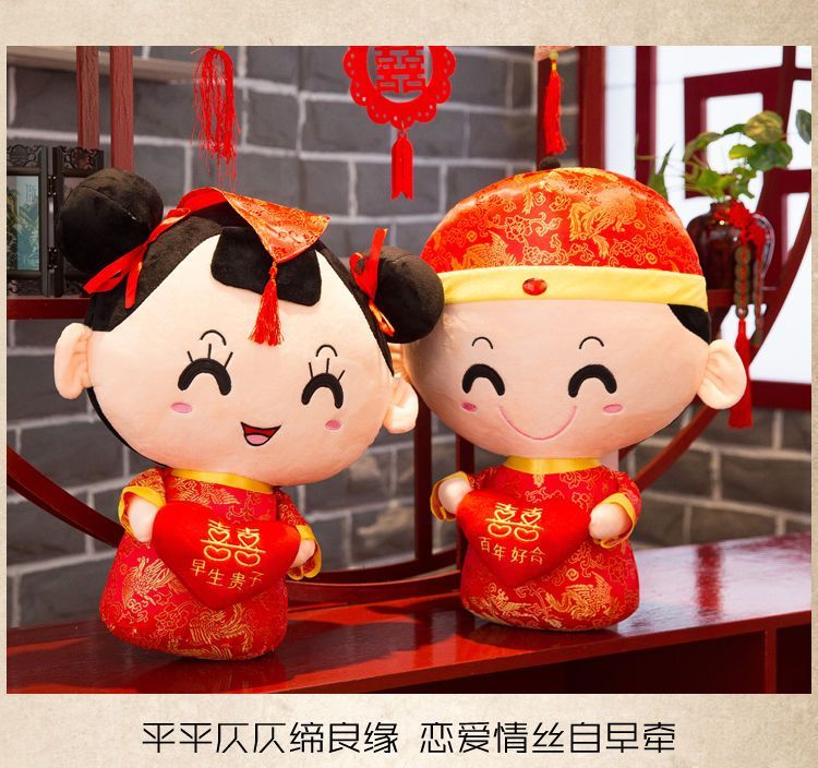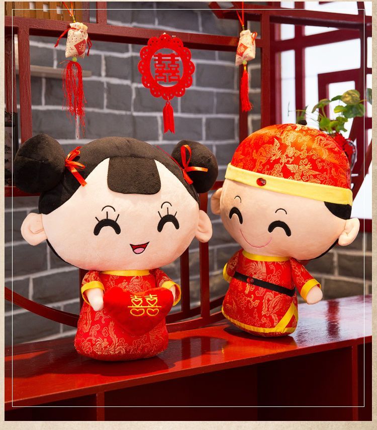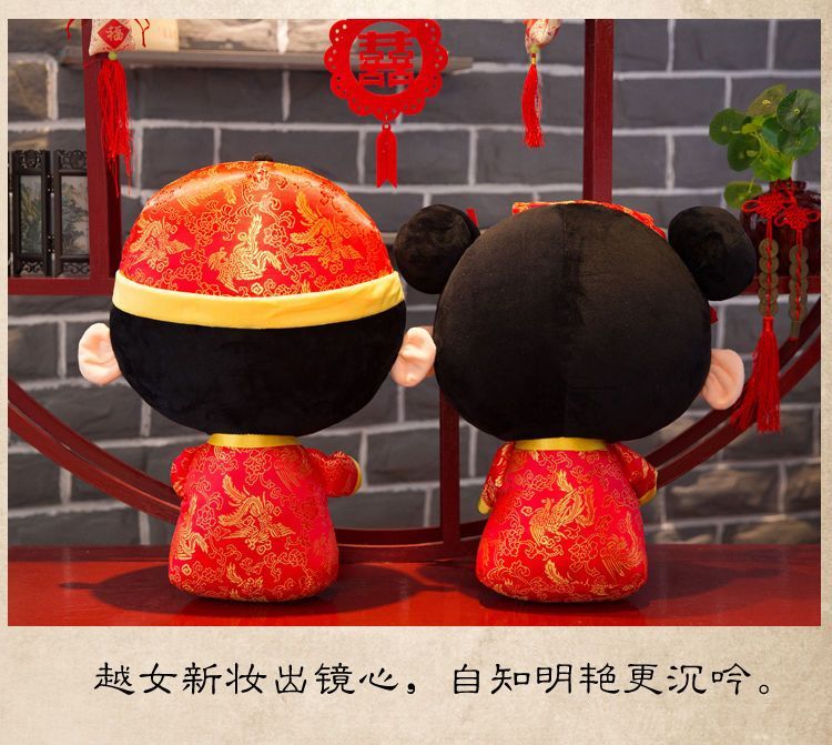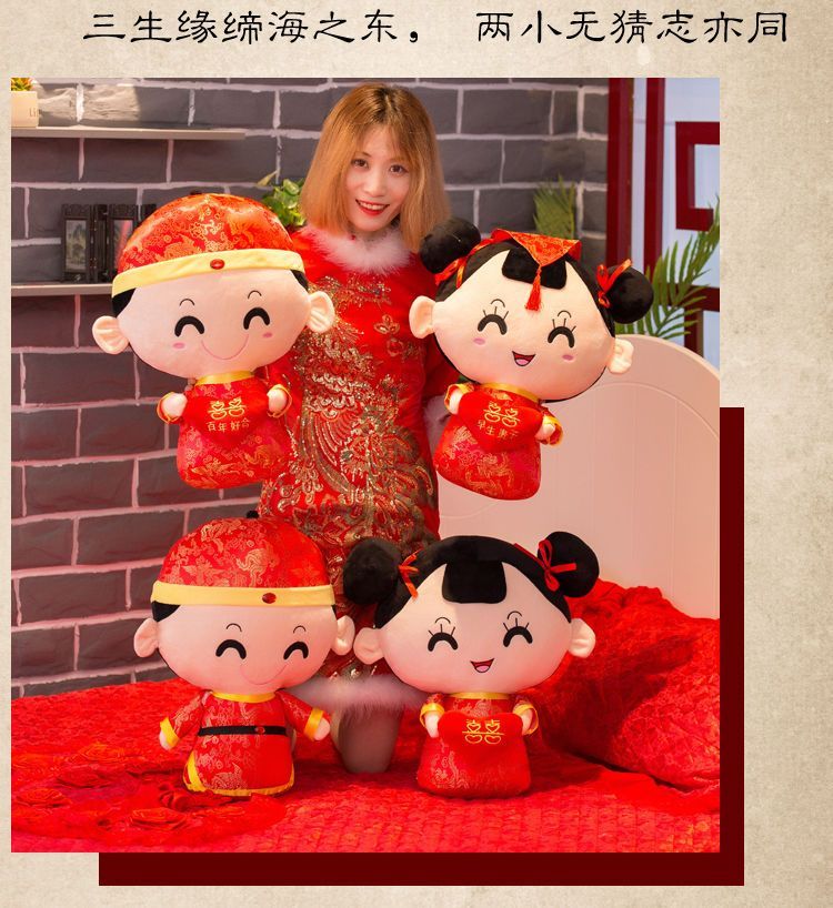 婚庆结婚礼物抱枕新款结婚娃娃一对爆款结婚床上娃娃婚房床头喜娃