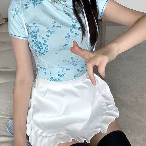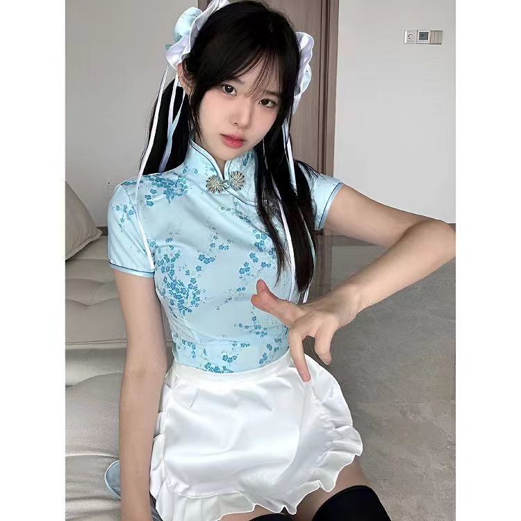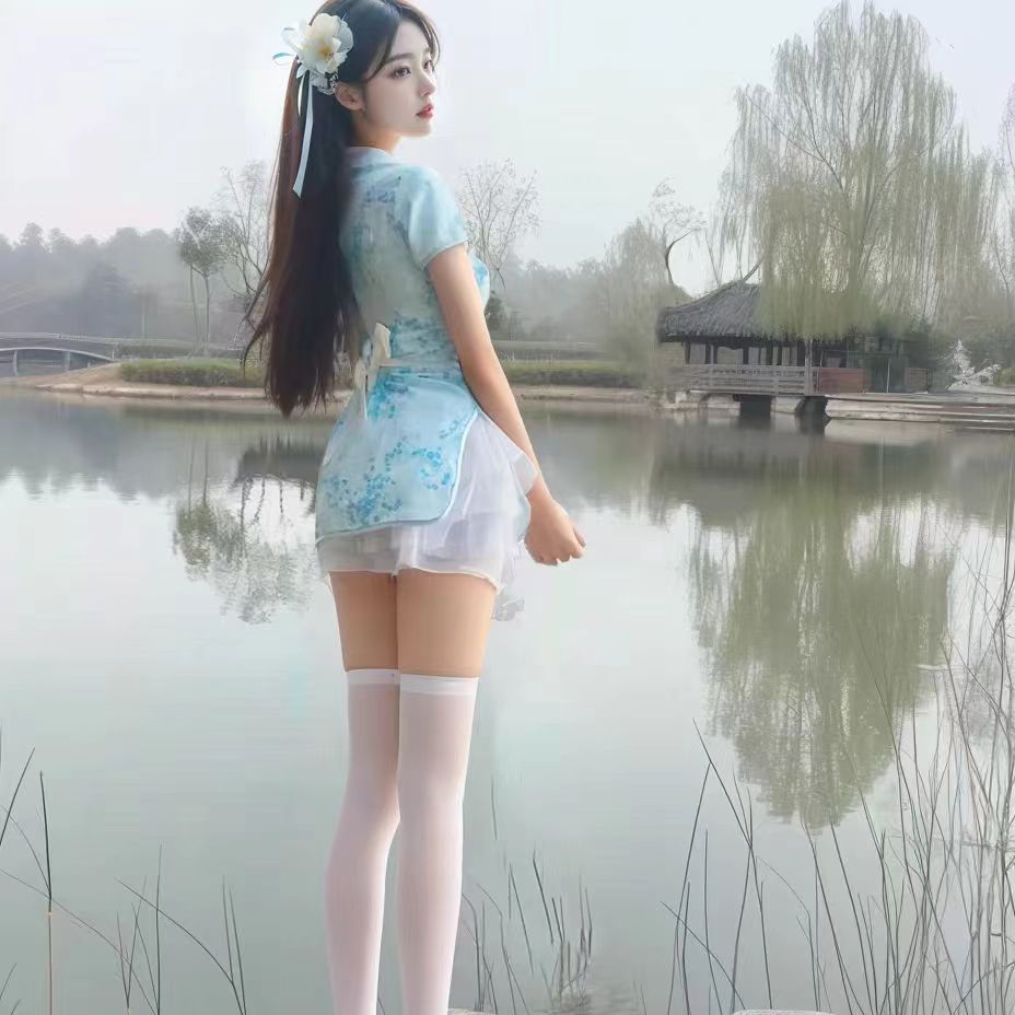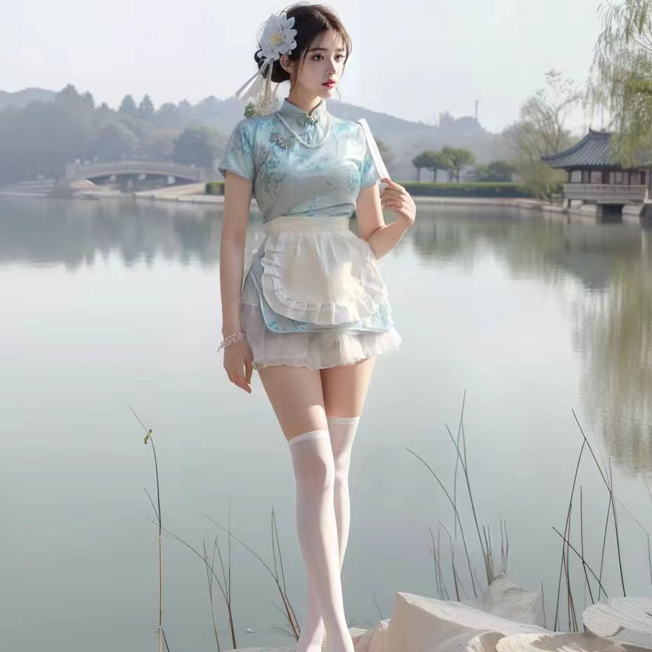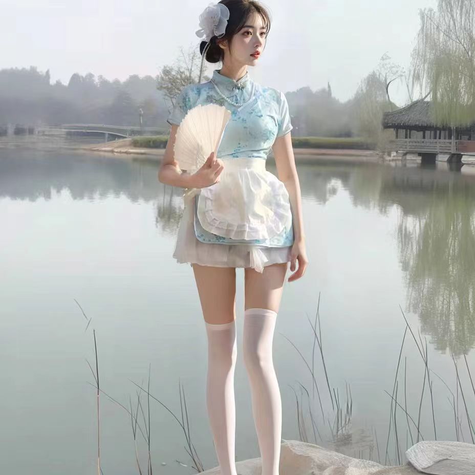 | blue cheongsam + apron + t-shaped panties + white silk stockings [50% off]](蓝旗袍+围裙+T裤+白丝袜【5折】) | USD $14.99 | 99999 piece available |