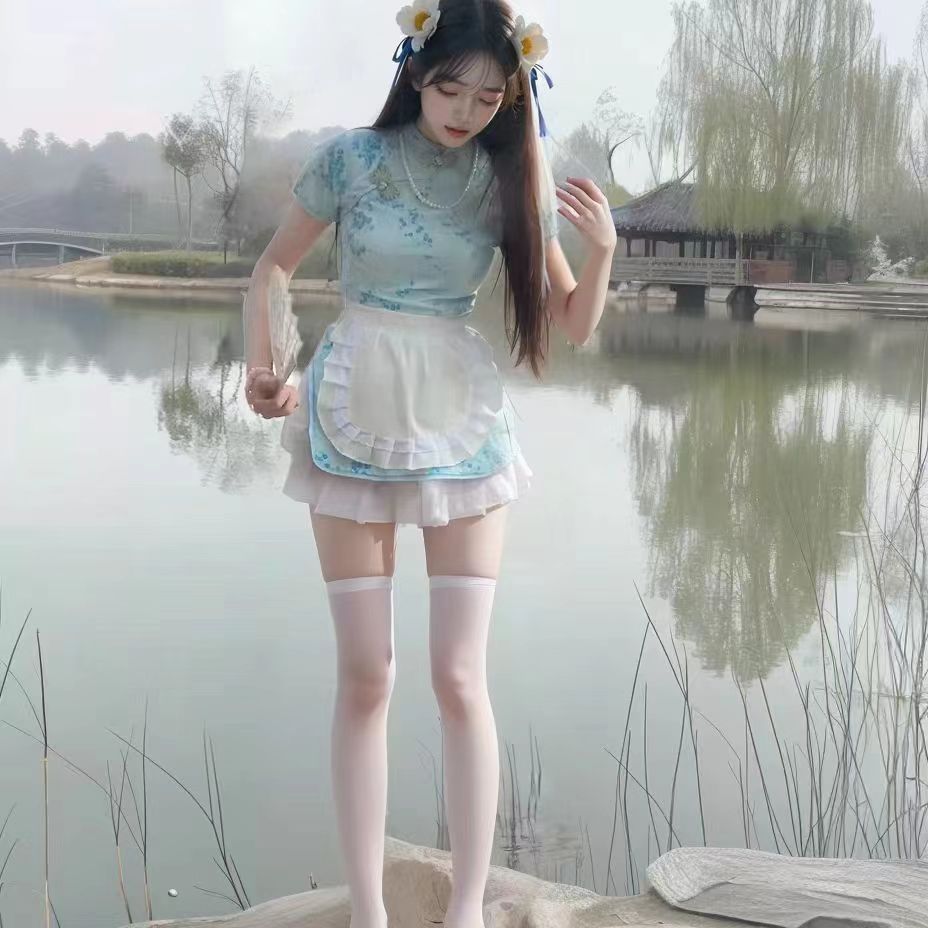 | blue cheongsam + apron + t-shaped panties + white silk stockings [welfare price]](蓝旗袍+围裙+T裤+白丝袜【福利价】) | USD $14.99 | 99999 piece available |