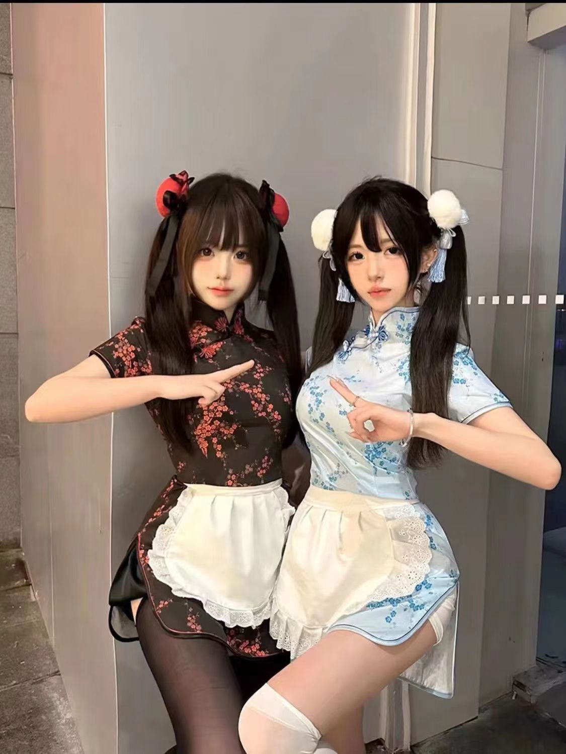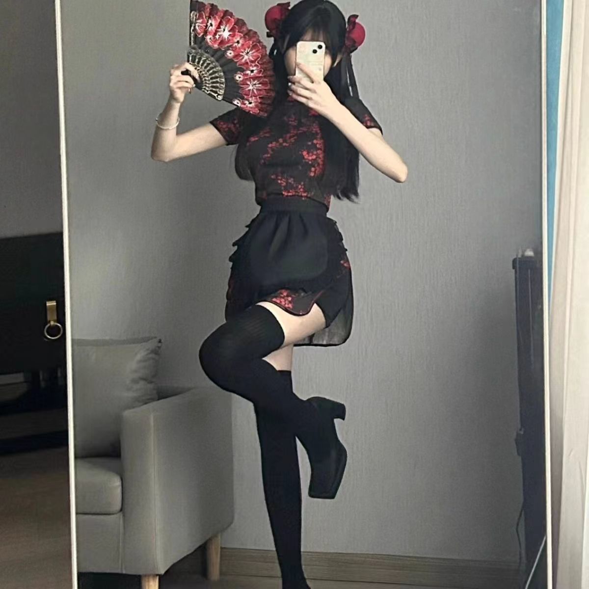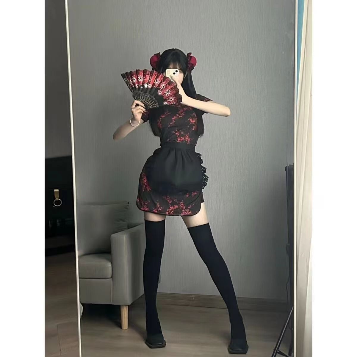【大码】中华小厨娘洛丽塔日系女仆围裙COS新中式旗袍连衣裙套装